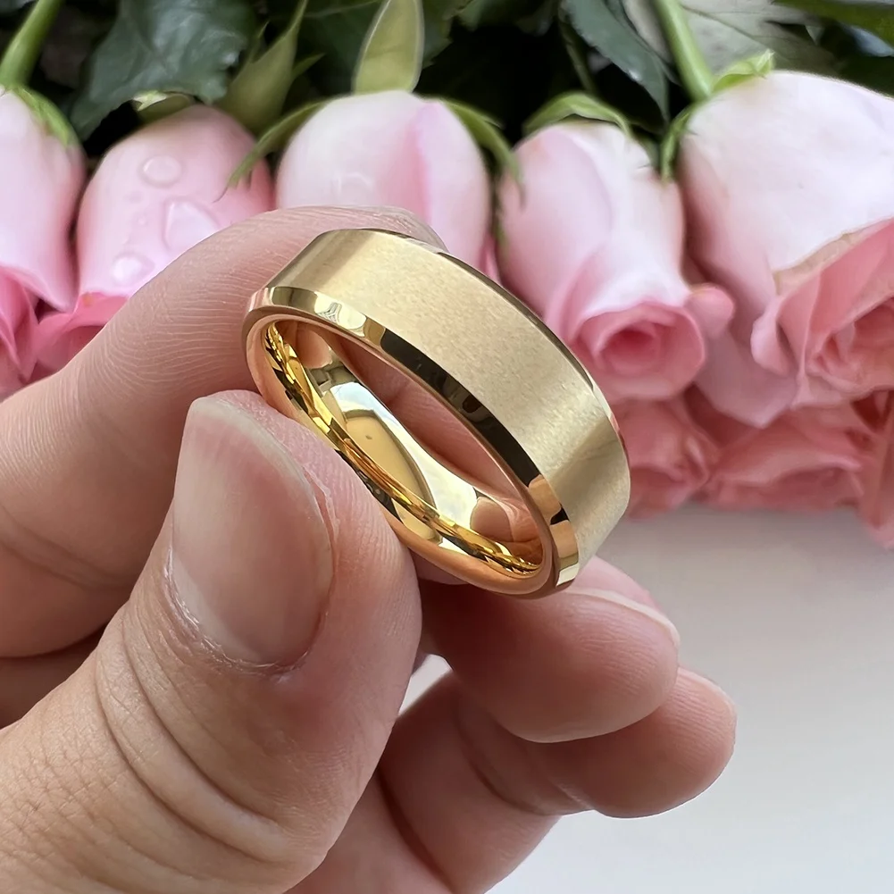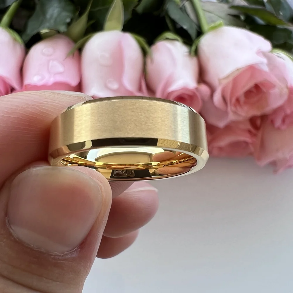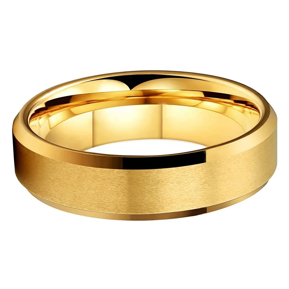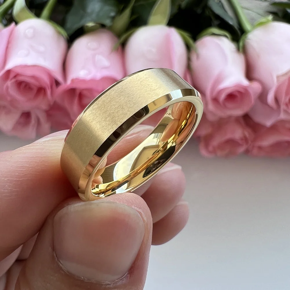 Coolstyle Jewelry 6mm Wholesale Beveled Matte Finish Fashion Engagement Wedding Band Gold Tungsten Carbide Ring for Men Women