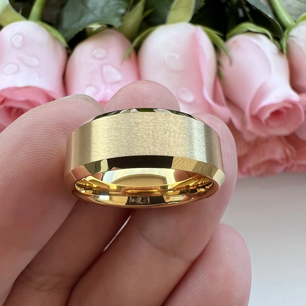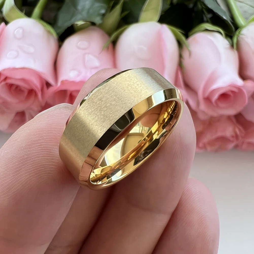 Coolstyle Jewelry 8mm Wholesale Beveled Matte Finish Fashion Engagement Wedding Band Gold Tungsten Carbide Ring for Men Women
