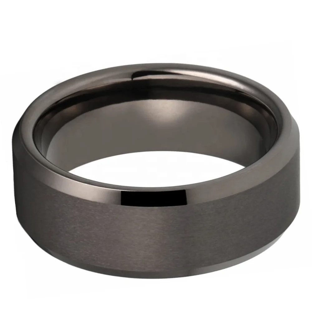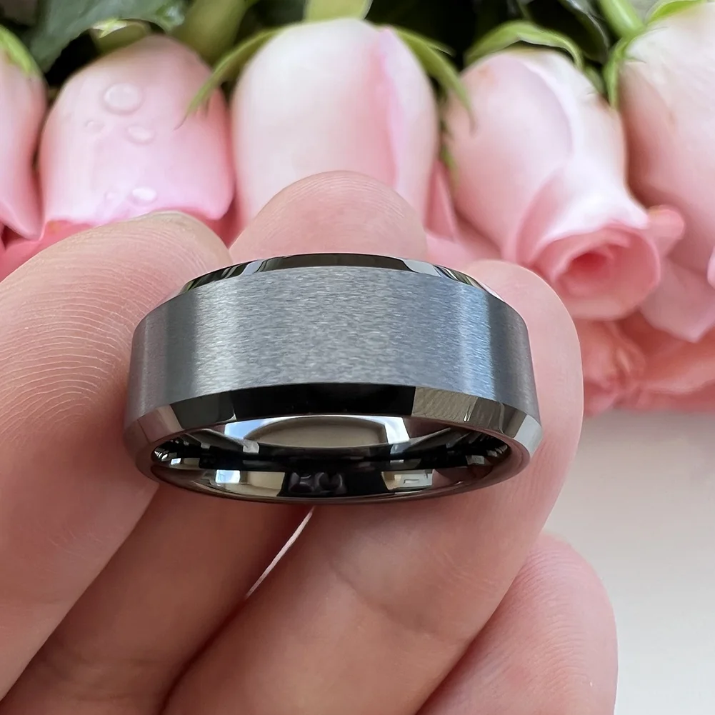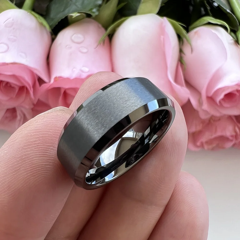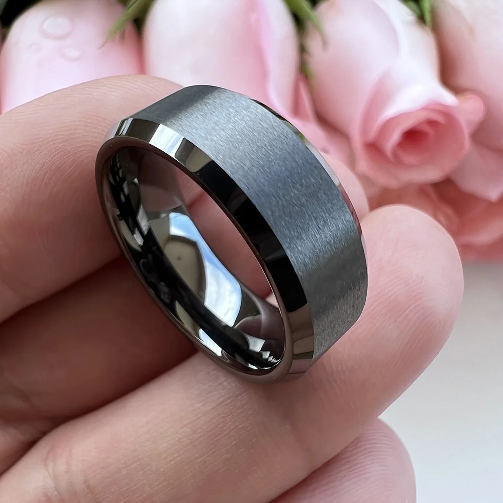 Coolstyle Jewelry 8mm Wholesale Beveled Matte Finish Fashion Engagement Wedding Band Gunmetal Tungsten Ring for Men Women
