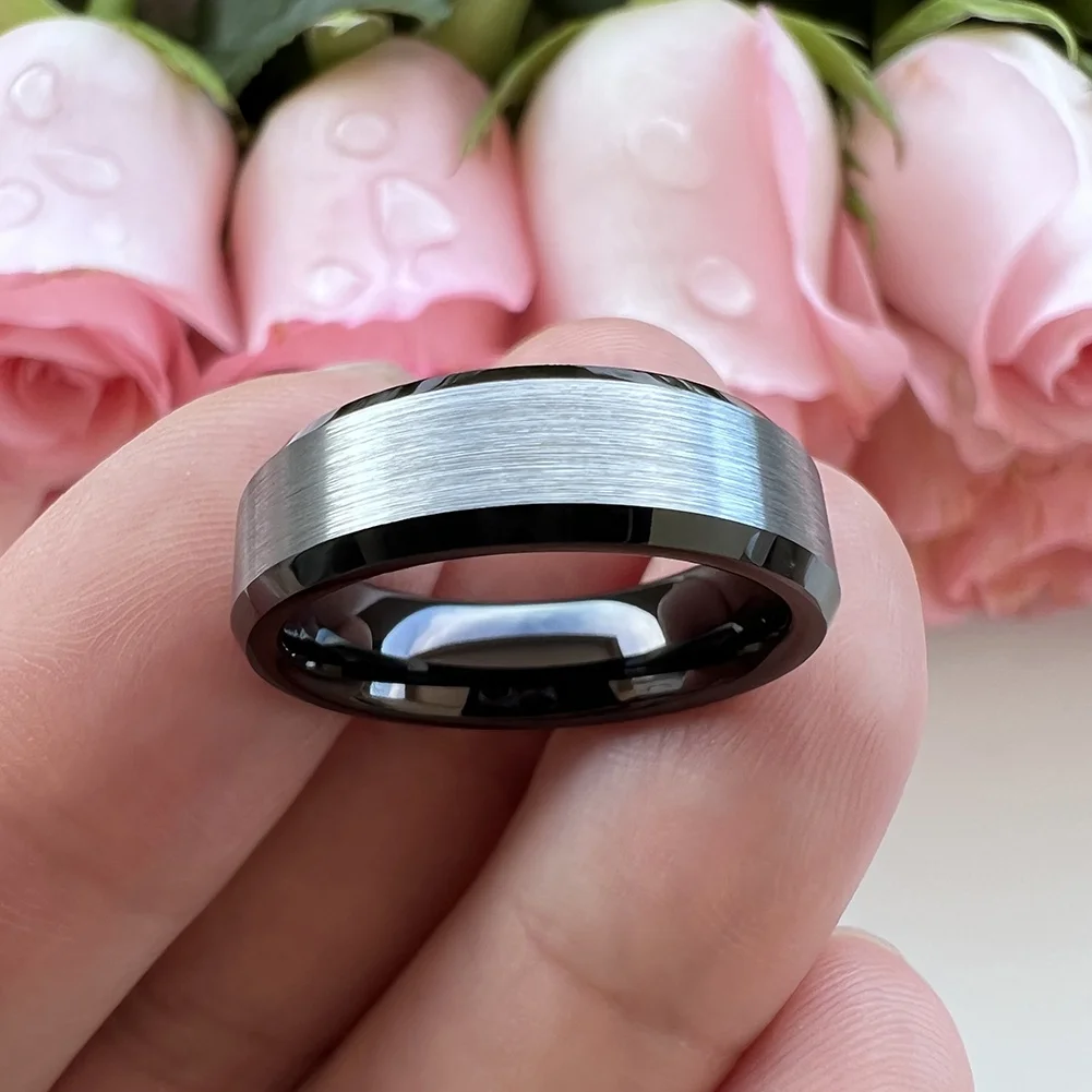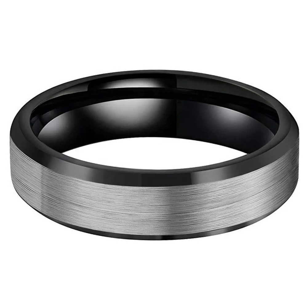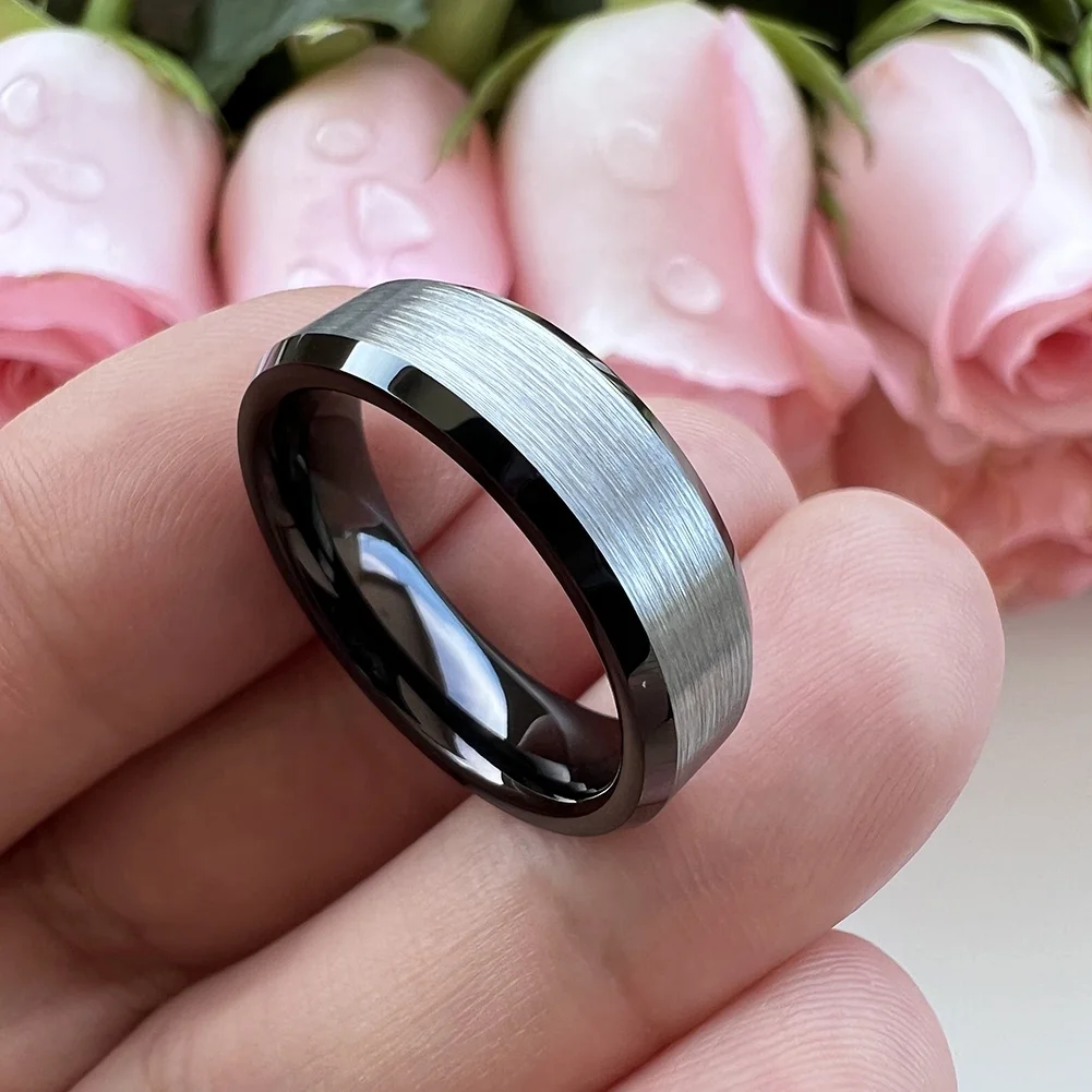 Coolstyle Jewelry Dropshipping 6mm Beveled Matte Finish Black Tungsten Carbide Ring for Women Men Trendy Engagement Wedding Band