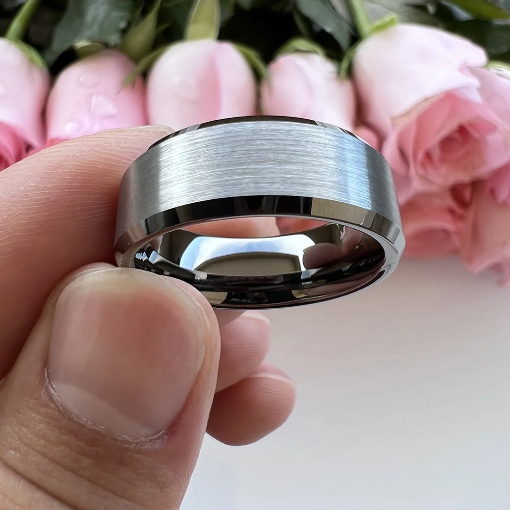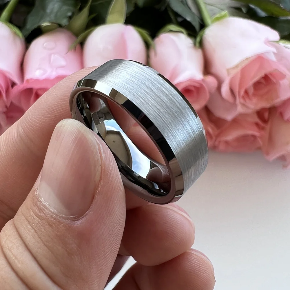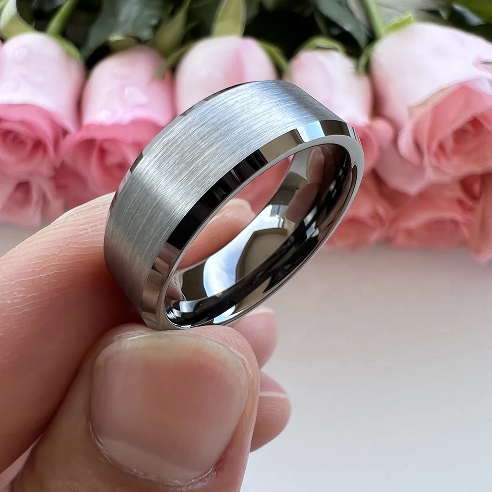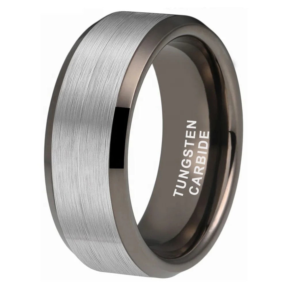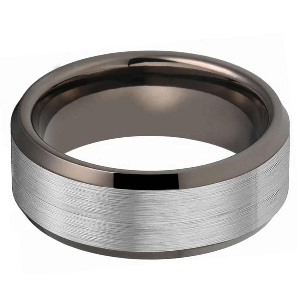 Coolstyle Jewelry Dropshipping 8mm Beveled Matte Finish Gunmetal Tungsten Ring for Women Men Fashion Engagement Wedding Band