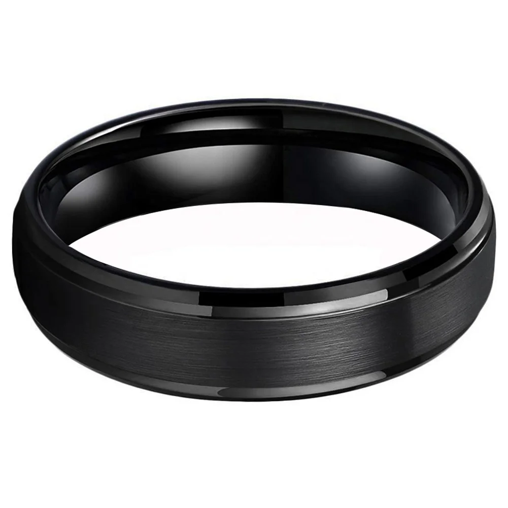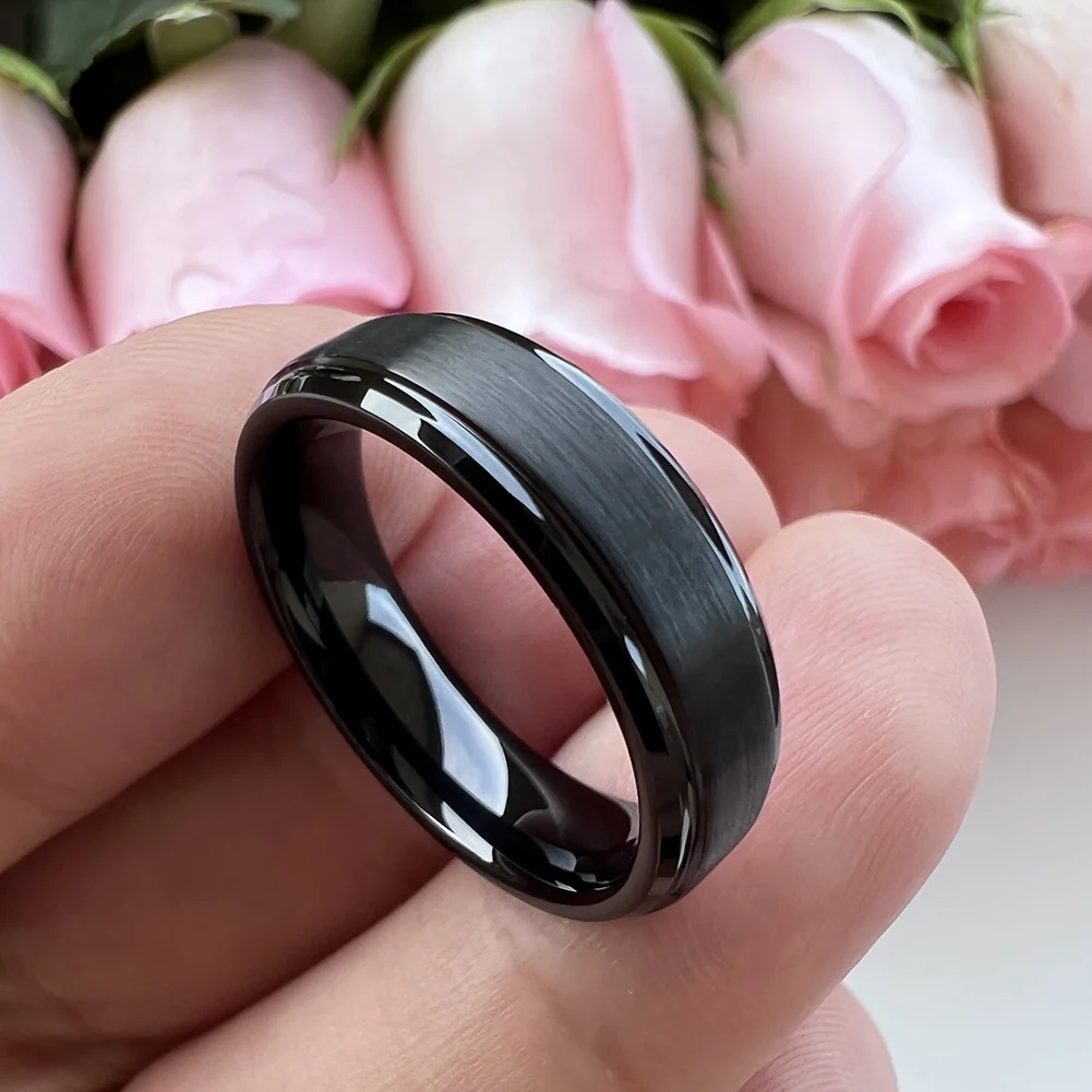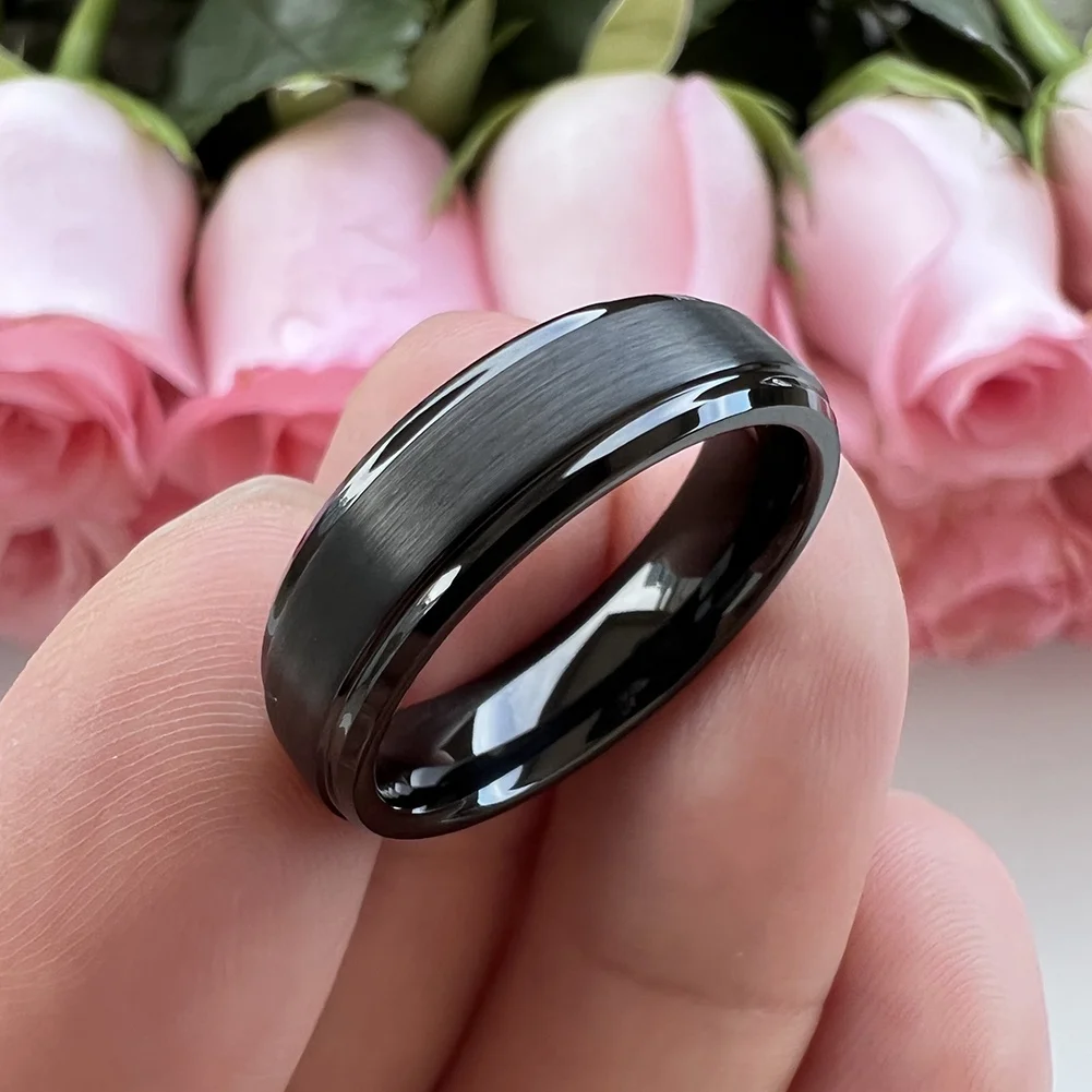 Coolstyle Jewelry Dropshipping Wholesale 6mm Stepped Beveled Fashion Engagement Wedding Band Black Tungsten Ring for Men Women