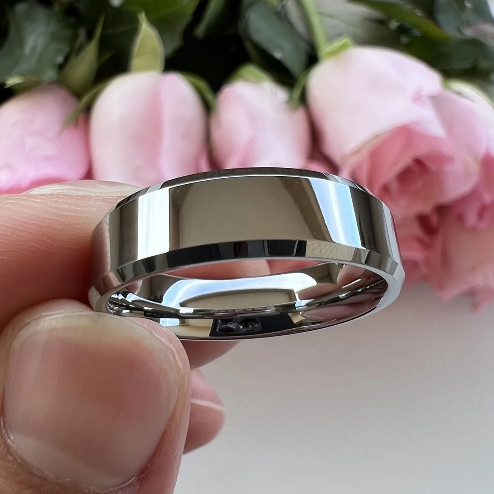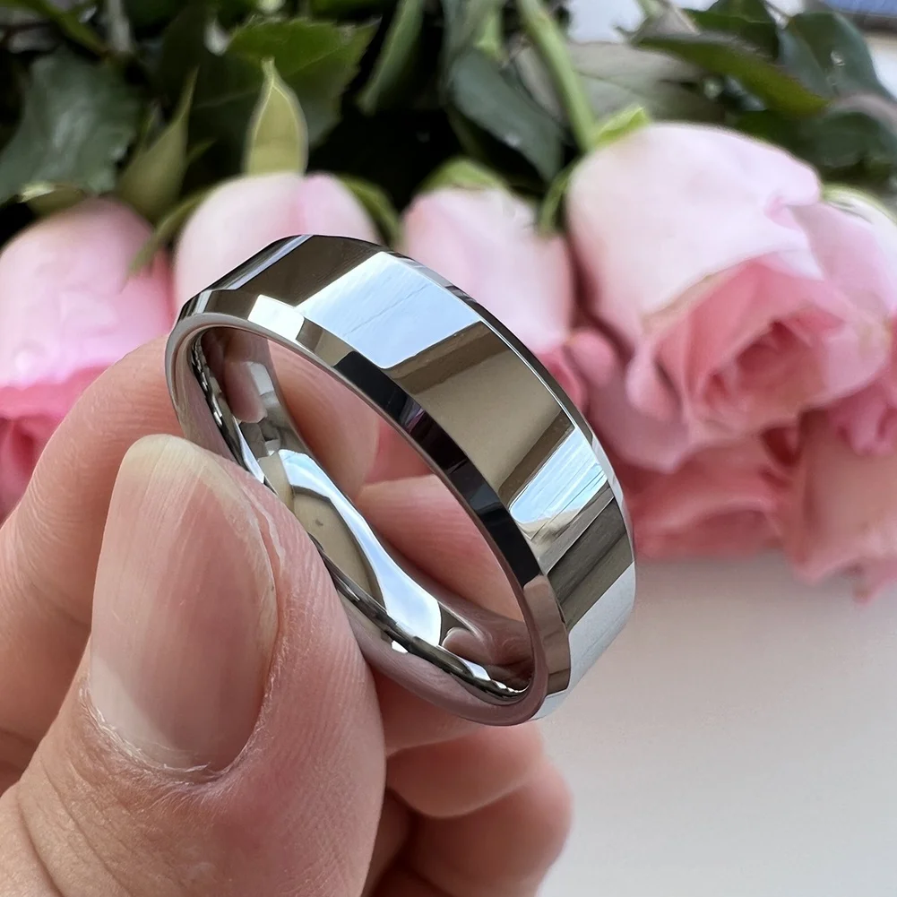 Coolstyle Jewelry Wholesale 6mm Beveled Polished Tungsten Carbide Finger Ring for Men Women Fashion Engagement Wedding Band