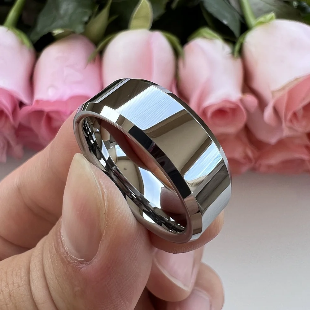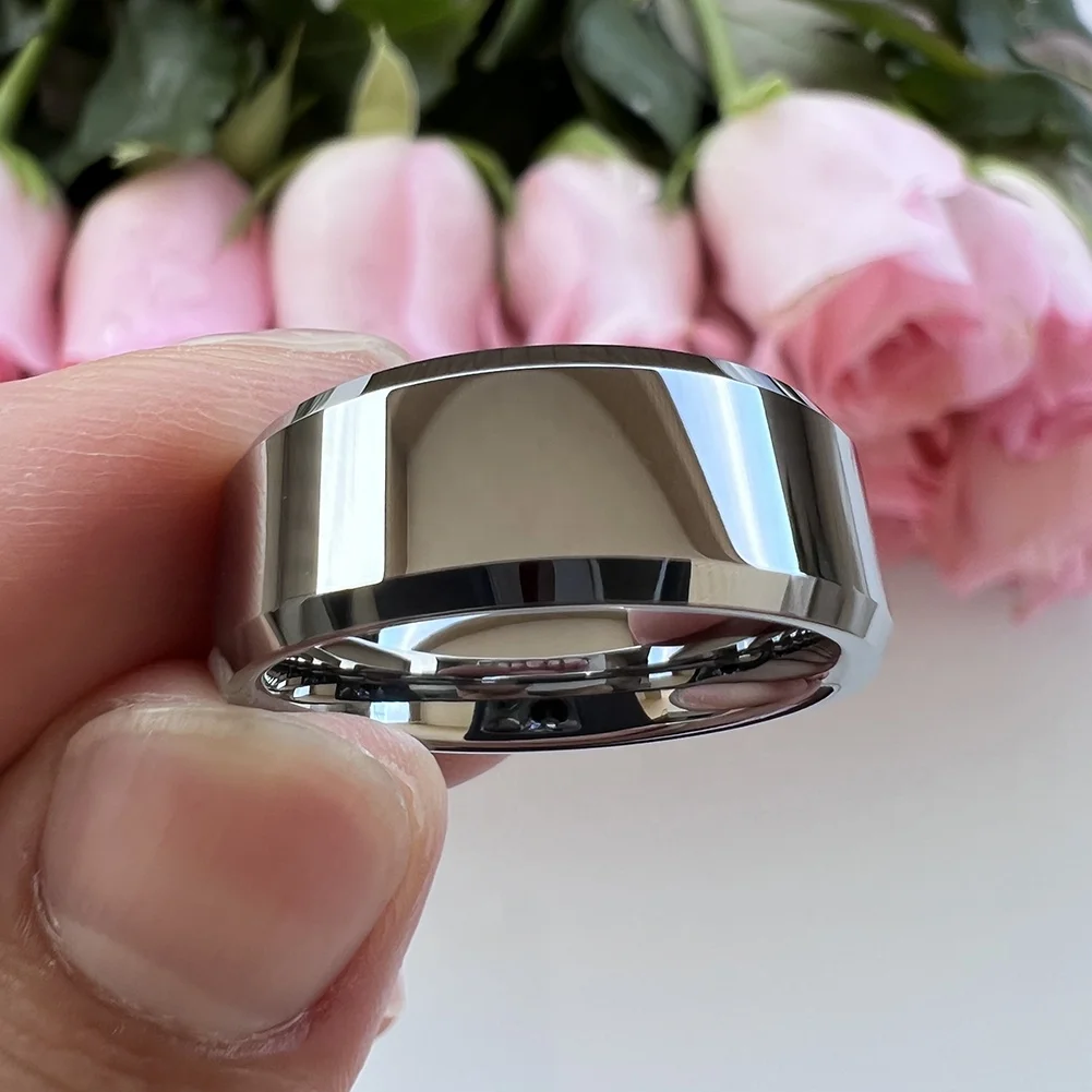 Coolstyle Jewelry Wholesale 8mm Beveled Polished Tungsten Carbide Finger Ring for Men Women Fashion Engagement Wedding Band