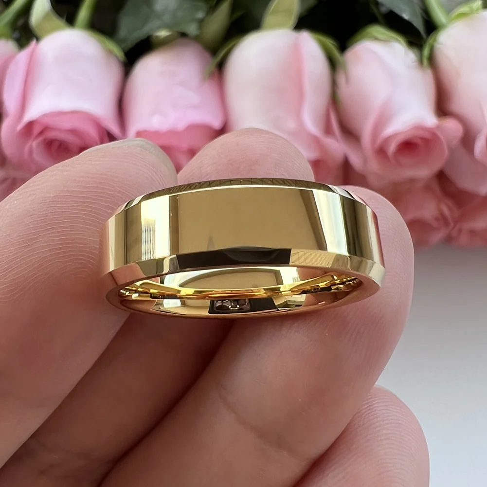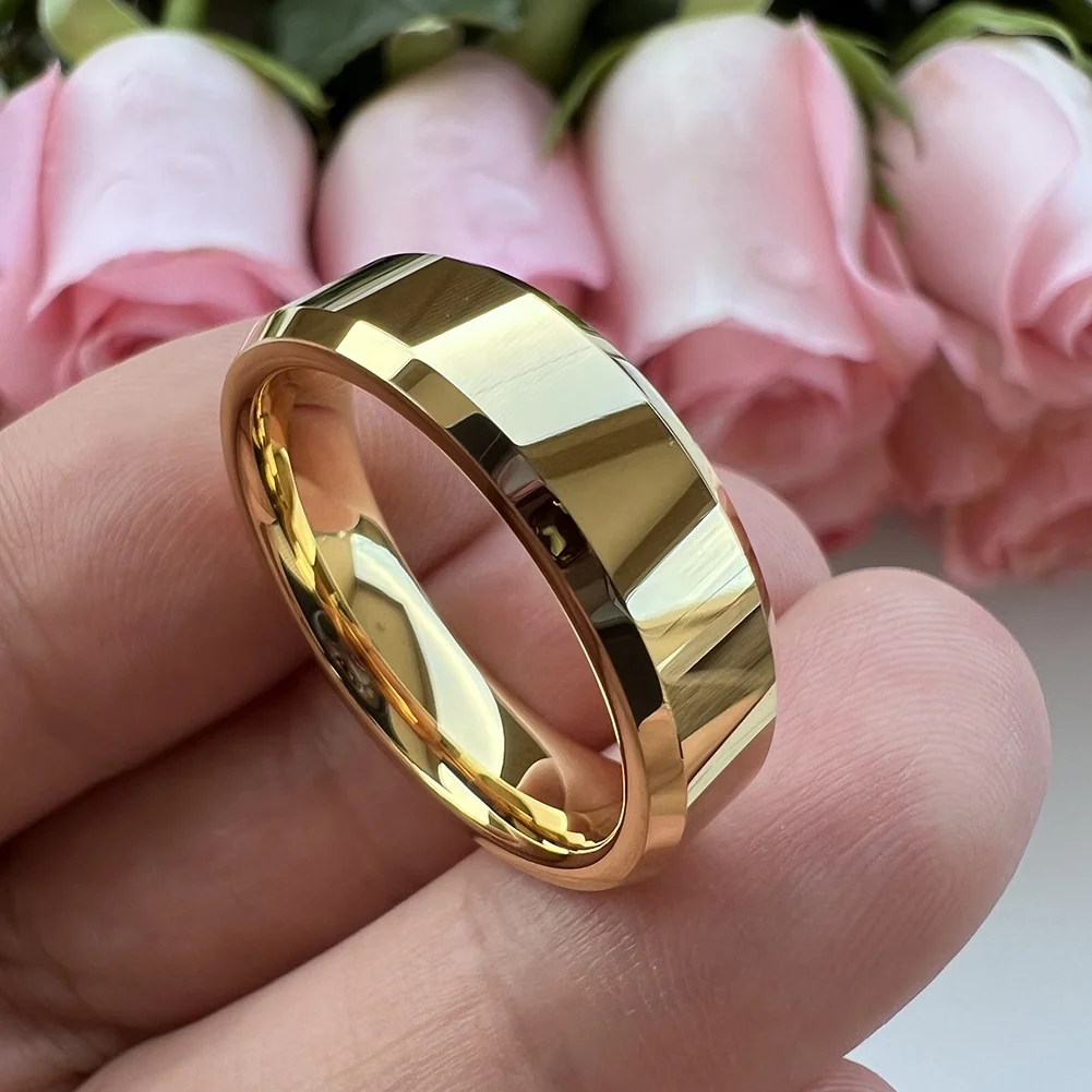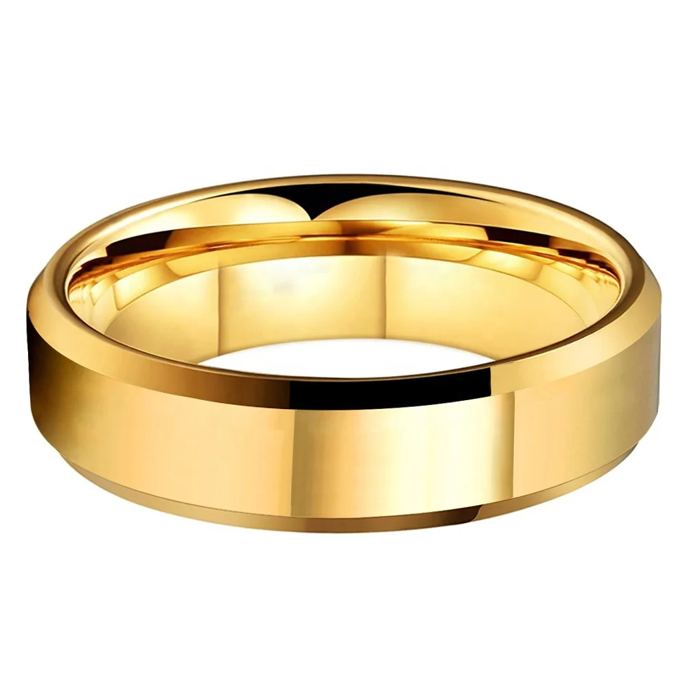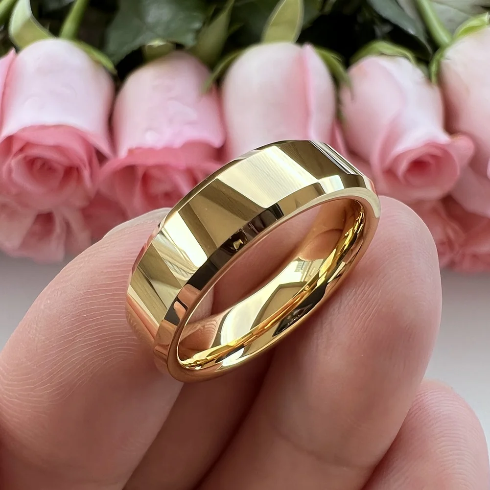 Coolstyle Jewelry Wholesale 6mm Beveled Polished Gold Plated Tungsten Finger Ring for Men Women Fashion Engagement Wedding Band