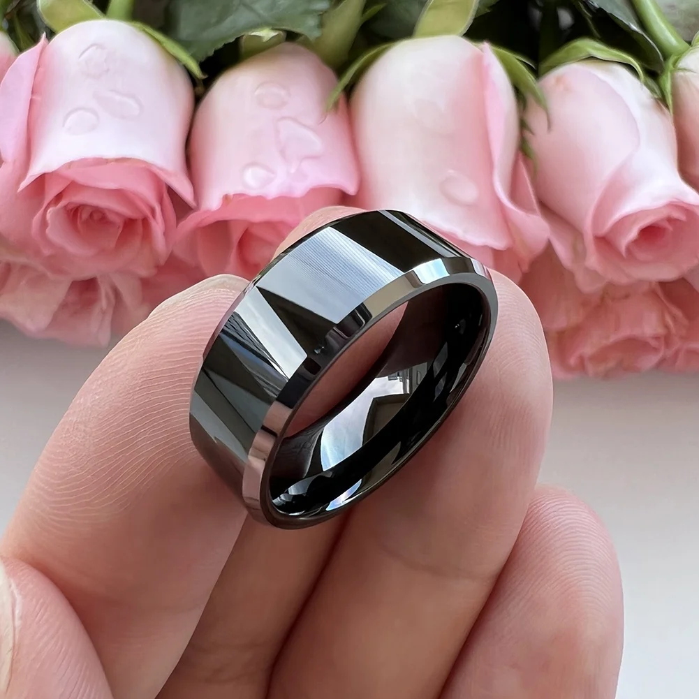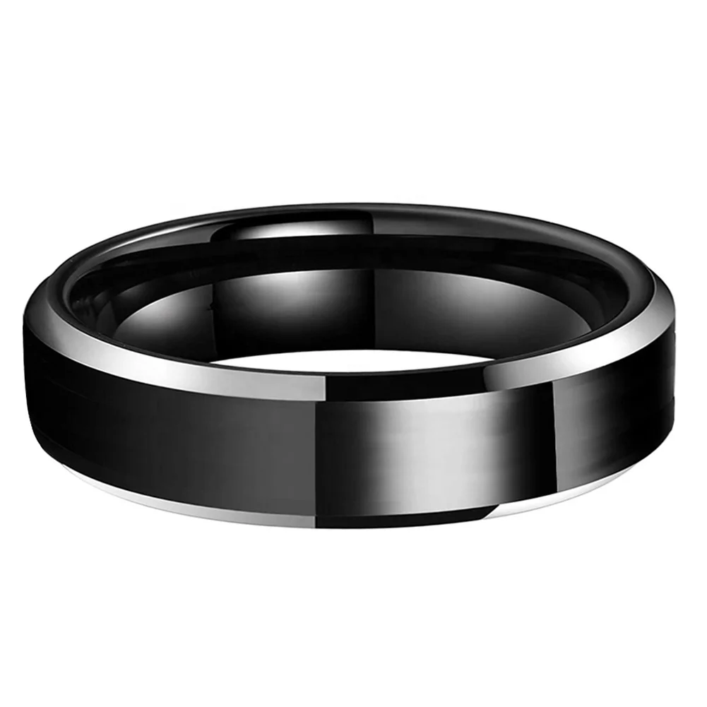 Coolstyle Jewelry Dropshipping 6mm Beveled Polished Black Tungsten Finger Ring for Men Women Fashion Engagement Wedding Band