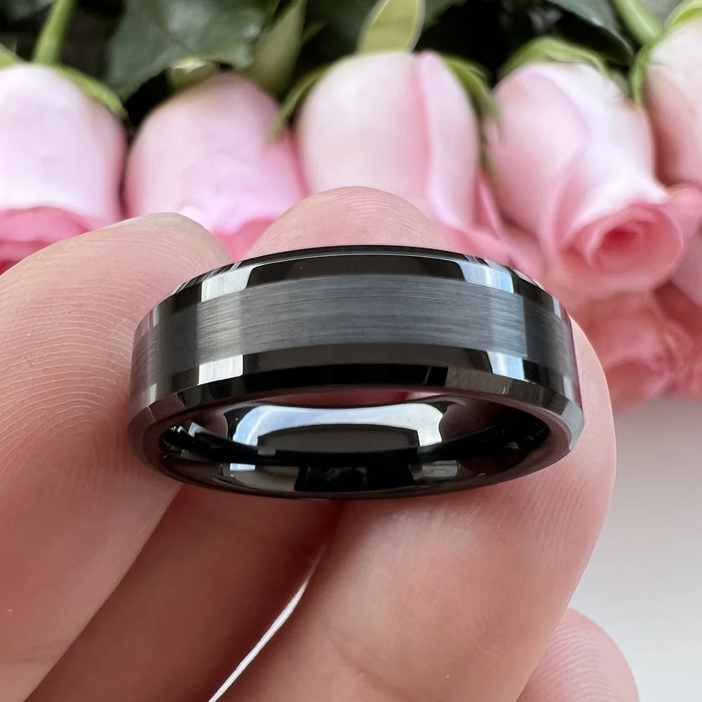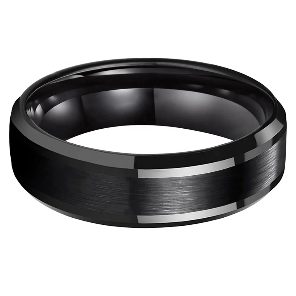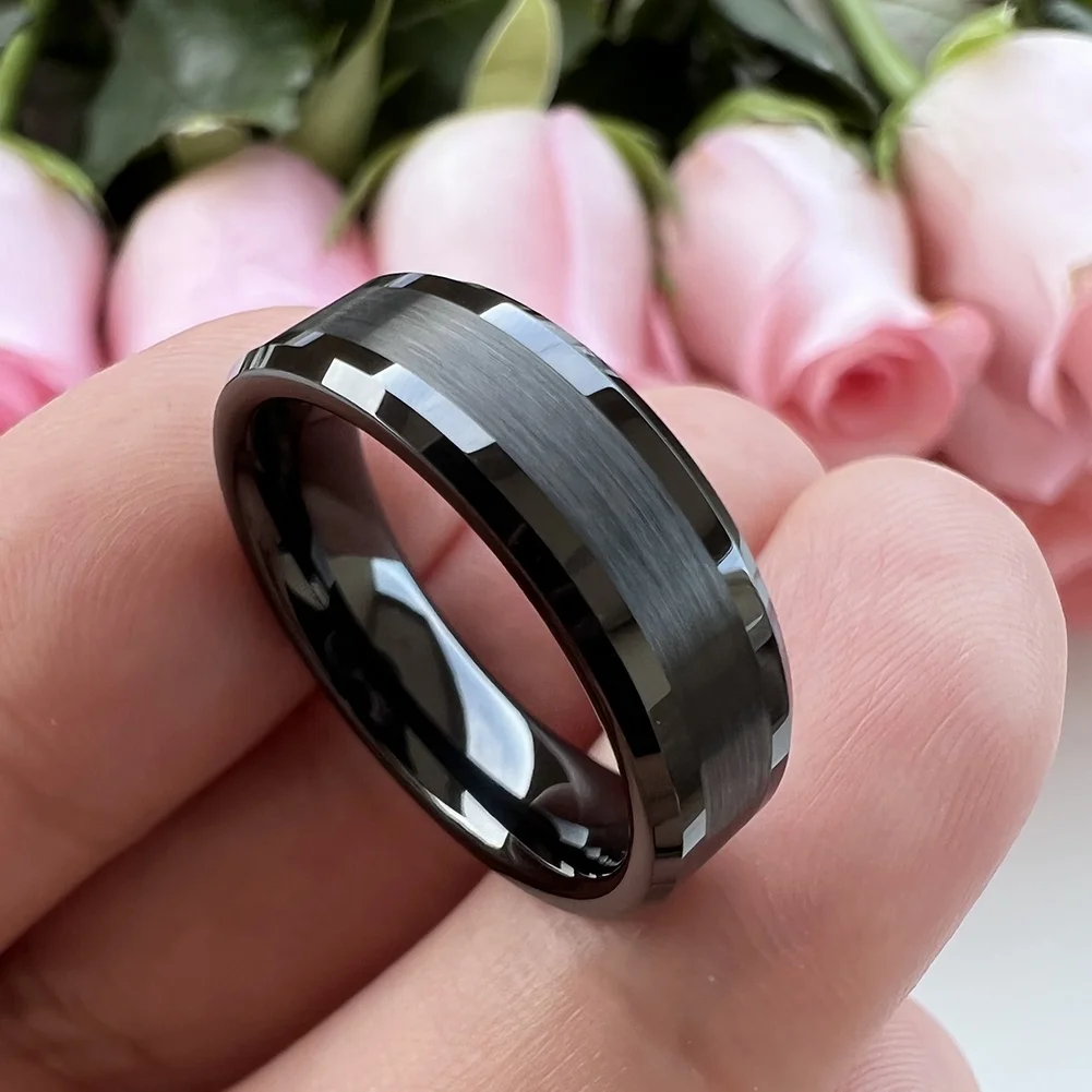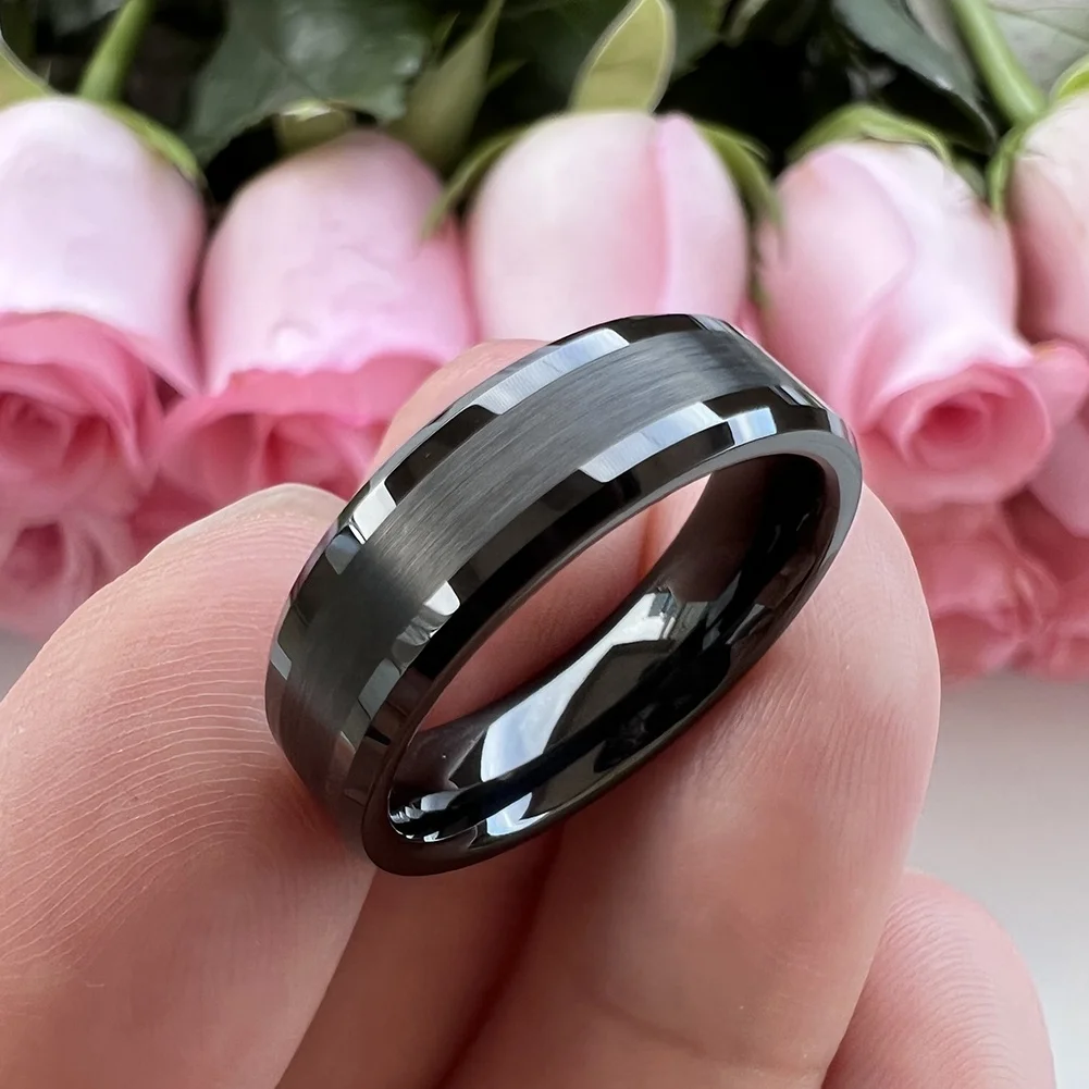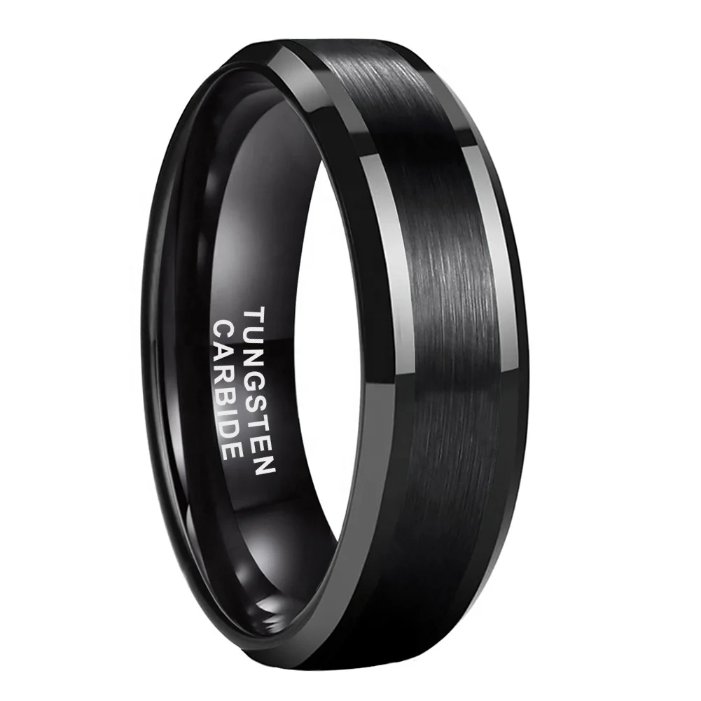 Coolstyle Jewelry 6mm Wholesale Fashion Engagement Wedding Band Beveled Edges Black Tungsten Carbide Ring for Men Women