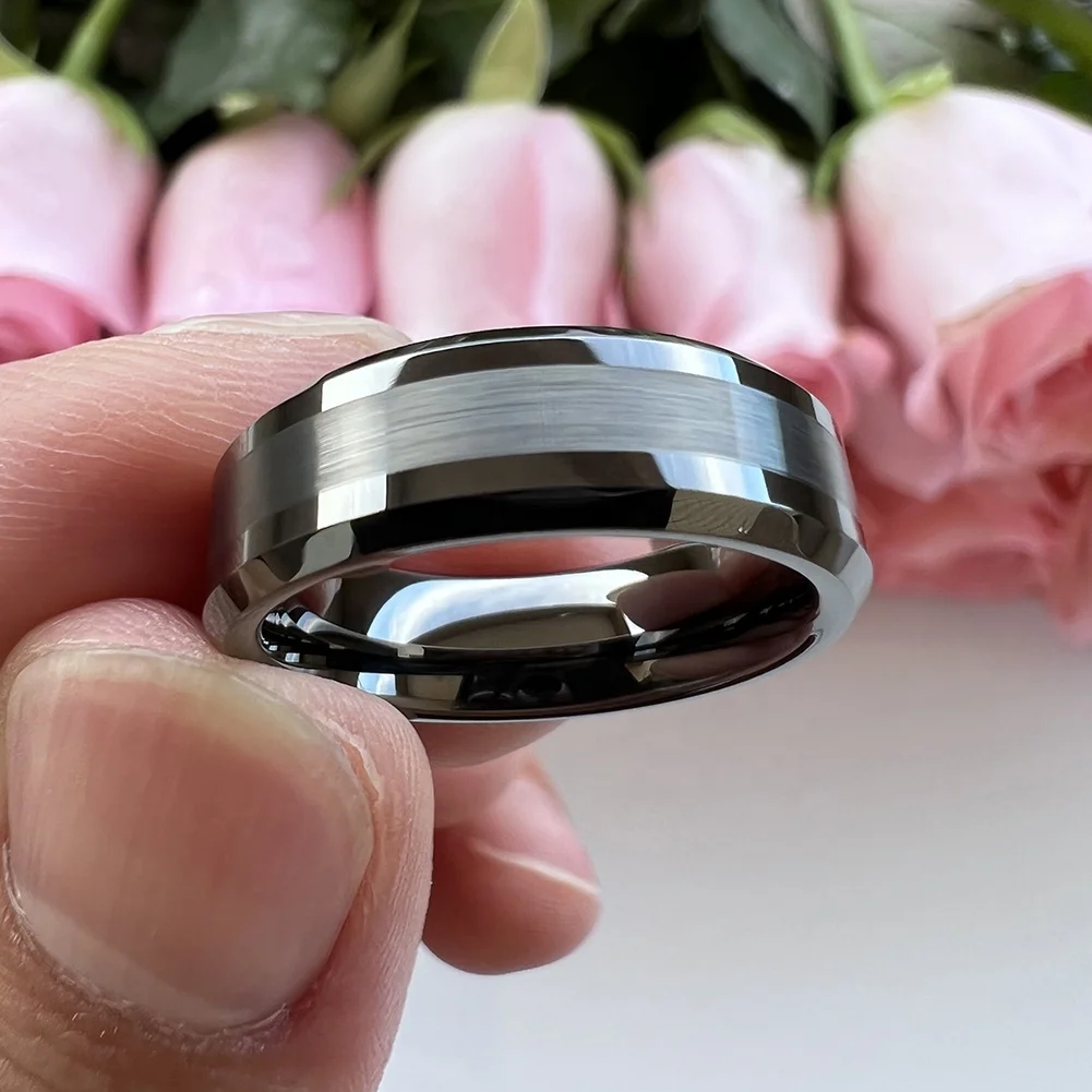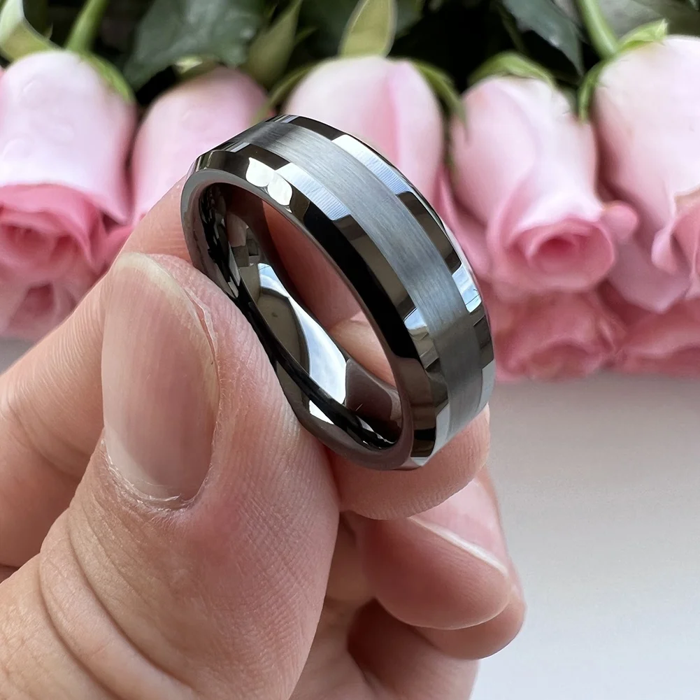 Coolstyle Jewelry 6mm Wholesale Fashion Engagement Wedding Band Beveled Edges Gunmetal Tungsten Carbide Ring for Men Women