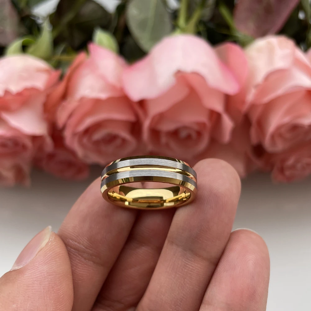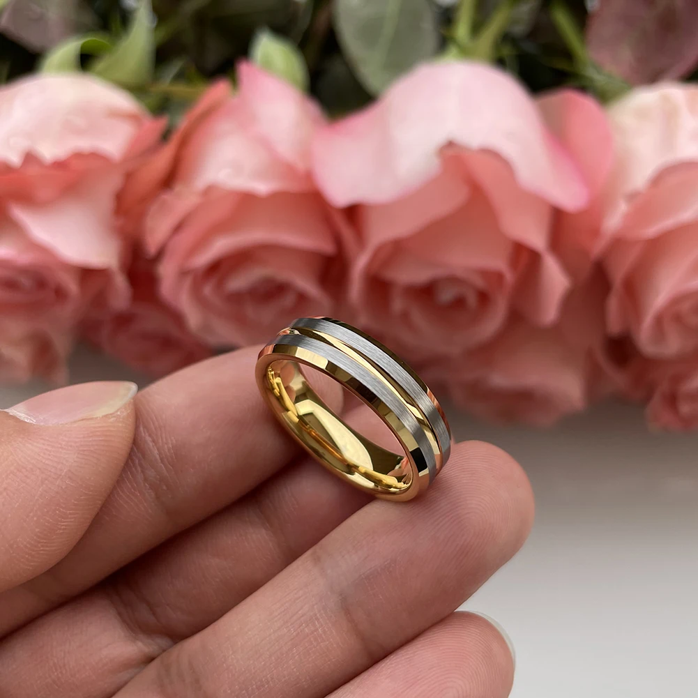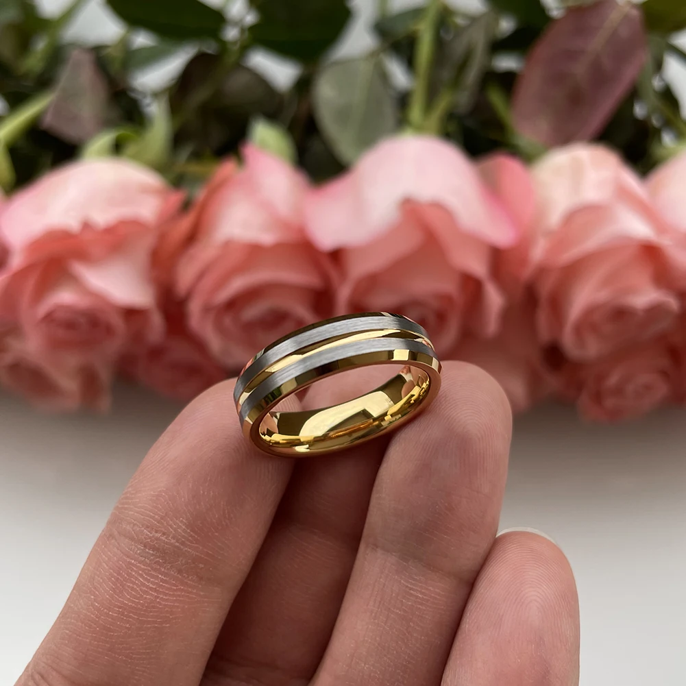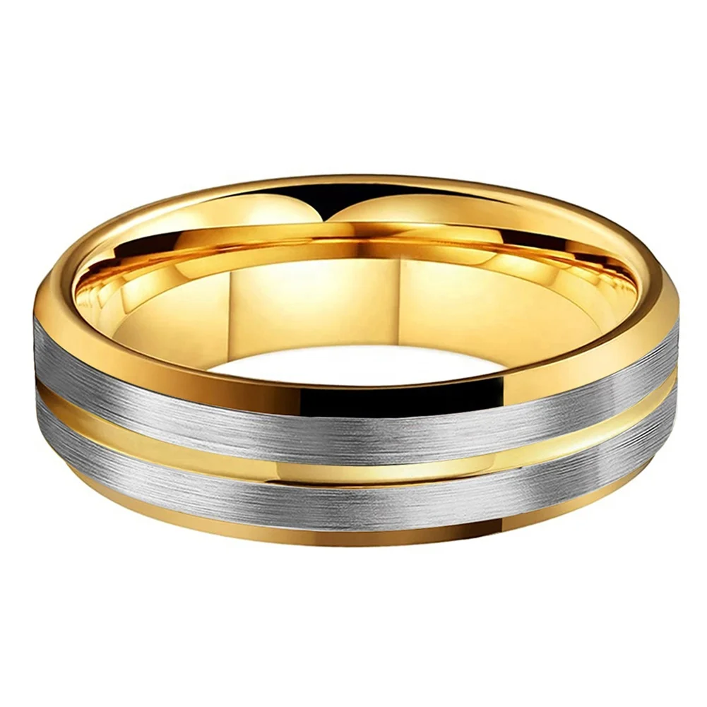 Coolstyle Jewelry 6mm Two Tone Gold Plated Tungsten Carbide Ring for Men Women Wholesale Fashion Engagement Wedding Band