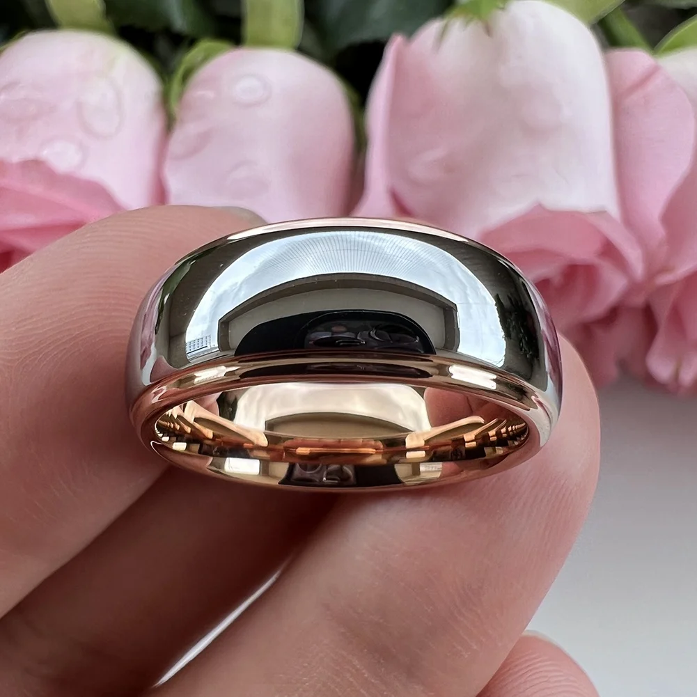 Coolstyle Jewelry Wholesale 8mm Two Tone Rose Gold Tungsten Ring for Men Women Dropshipping Fashion Engagement Wedding Band