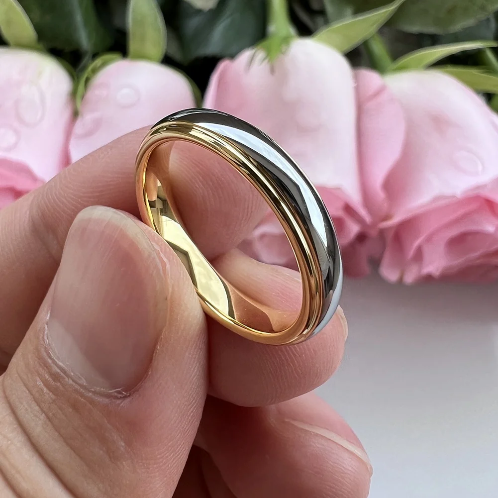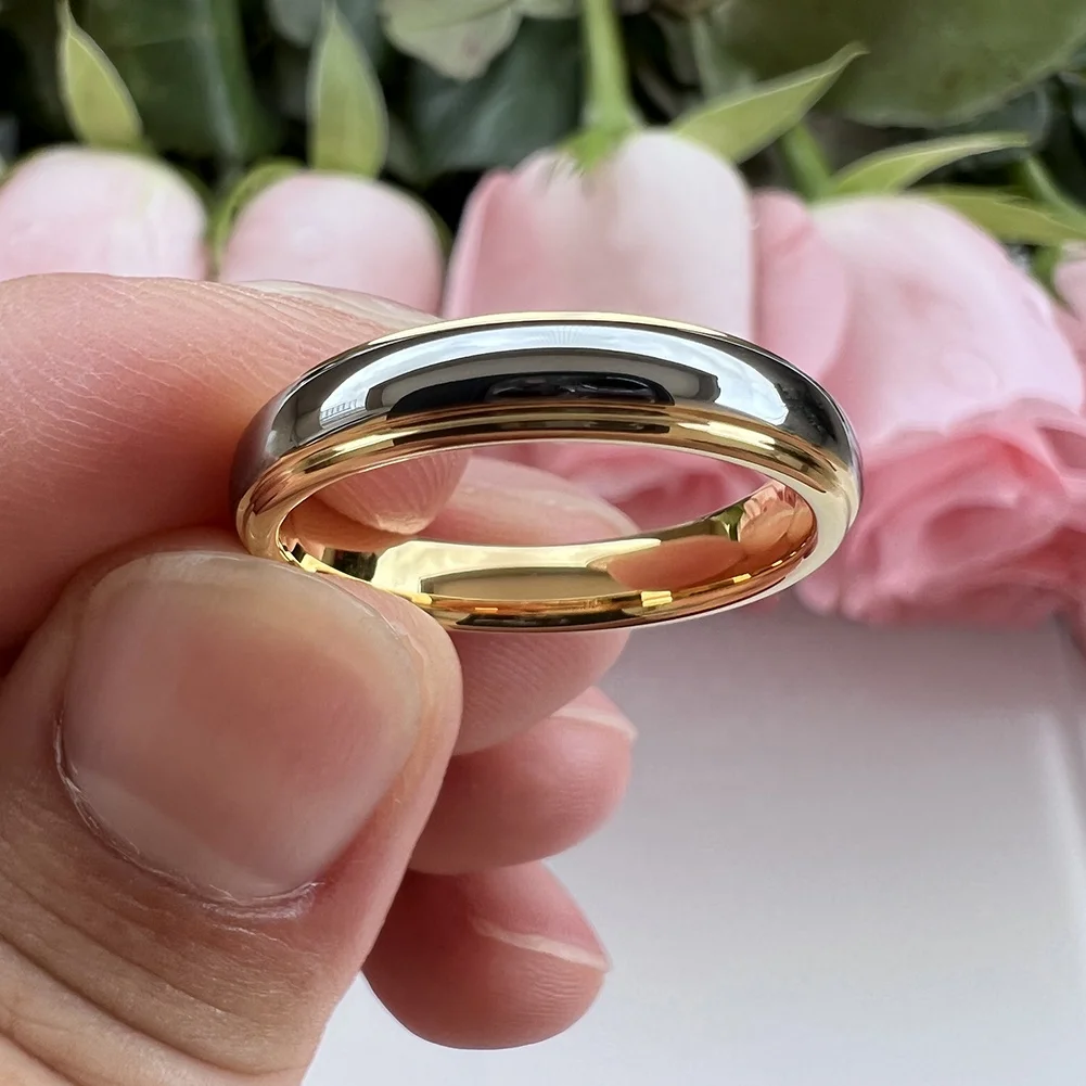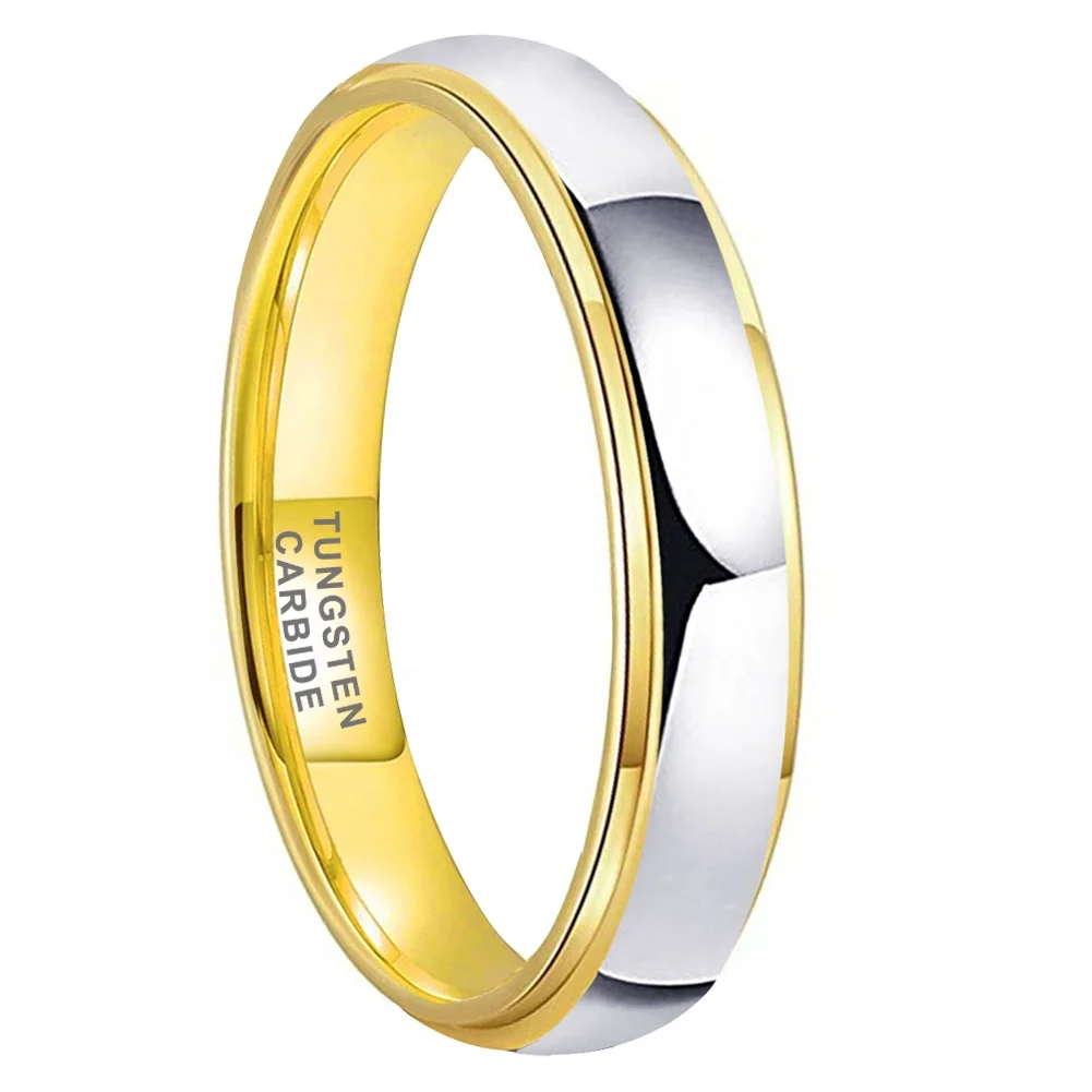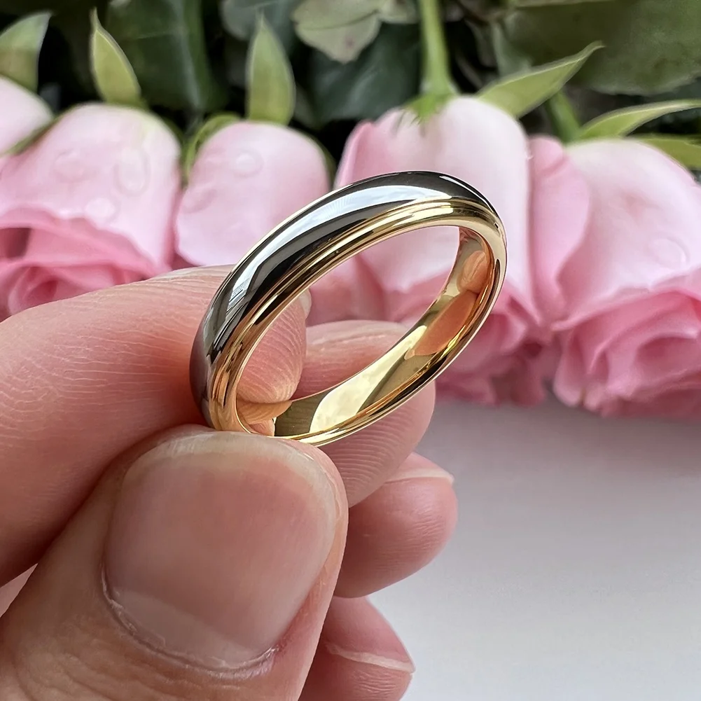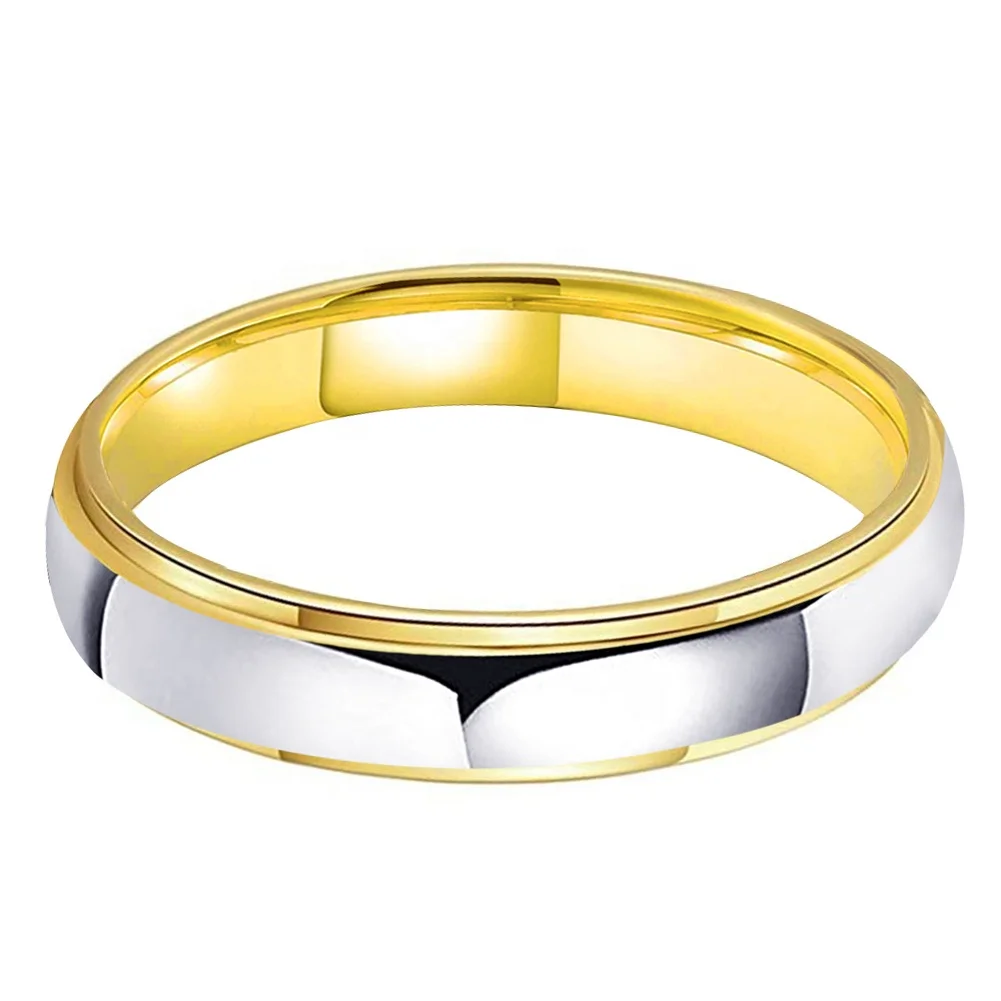 Coolstyle Jewelry Wholesale 4mm Two Tone Gold Plated Tungsten Ring for Men Women Dropshipping Fashion Engagement Wedding Band