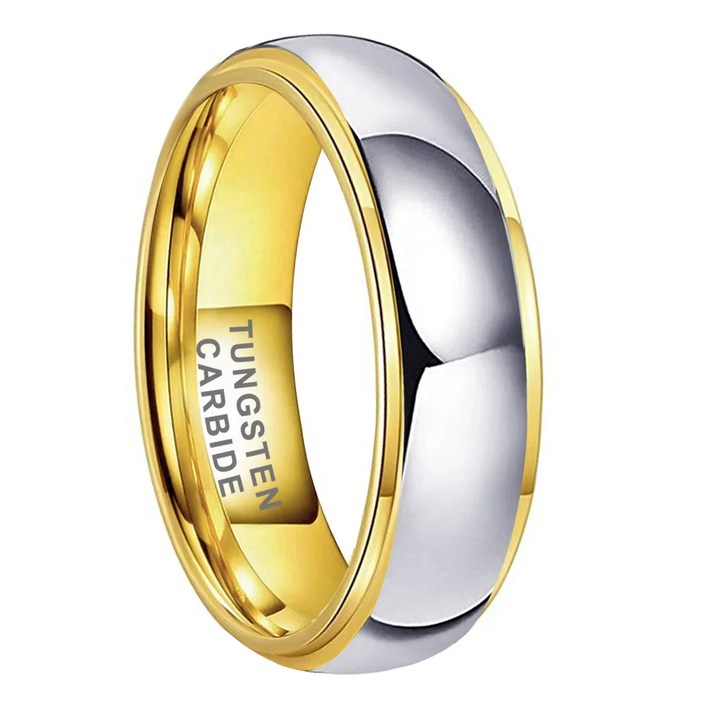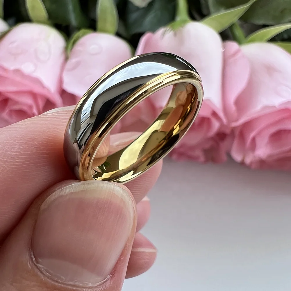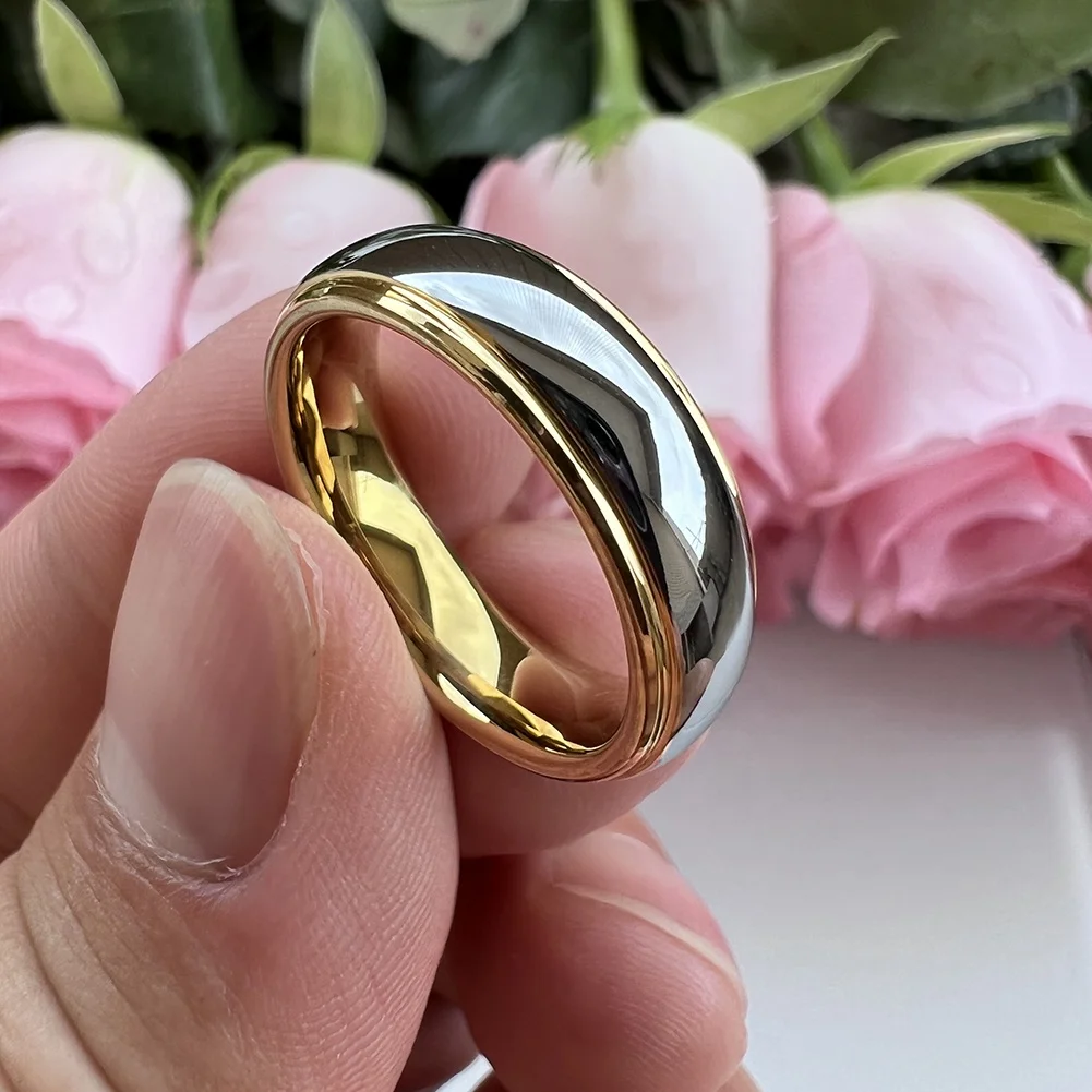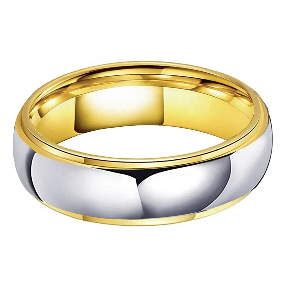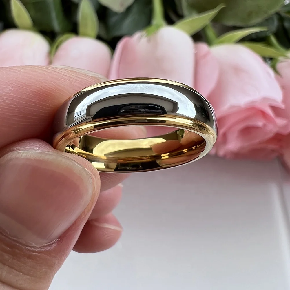 Coolstyle Jewelry Wholesale 6mm Two Tone Gold Plated Tungsten Ring for Men Women Dropshipping Fashion Engagement Wedding Band