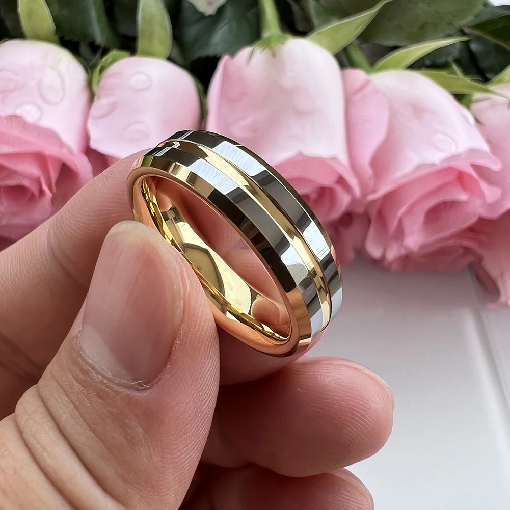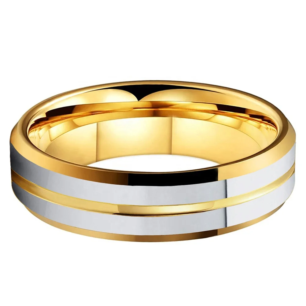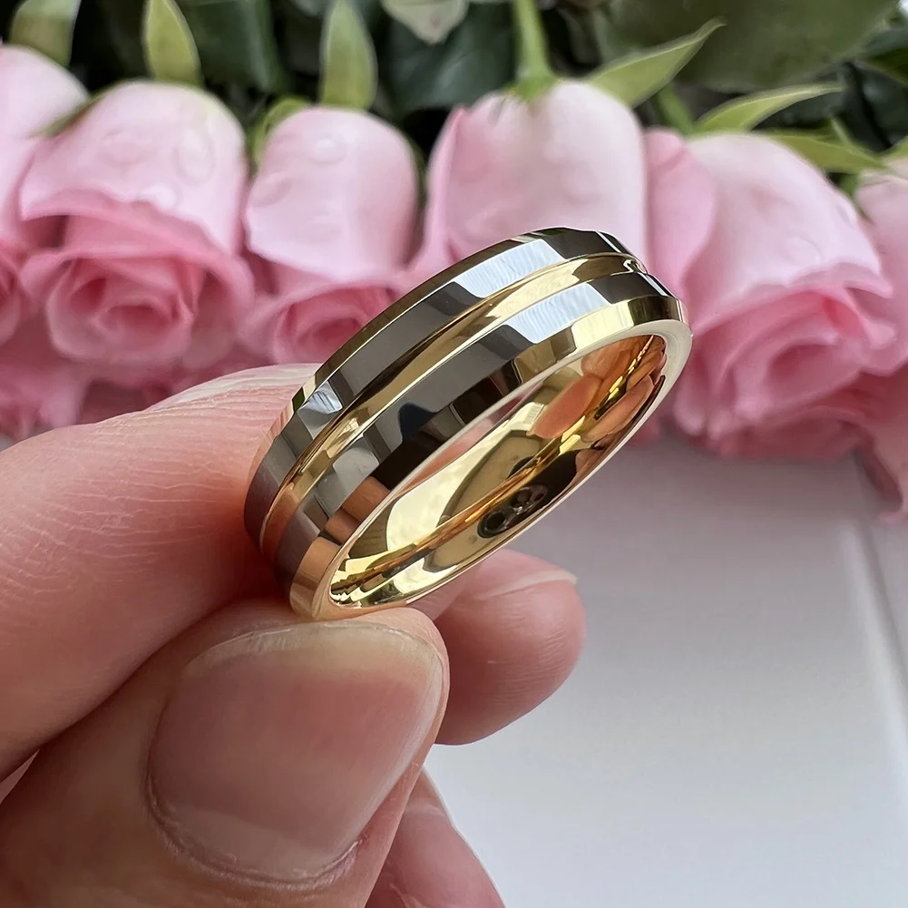 Coolstyle Jewelry 6mm Whosalese Two Tone Gold Plated Tungsten Finger Ring for Men Women Fashion Engagement Wedding Band