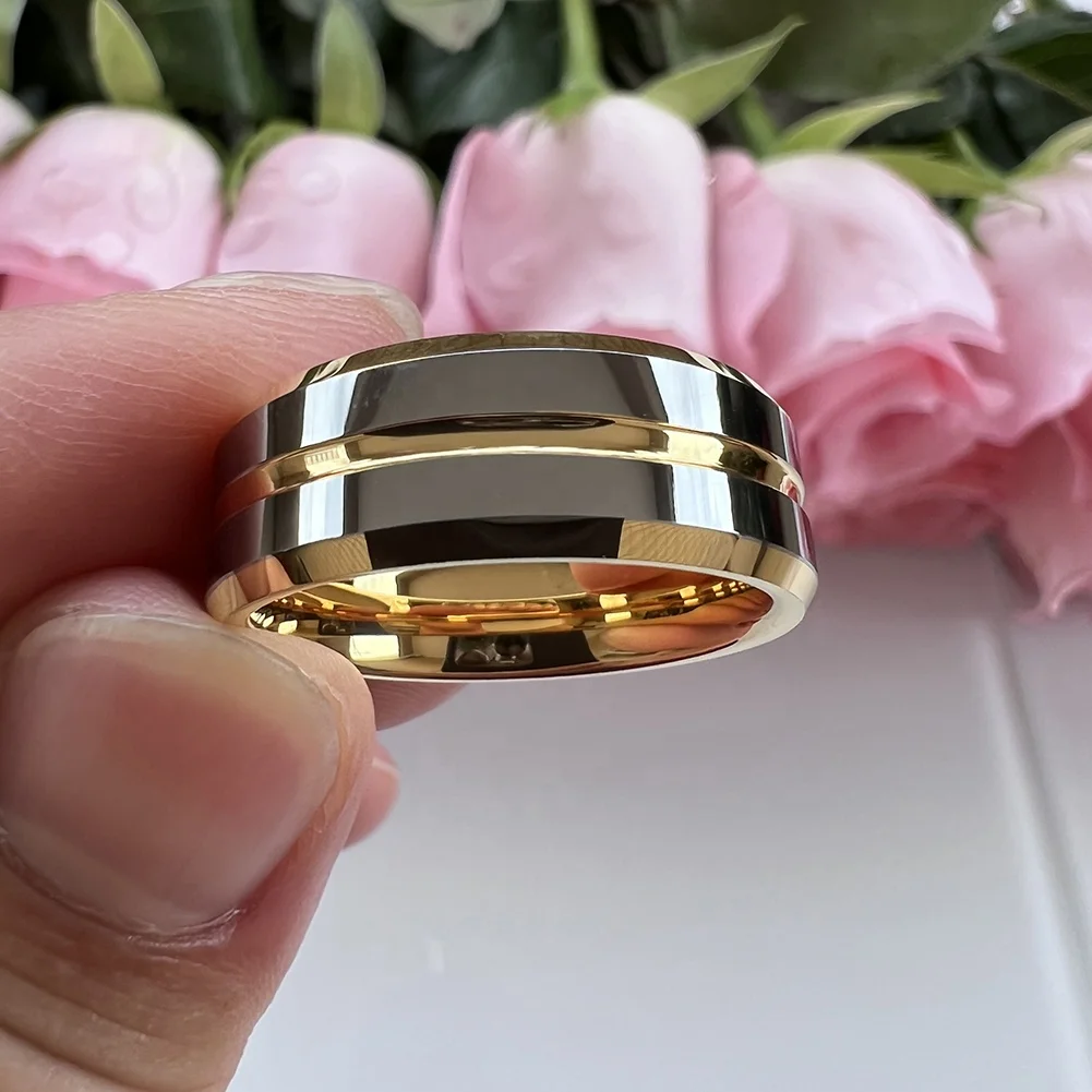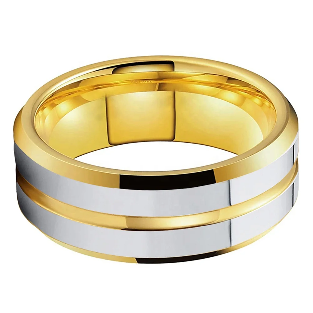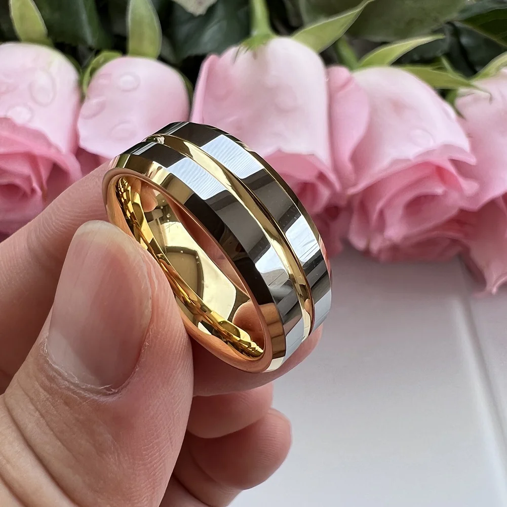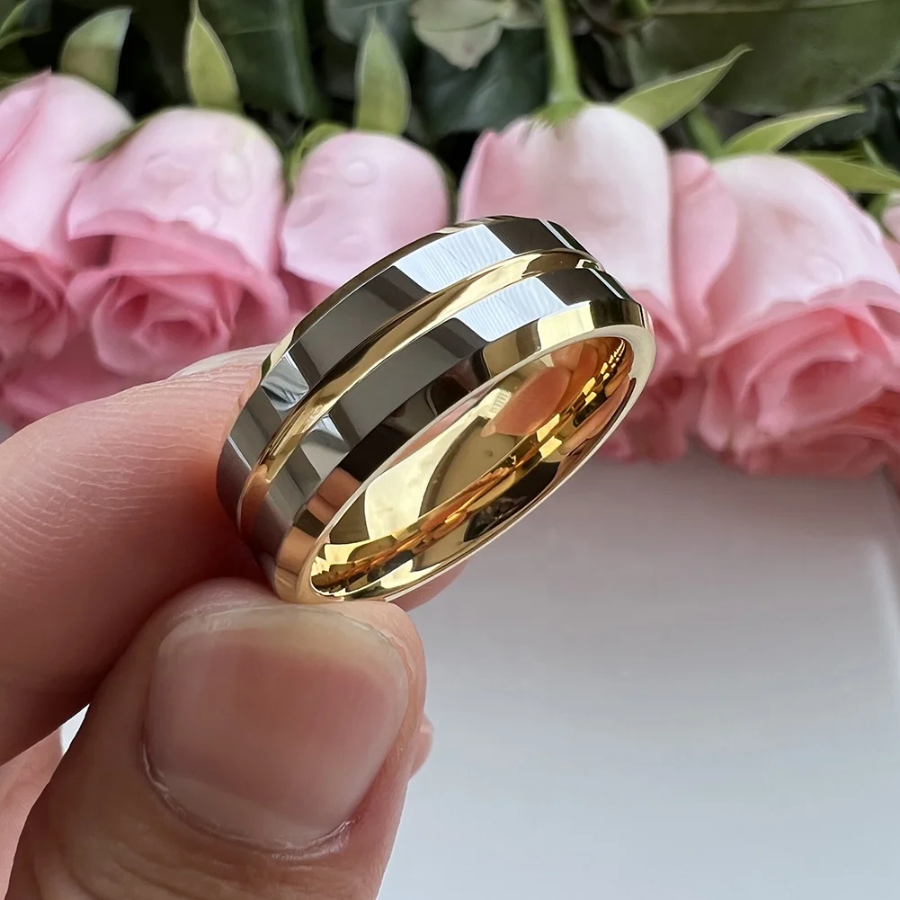 Coolstyle Jewelry 8mm Dropshipping Beveled Gold Plated Tungsten Carbide Ring for Men Women Fashion Engagement Wedding Band