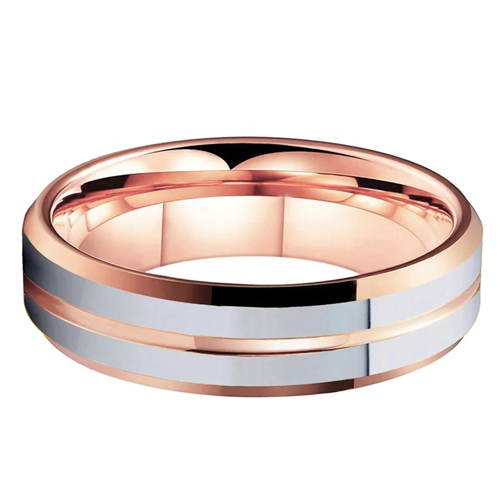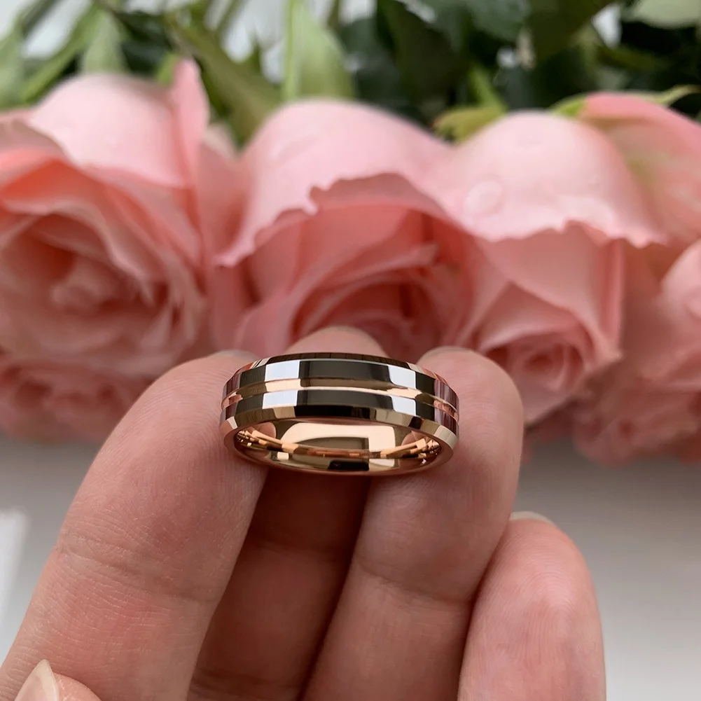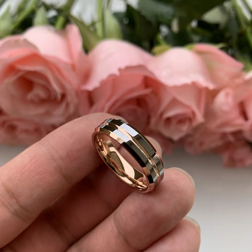 Coolstyle Jewelry 8mm Dropshipping Beveled Rose Gold Plated Tungsten Ring for Men Women Fashion Engagement Wedding Band