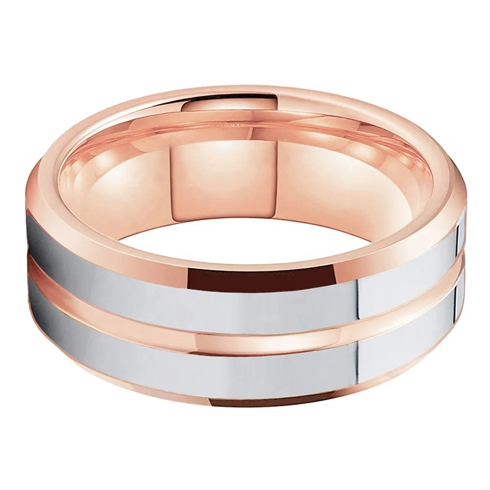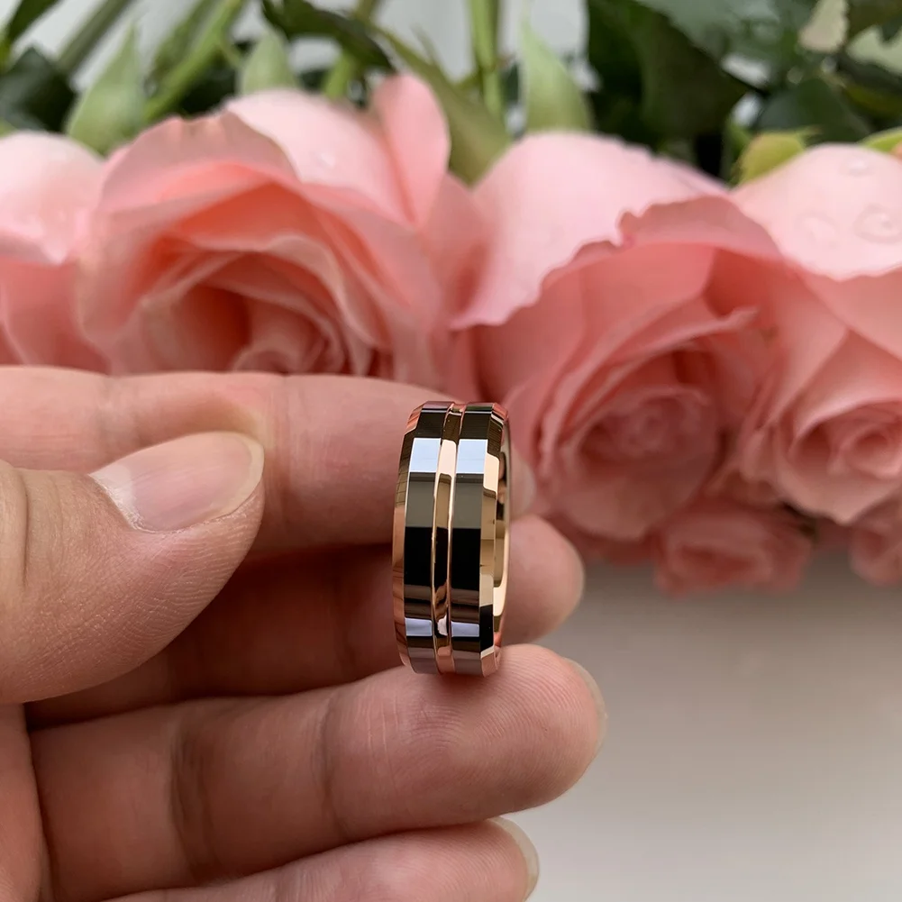 Coolstyle Jewelry 8mm Wholesale Beveled Rose Gold Plated Tungsten Carbide Ring for Men Women Fashion Engagement Wedding Band