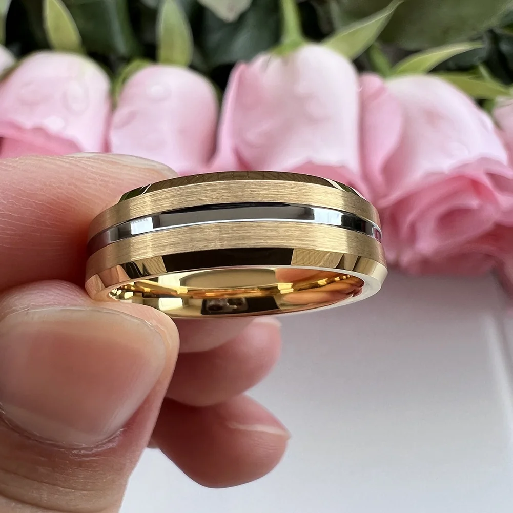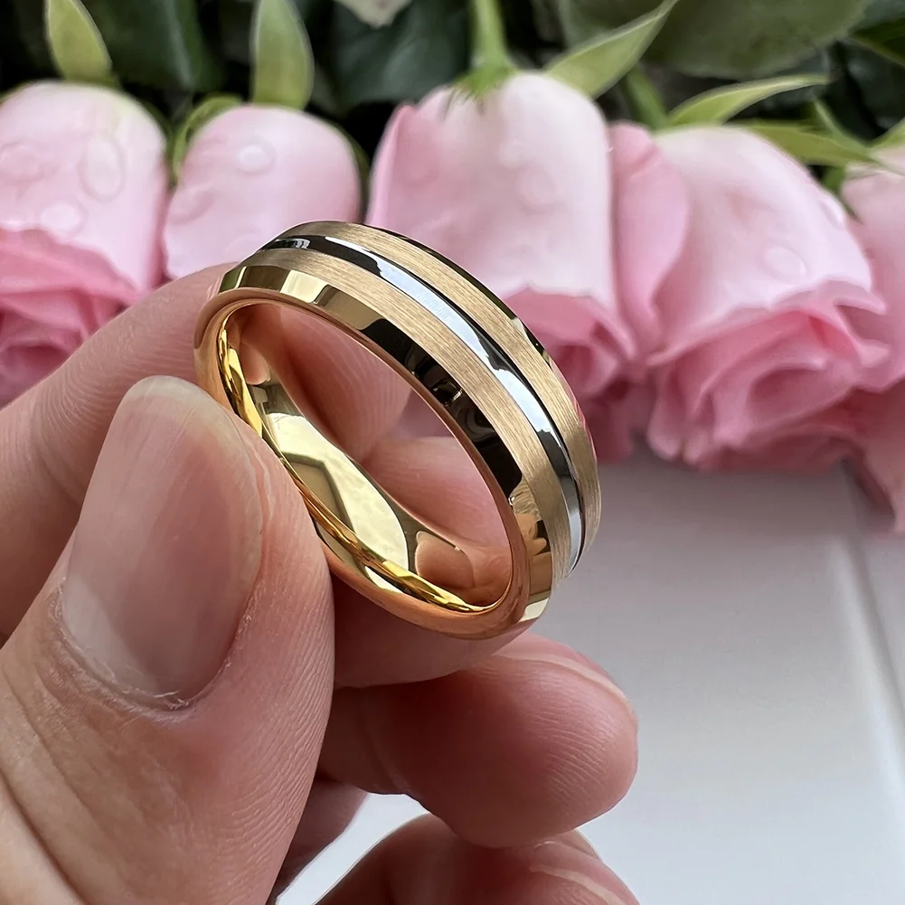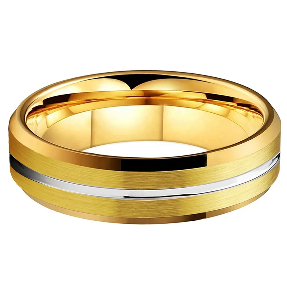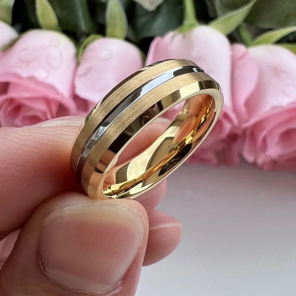 Coolstyle Jewelry 6mm Wholesale Beveled Brushed Gold Plated Tungsten Carbide Ring for Men Women Fashion Engagement Wedding Band