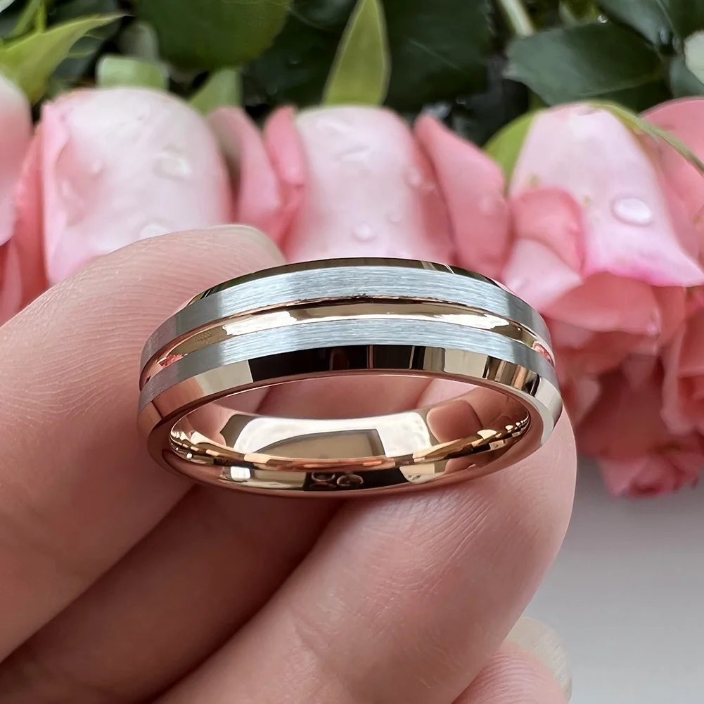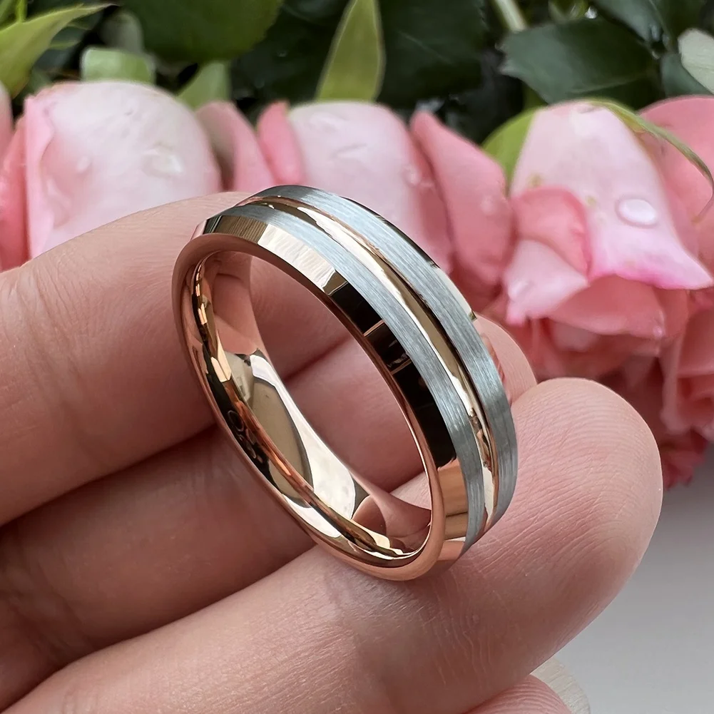 Coolstyle Jewelry 6mm Wholesale Silver Brushed Top Rose Gold Plated Tungsten Ring for Men Women Fashion Engagement Wedding Band