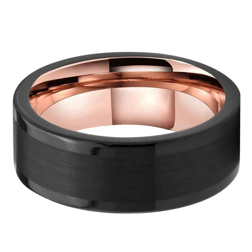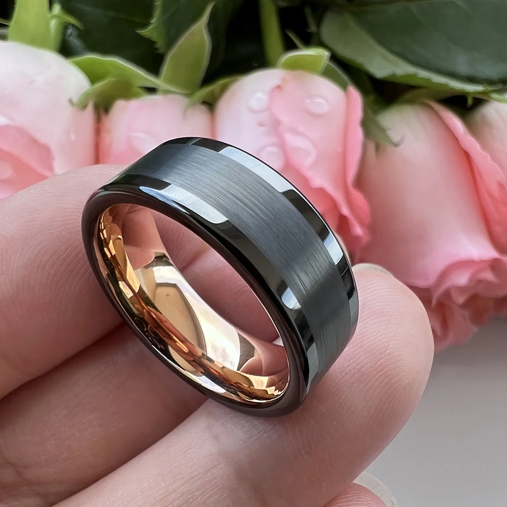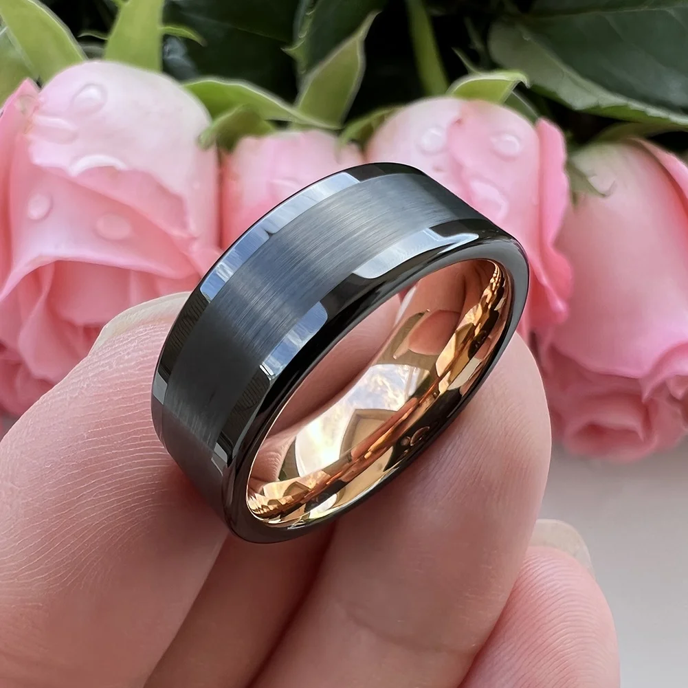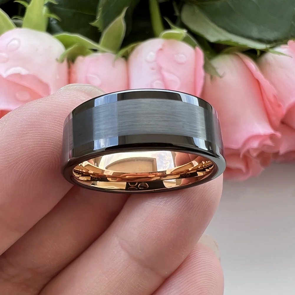 Coolstyle Jewelry 8mm Wholesale Two Tone Black Rose Gold Plated Tungsten Ring for Men Women Fashion Engagement Wedding Band