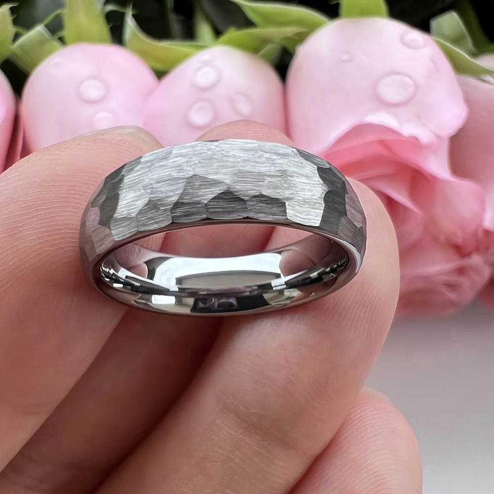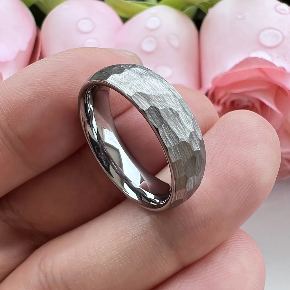Coolstyle Jewelry Wholesale Dropshipping 6mm Domed Hammered Tungsten Ring for Men Women Fashion Engagement Wedding Bands
