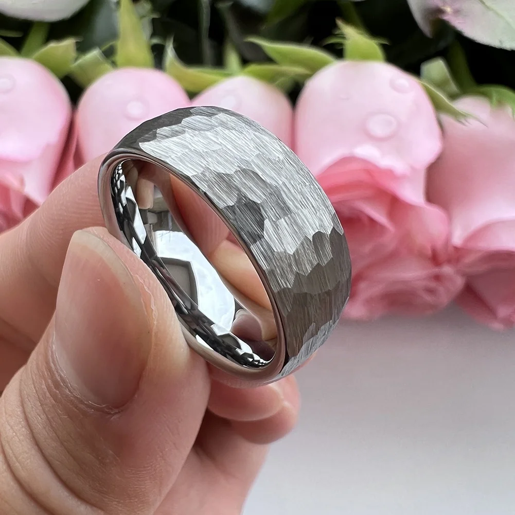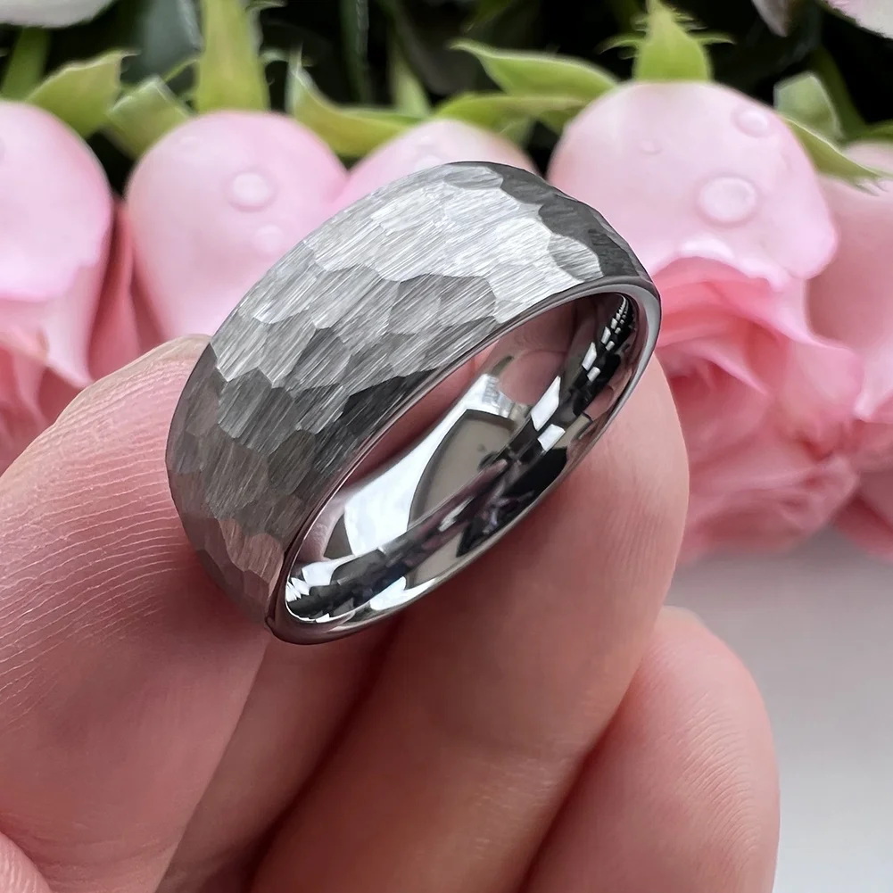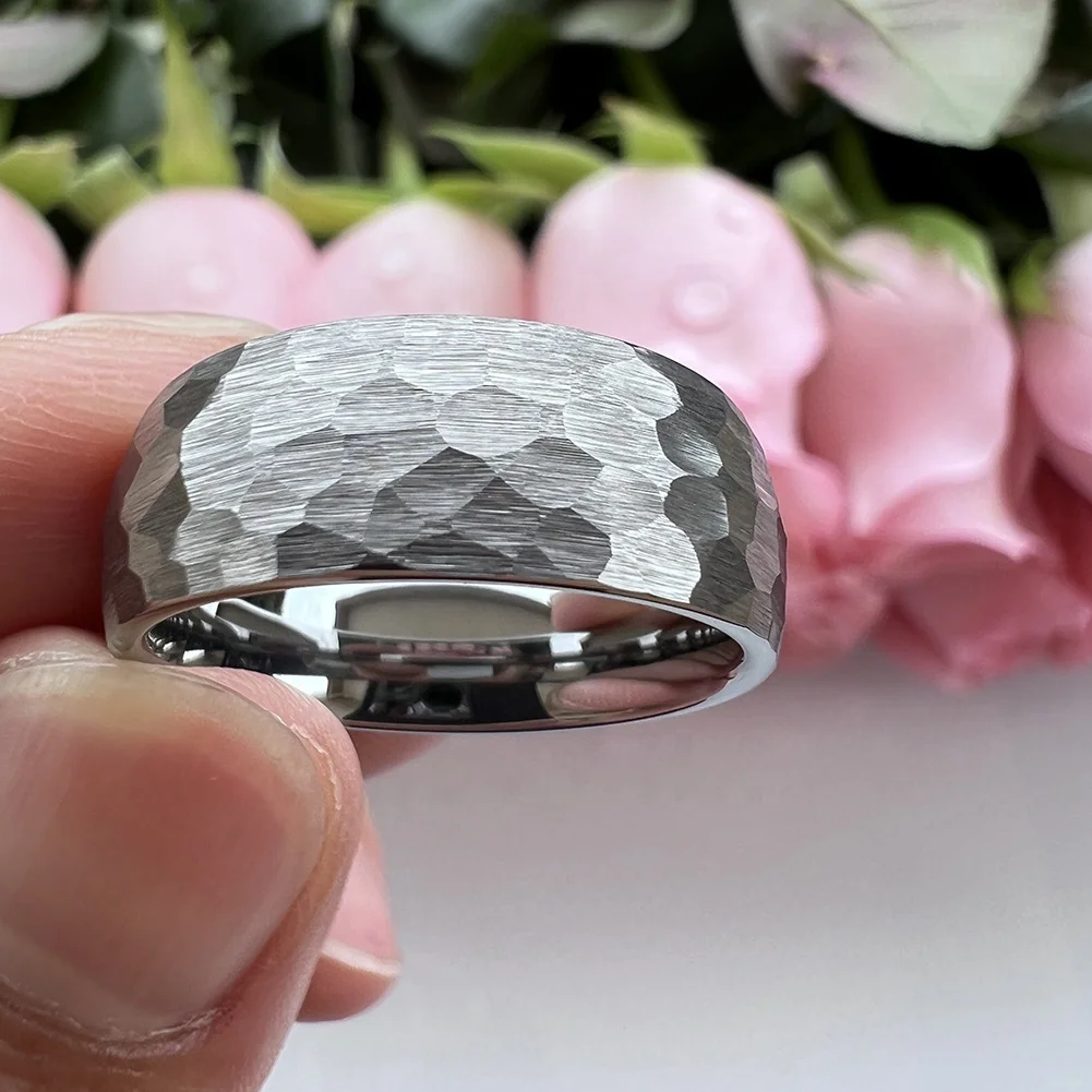 Coolstyle Jewelry 8mm Wholesale Dropshipping Domed Hammered Tungsten Carbide Ring for Men Women Fashion Engagement Wedding Band