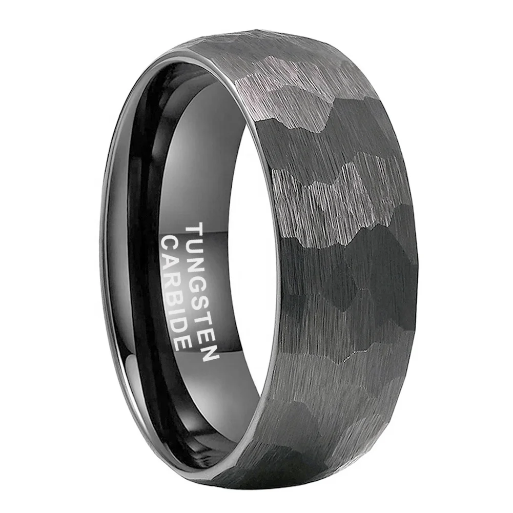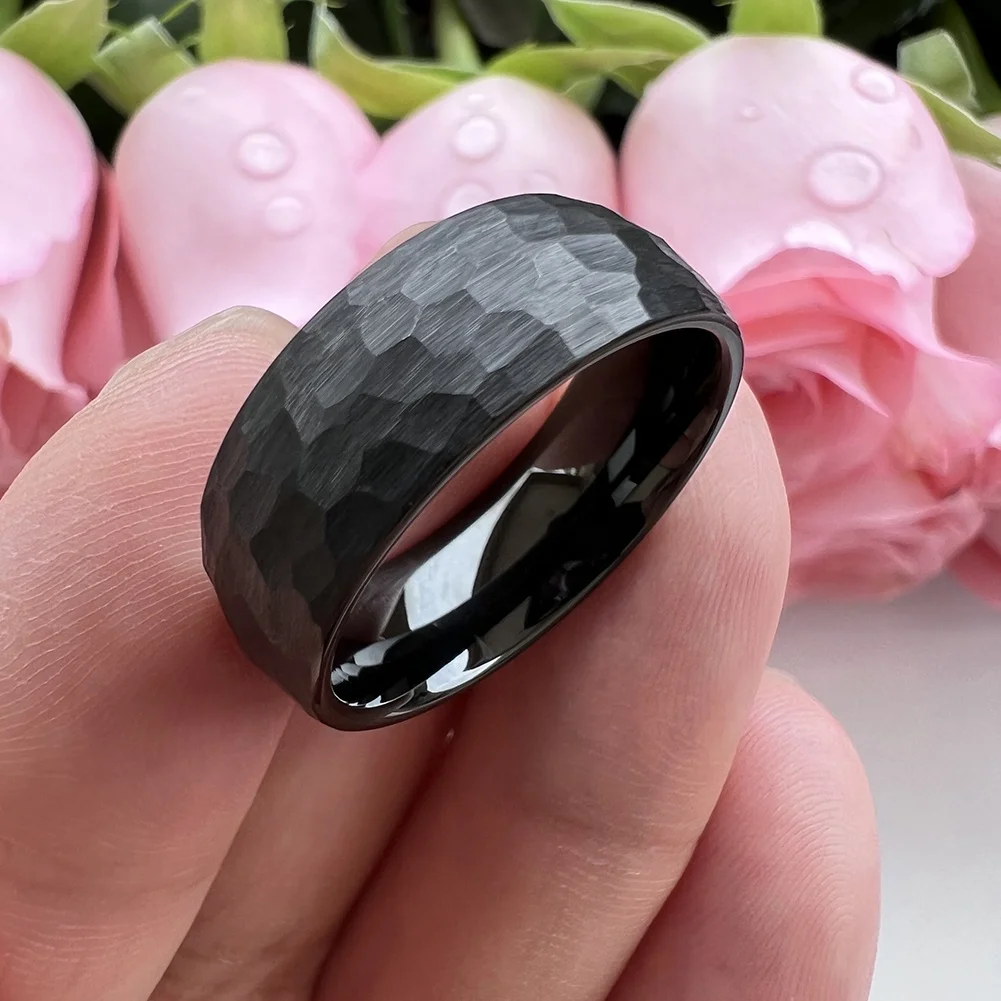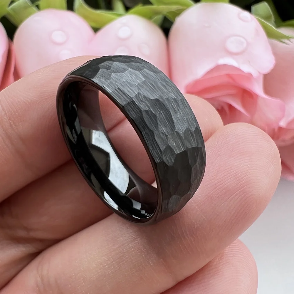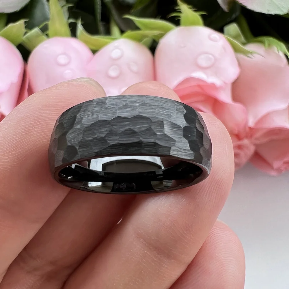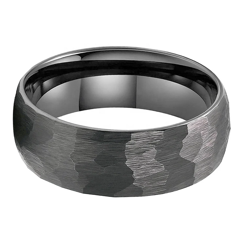 Coolstyle Jewelry 8mm Wholesale Dropshipping Matte Gunmetal Hammered Tungsten Ring for Men Women Fashion Engagement Wedding Band