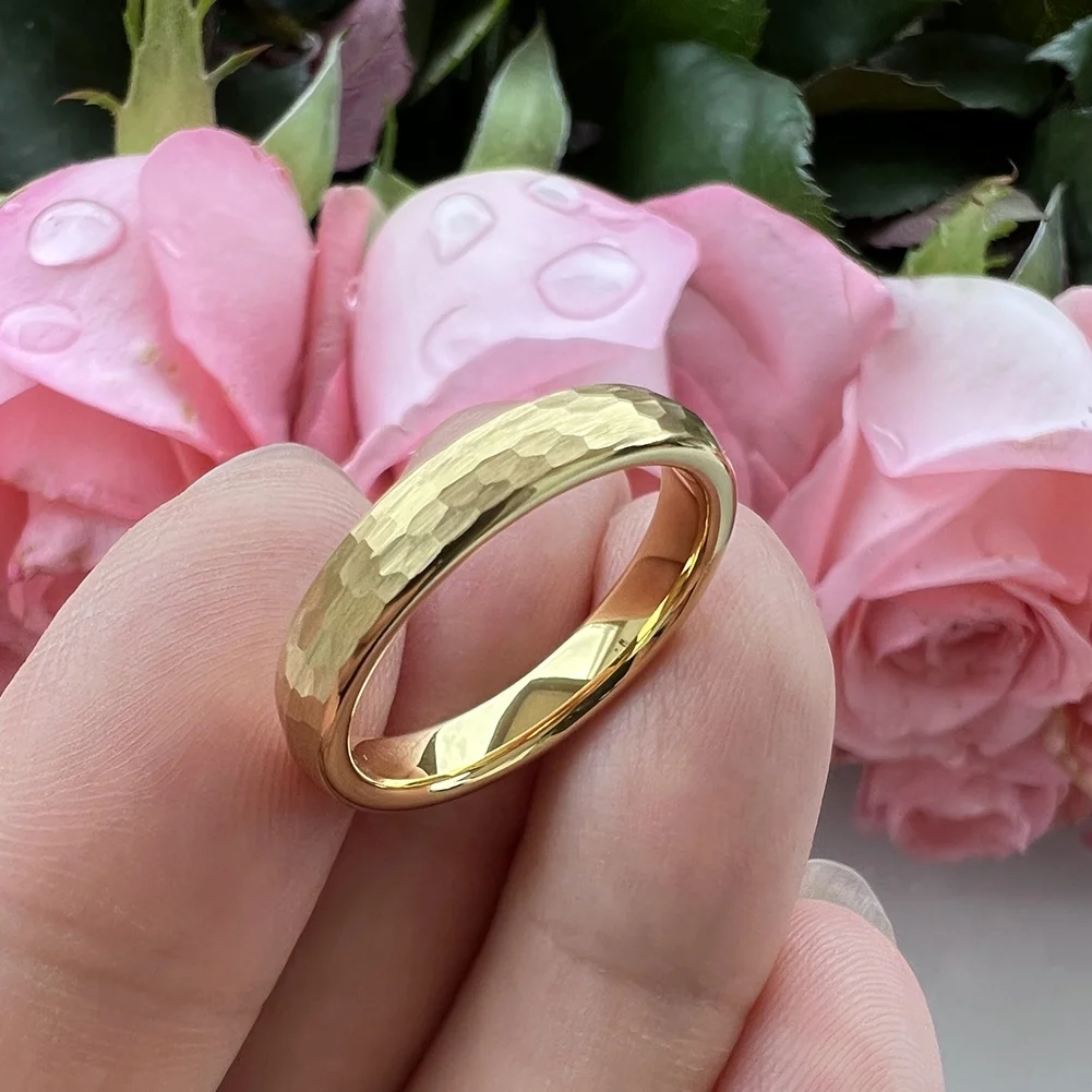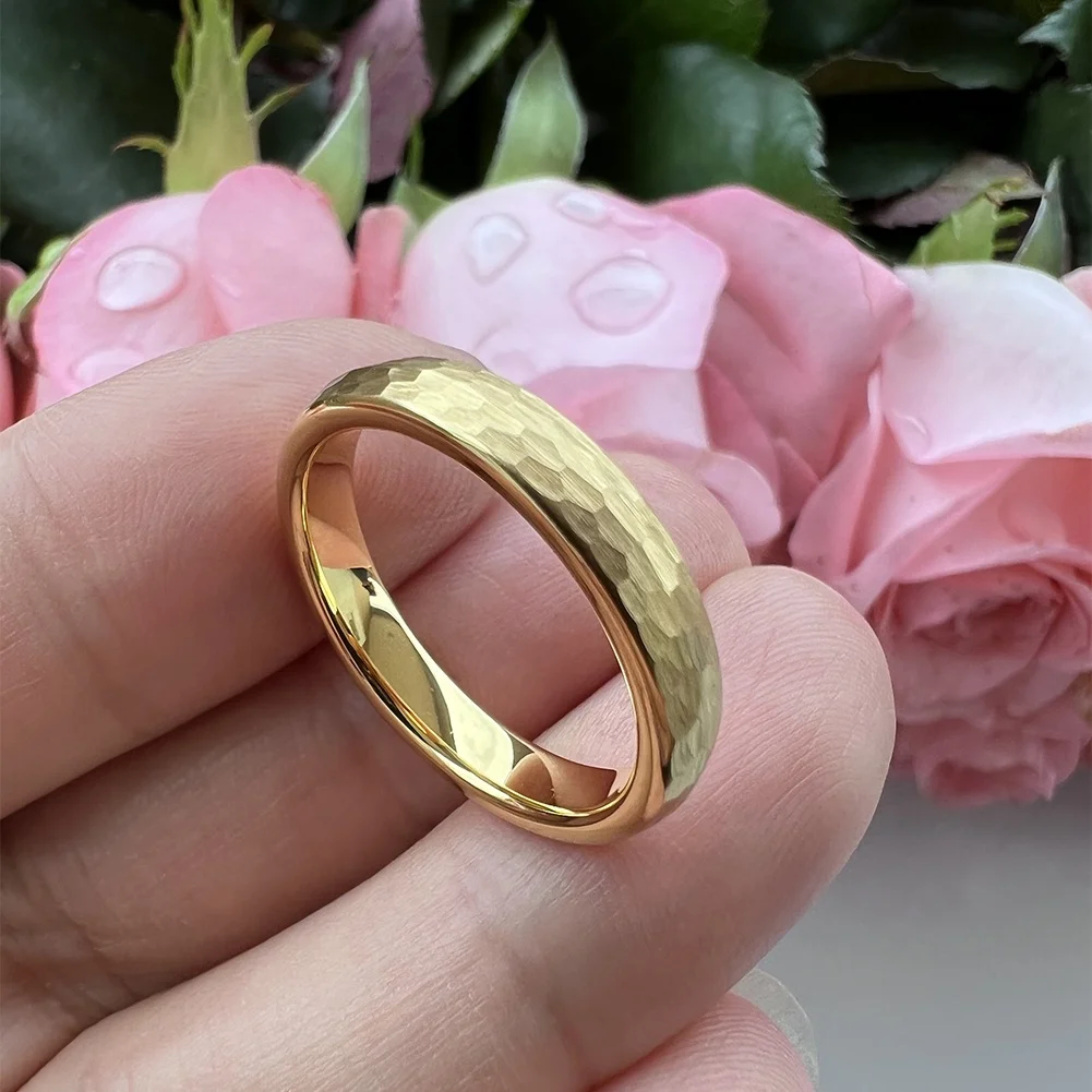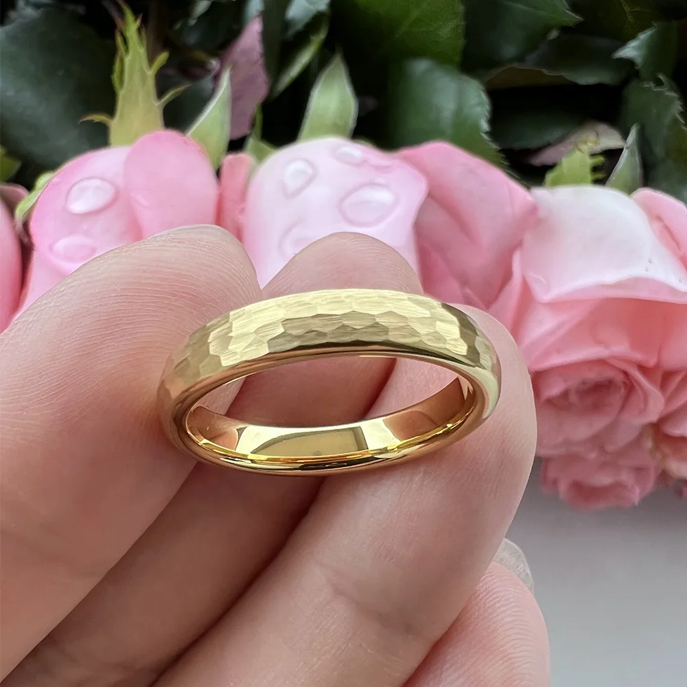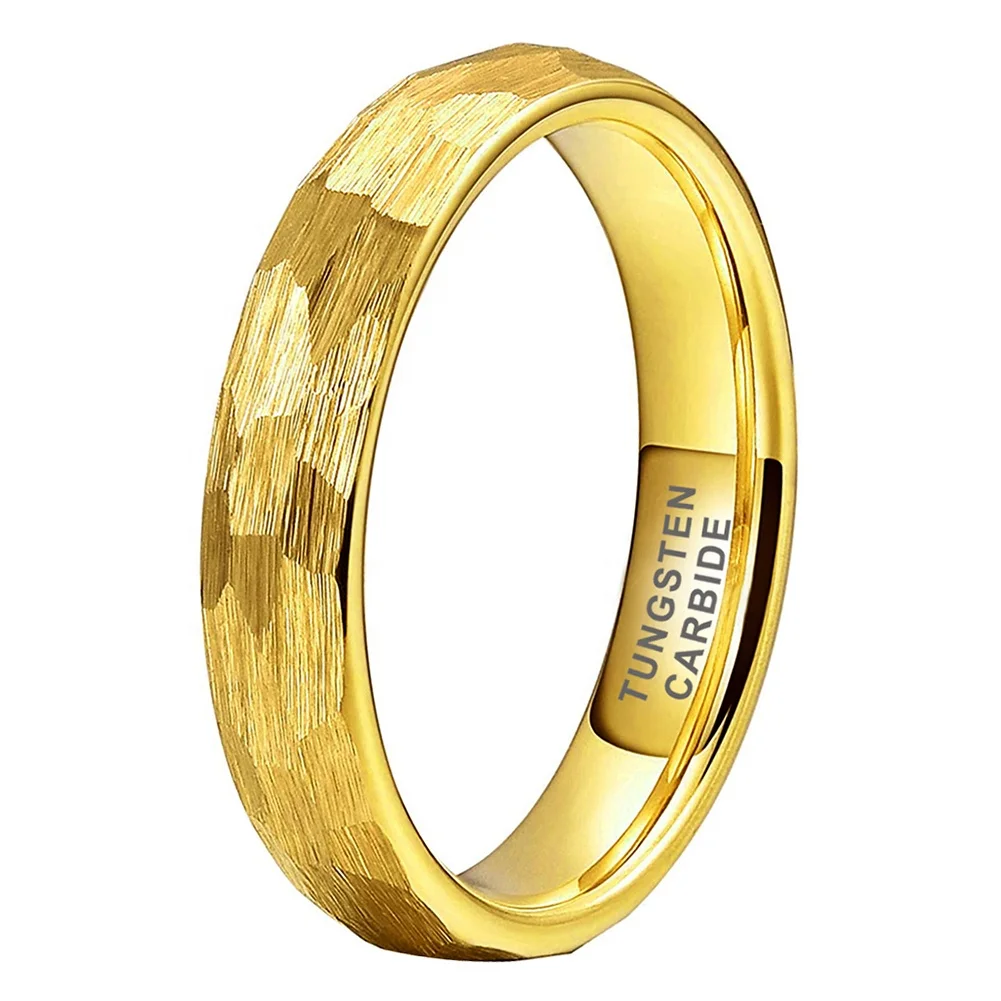 Coolstyle Jewelry in Stock Dropshipping 4mm Gold Plated Hammered Tungsten Ring for Women Men Fashion Engagement Wedding Band
