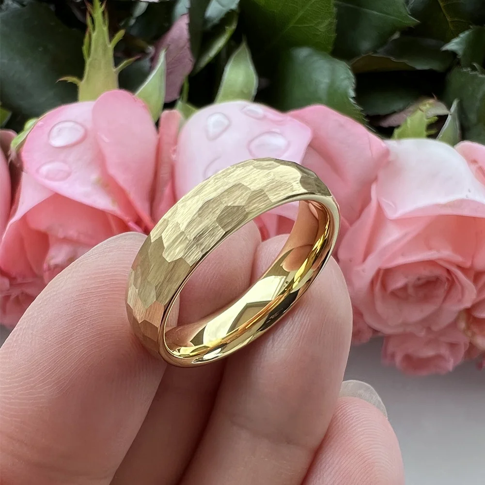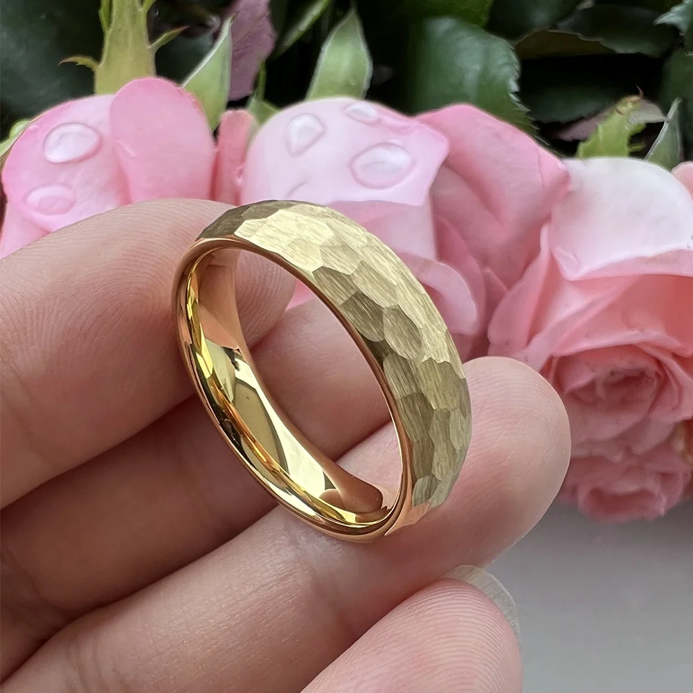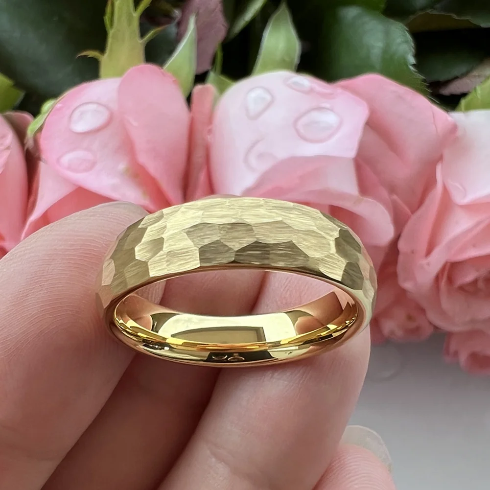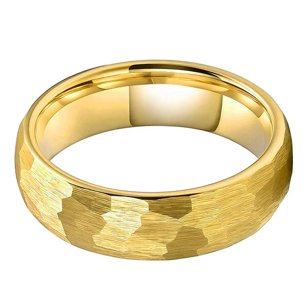 Coolstyle Jewelry in Stock Dropshipping 6mm Gold Plated Hammered Tungsten Ring for Men Women Fashion Engagement Wedding Band