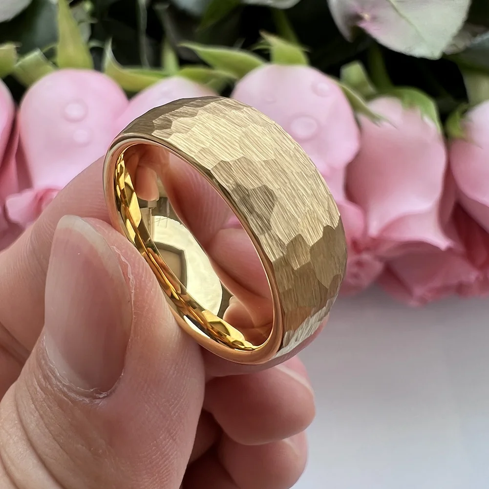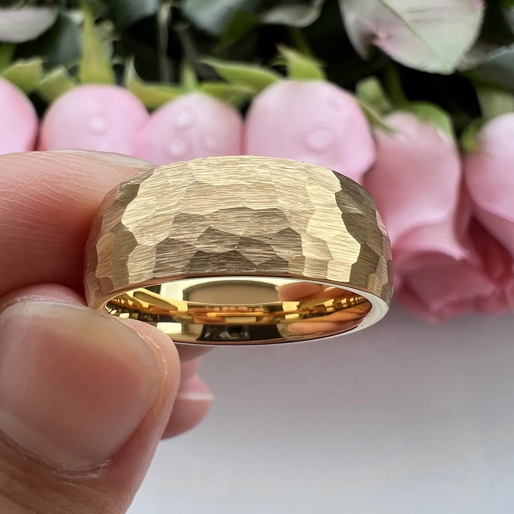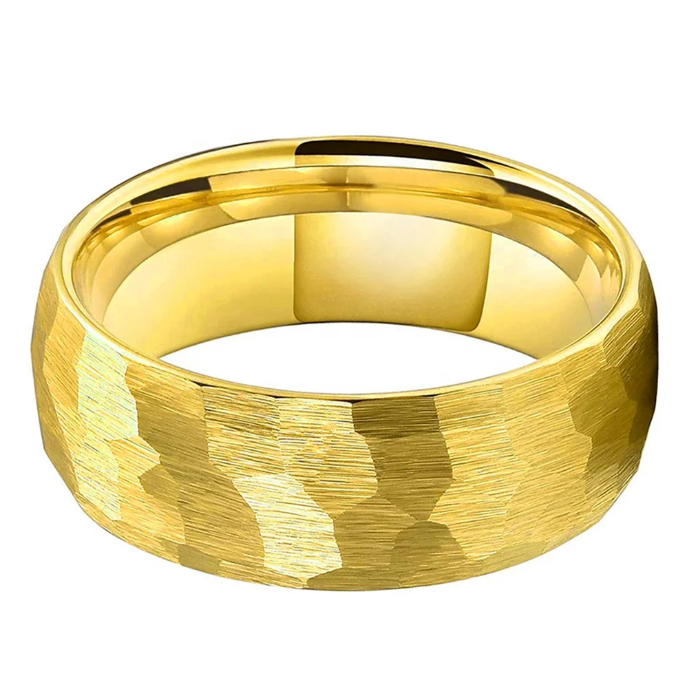 Coolstyle Jewelry 8mm Wholesale Dropshipping Gold Hammered Tungsten Ring for Men Women Fashion Jewelry Engagement Wedding Band