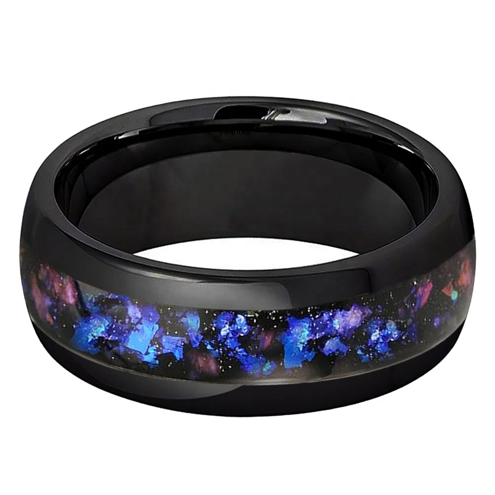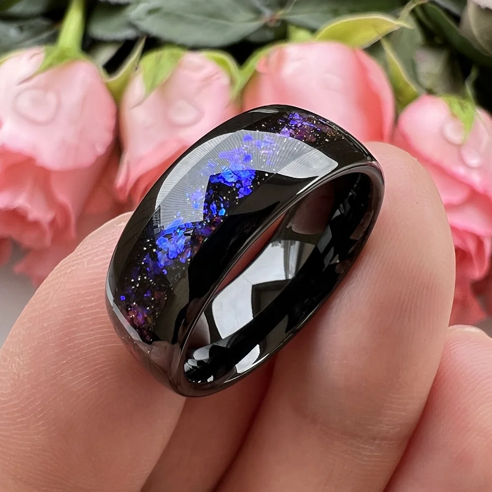8mm Black Tungsten Rings for Men Women Orion Nebula Opal Galaxy Inlay Engagement Wedding Promise Band Polished Shiny Comfort Fit