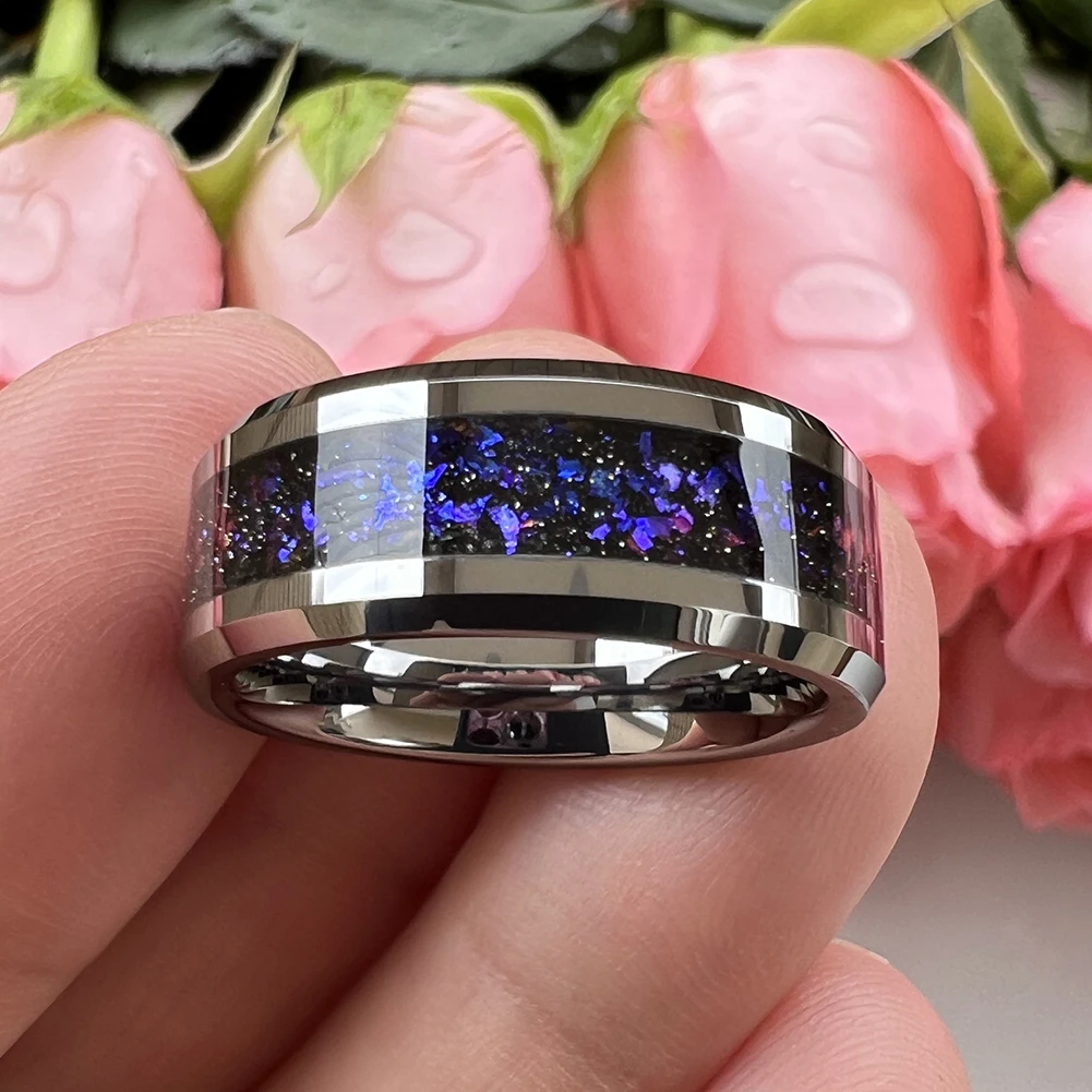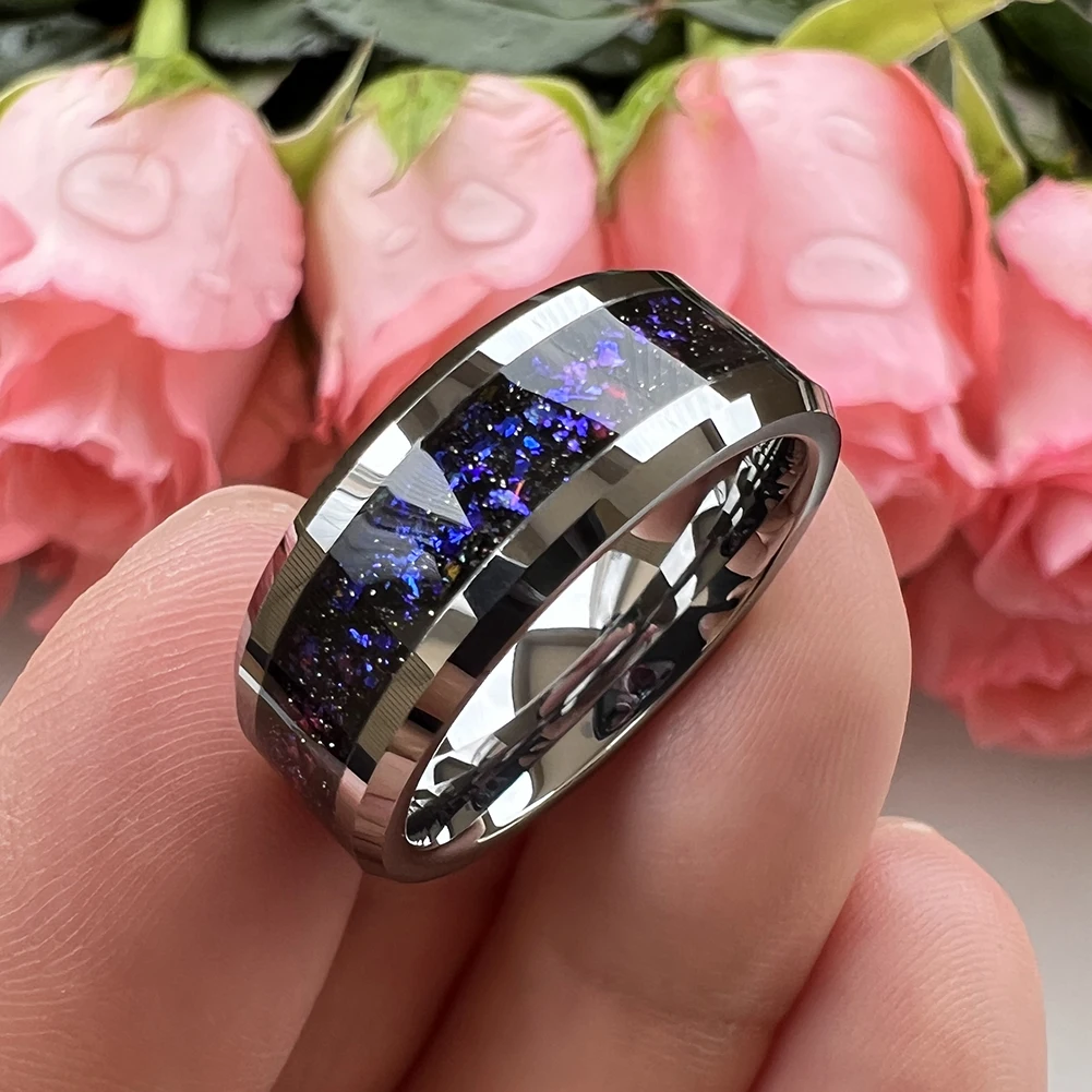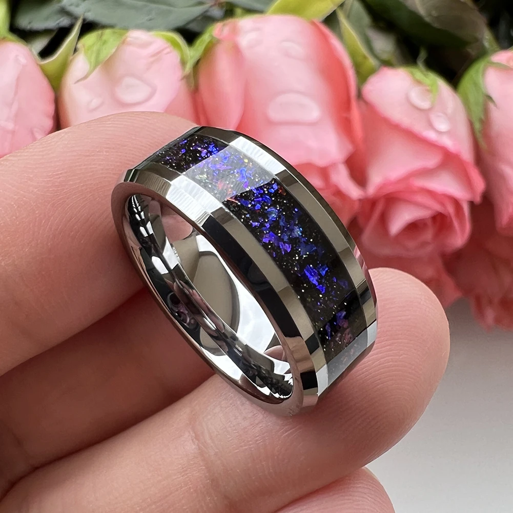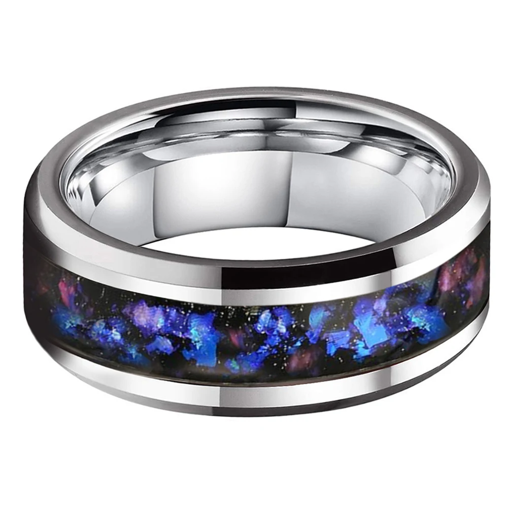 8mm Tungsten Rings for Men Women Orion Nebula Opal Galaxy Inlay Engagement Wedding Band Beveled Edges Polished Comfort Fit