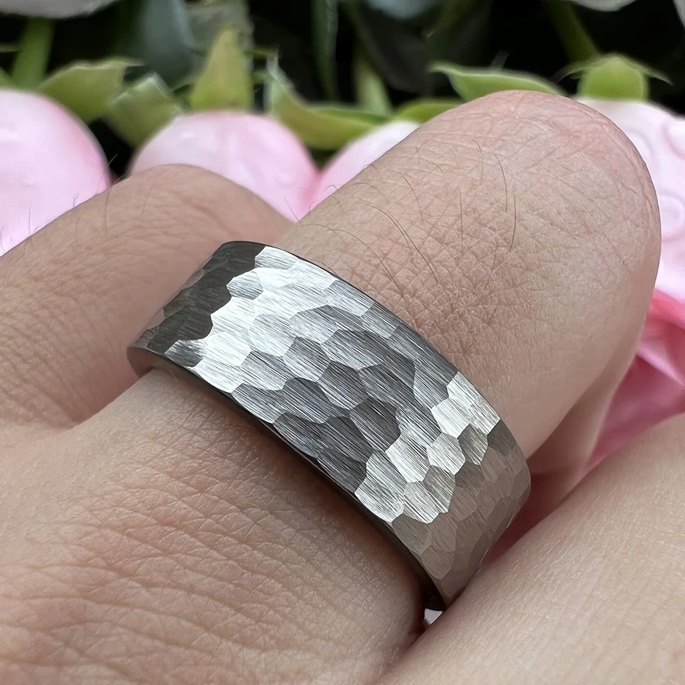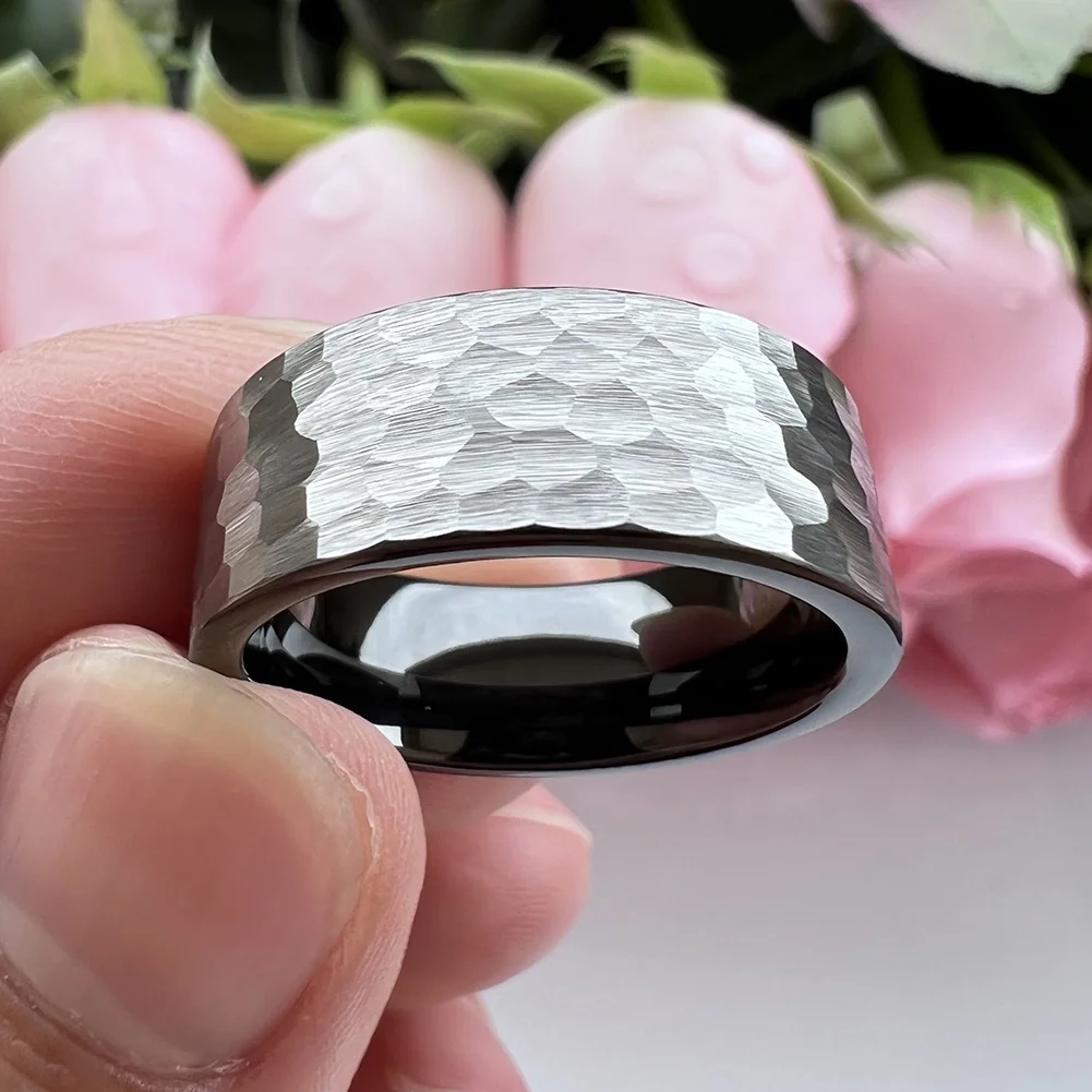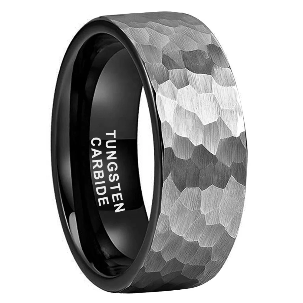 Coolstyle Jewelry 6mm 8mm Two Tone Black Hammered Tungsten Ring for Men Women Fashion Jewelry Engagement Wedding Band