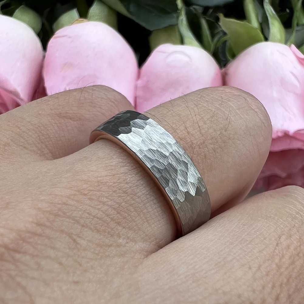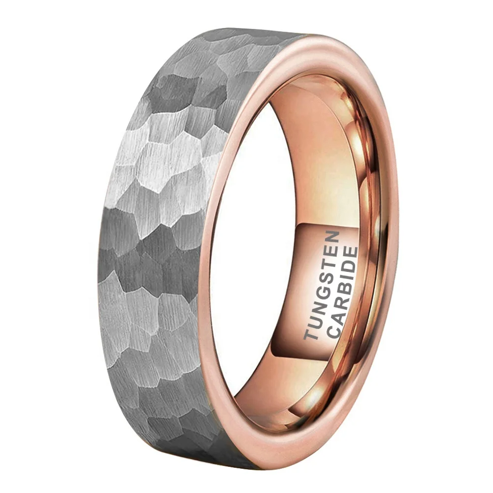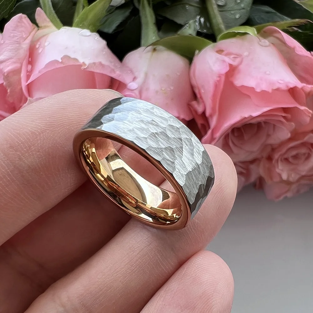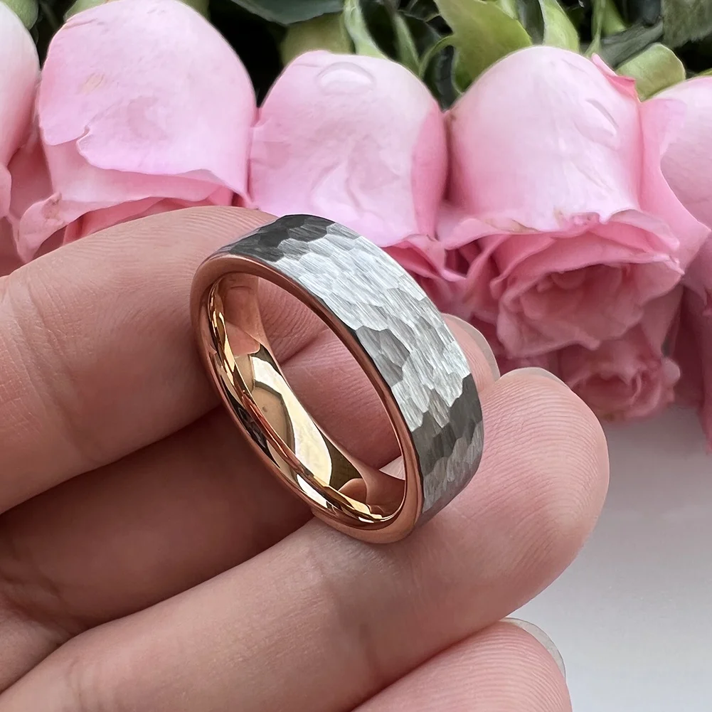 Coolstyle Jewelry 6mm 8mm Two Tone Rose Gold Hammered Tungsten Carbide Ring for Men Women Fashion Engagement Wedding Band