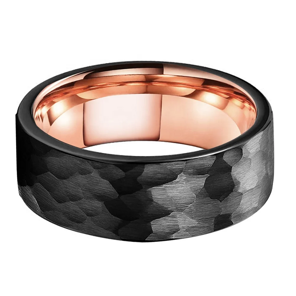 Coolstyle Jewelry 8mm Black Rose Gold Hammered Tungsten Carbide Ring for Men Women Fashion Jewelry Engagement Wedding Band