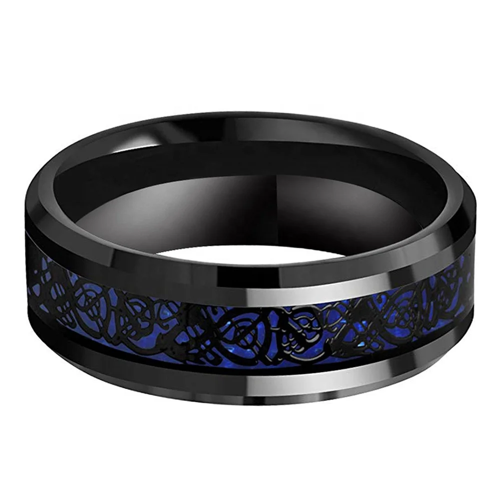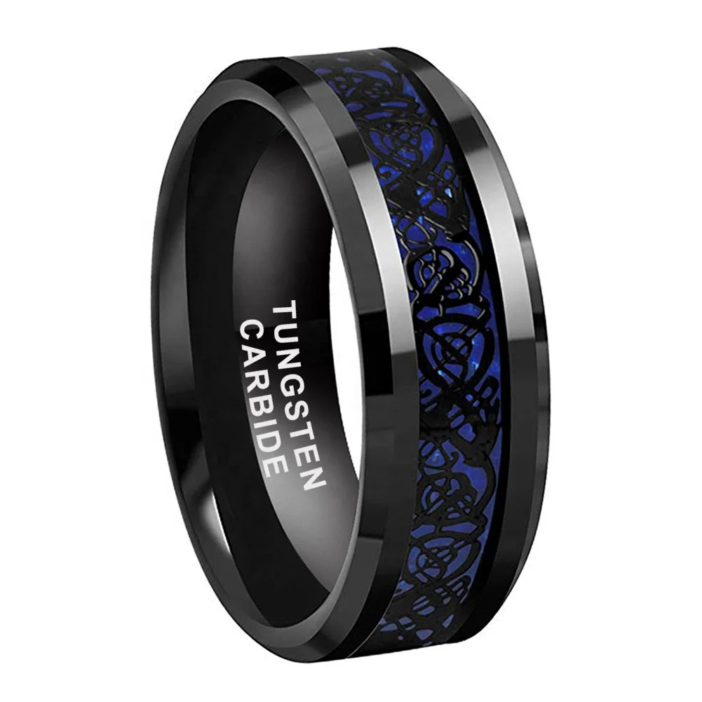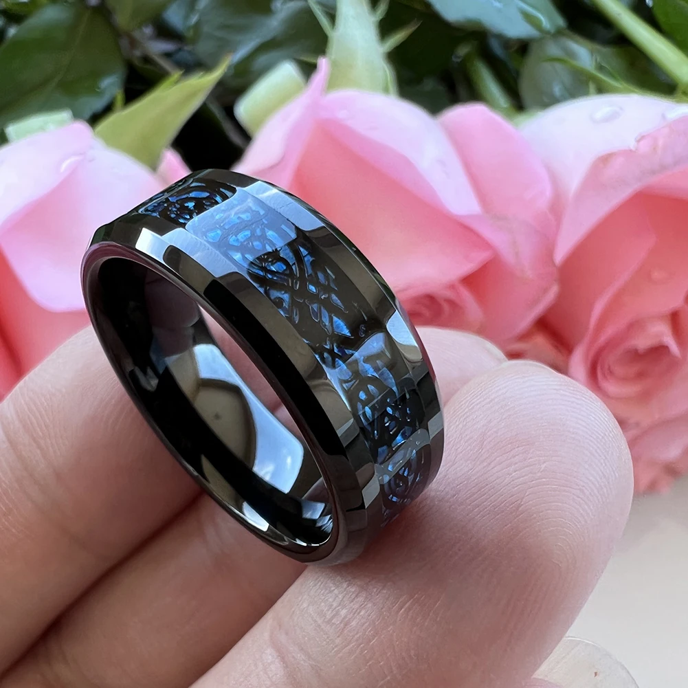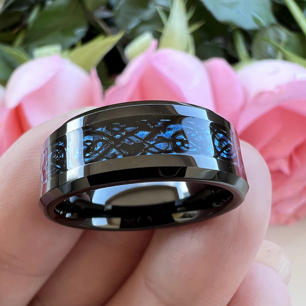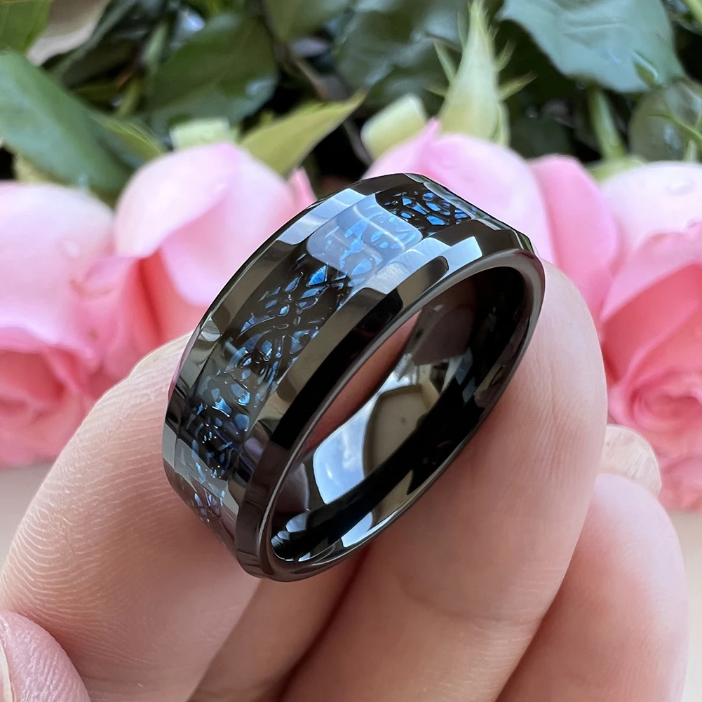 Coolstyle Jewelry 8mm Carbon Fiber Dragon Inlay Black Tungsten Ring Men Women Fashion Engagement Wedding Band Comfort Fit