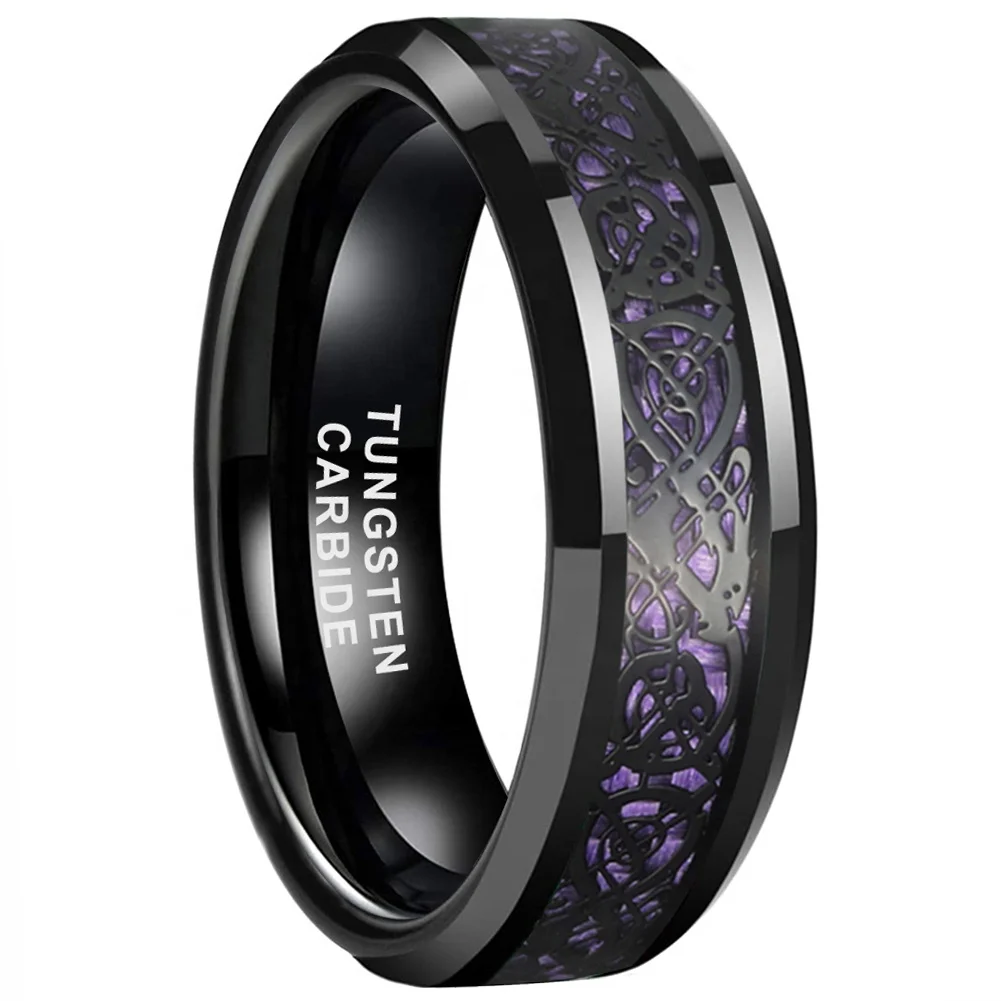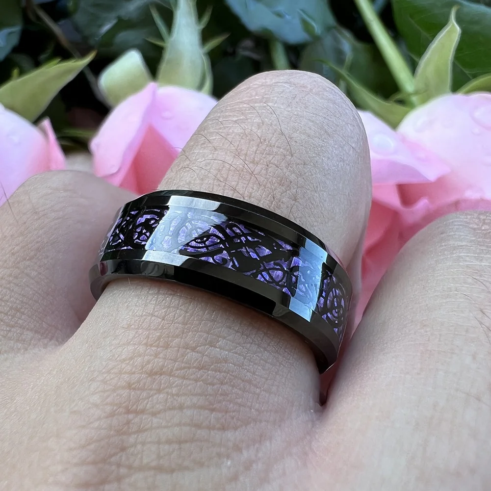 Coolstyle Jewelry 6mm 8mm Purple Carbon Fiber Dragon Inlay Black Tungsten Ring Men Women Engagement Wedding Band Comfort Fit
