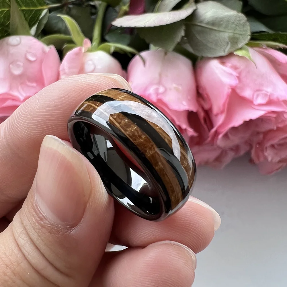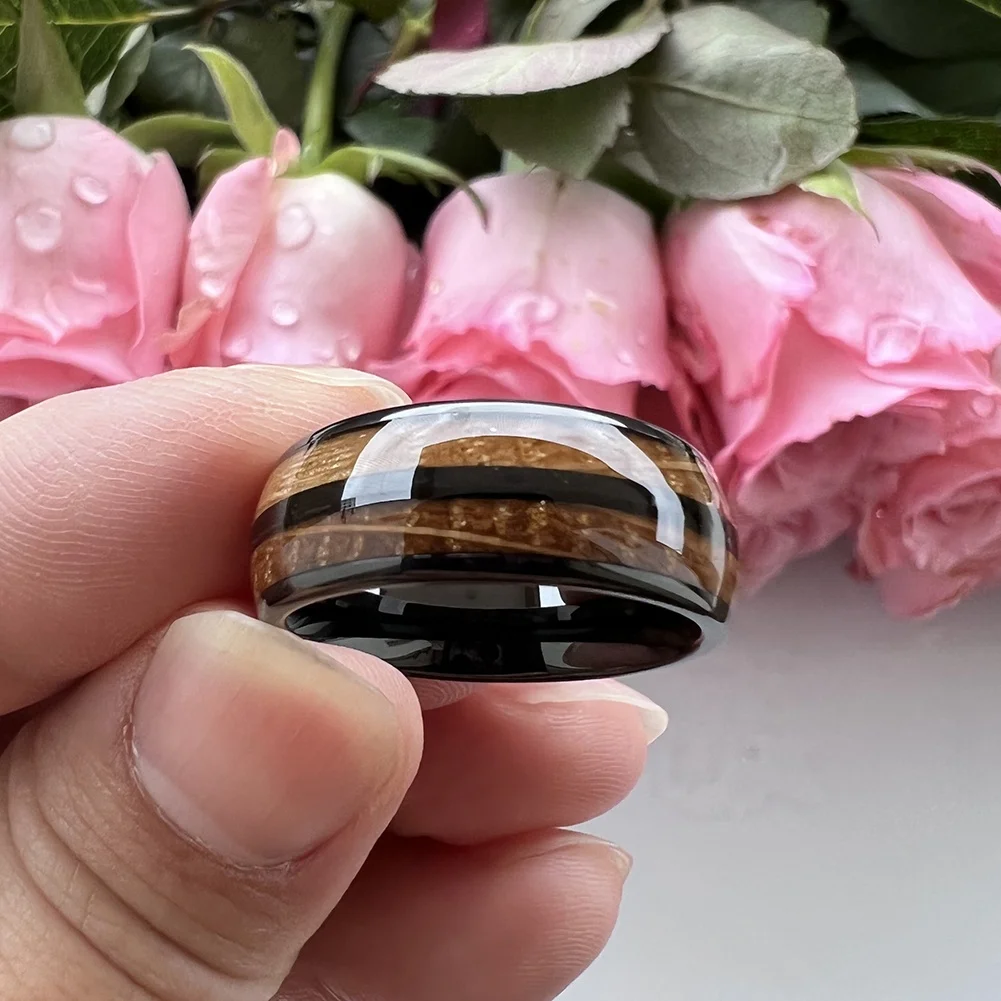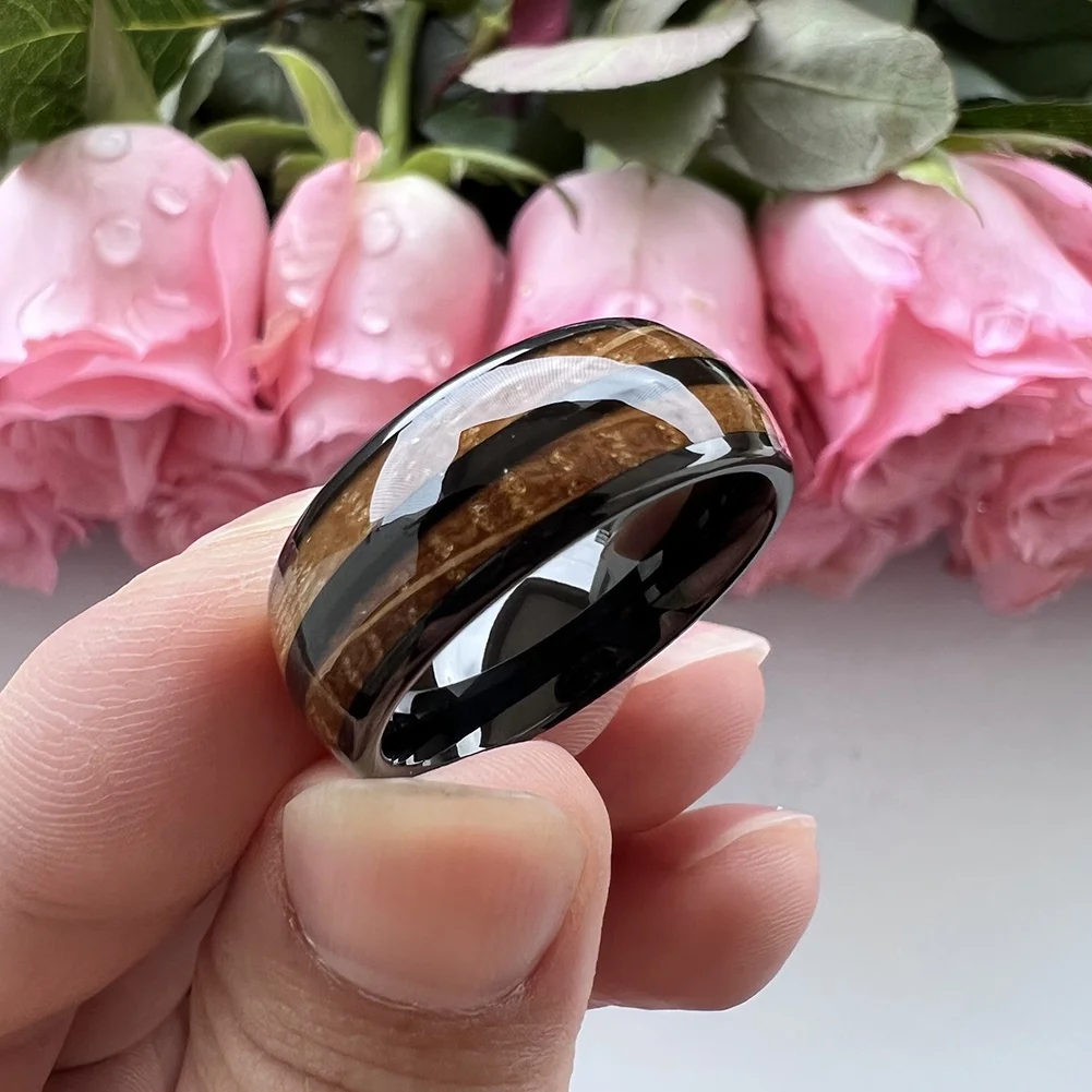 Coolstyle Jewelry Wholesale 8mm Whisky Barrel Wood Inlay Black Tungsten Ring for Men Women Fashion Engagement Wedding Band