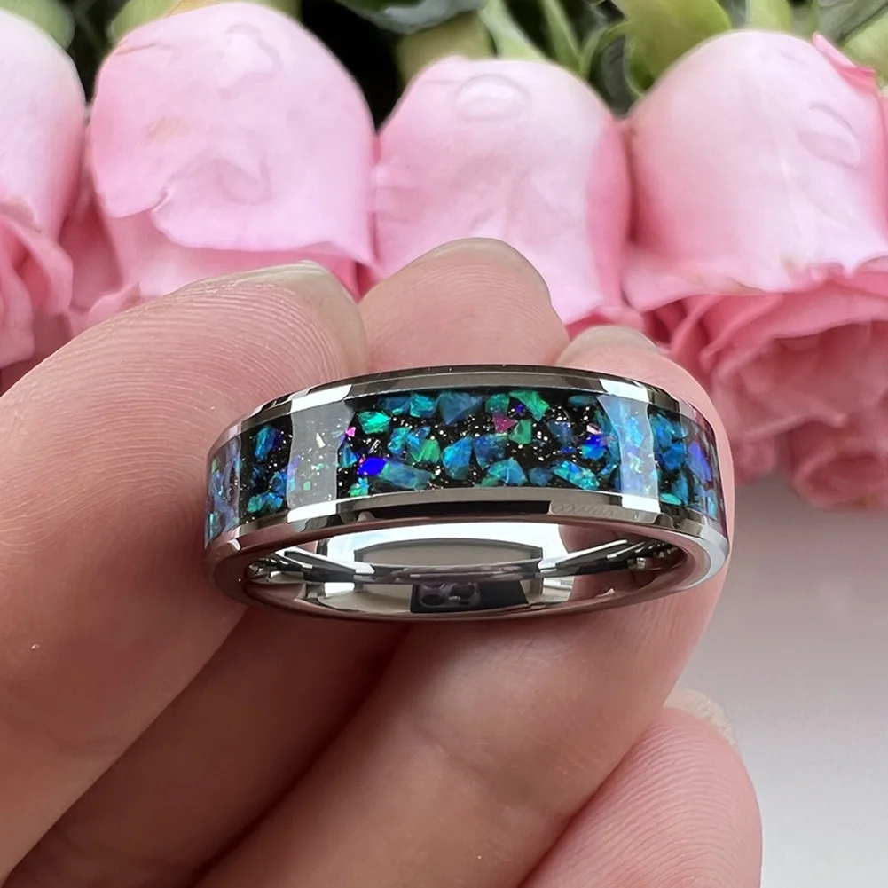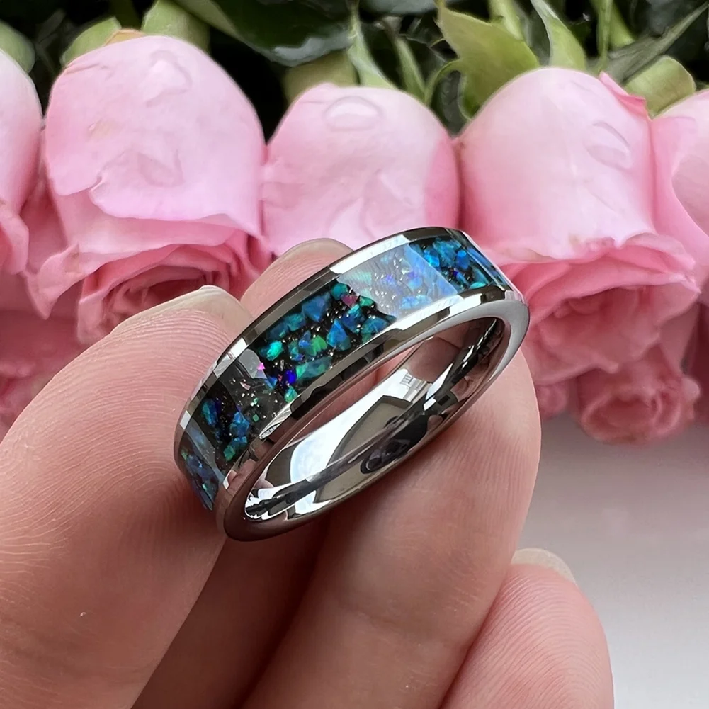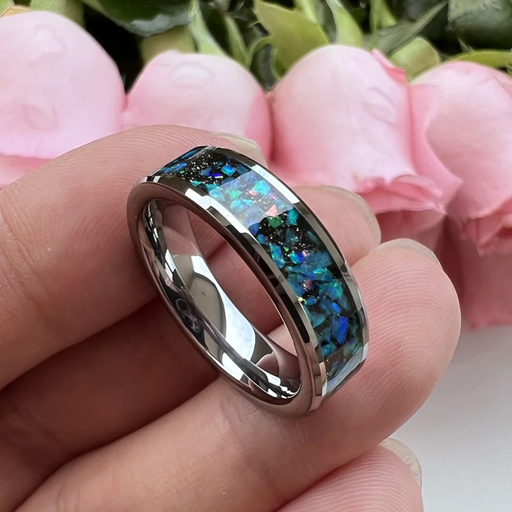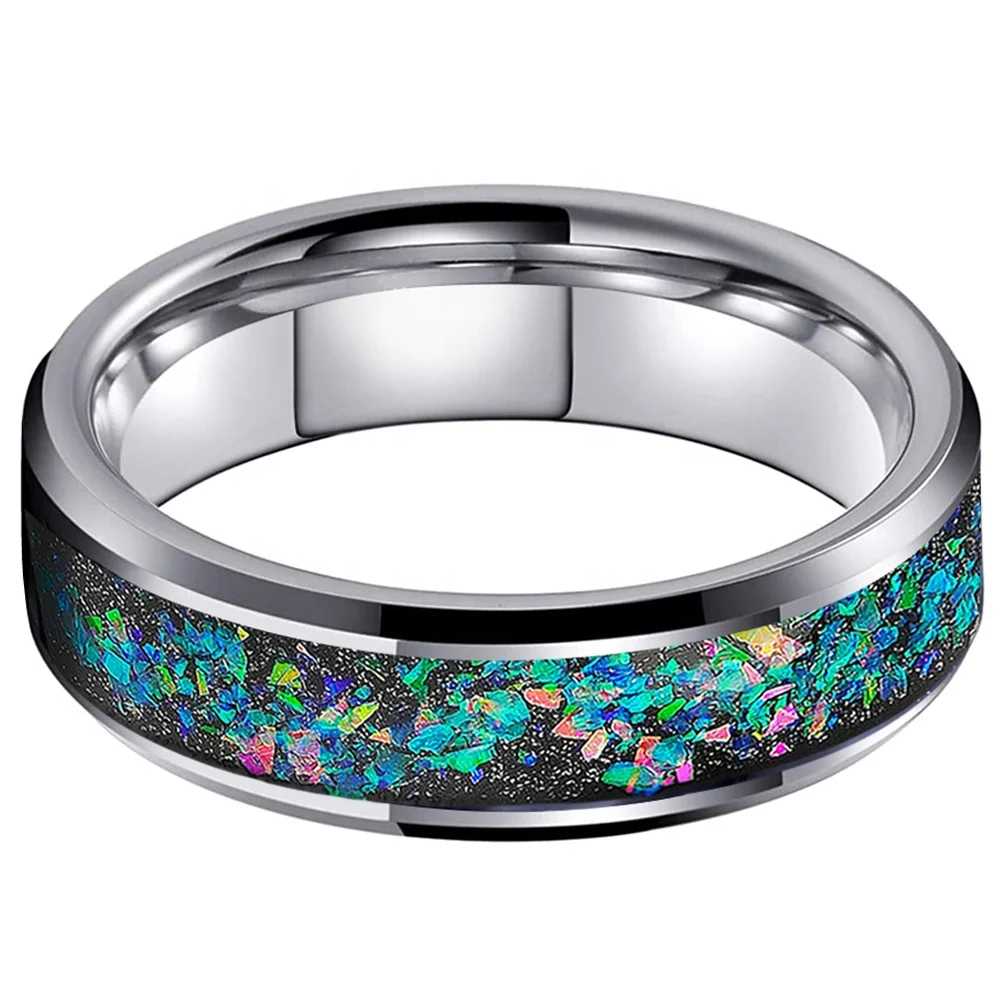 Coolstyle Jewelry Dropshipping 6mm Tungsten Carbide Ring for Women Men Fashion Jewelry Engagement Wedding Band Galaxy Opal Inlay