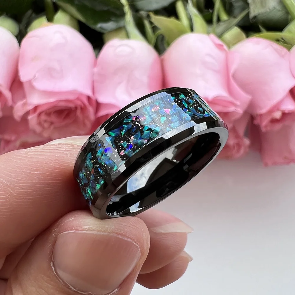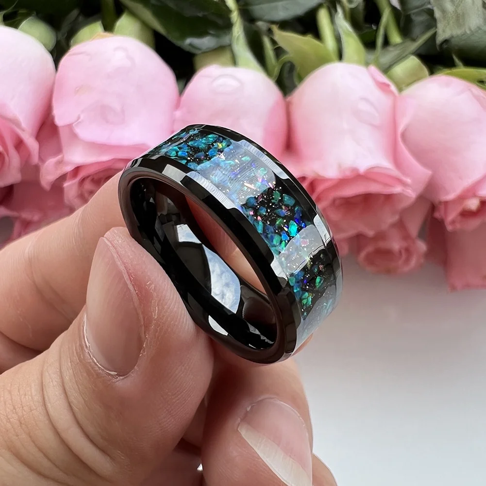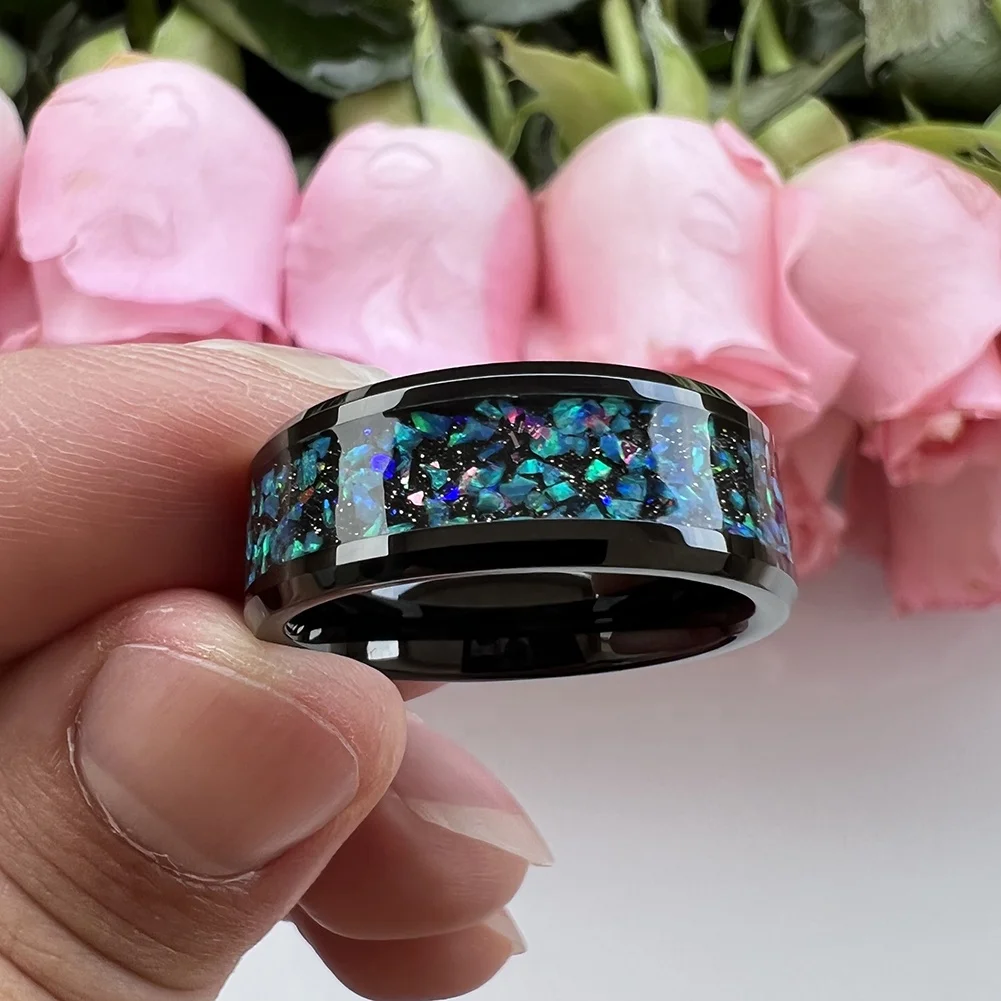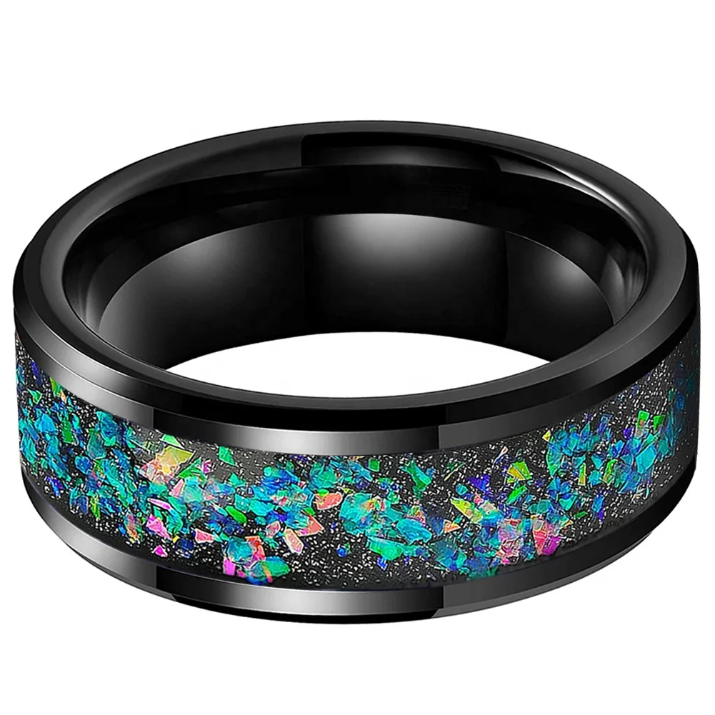Coolstyle Jewelry Wholesale 8mm Black Tungsten Ring for Men Women Fashion Jewelry Engagement Wedding Band Galaxy Opal Inlay
