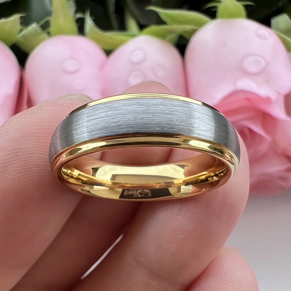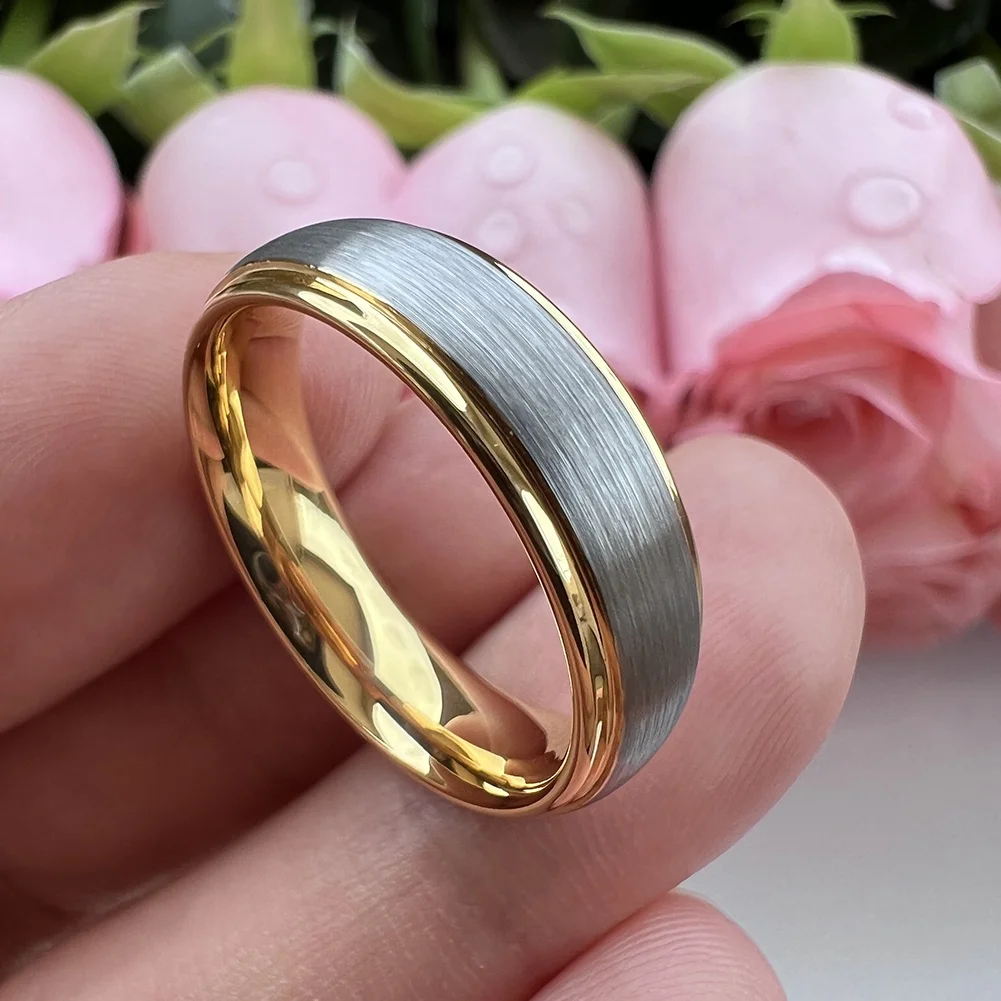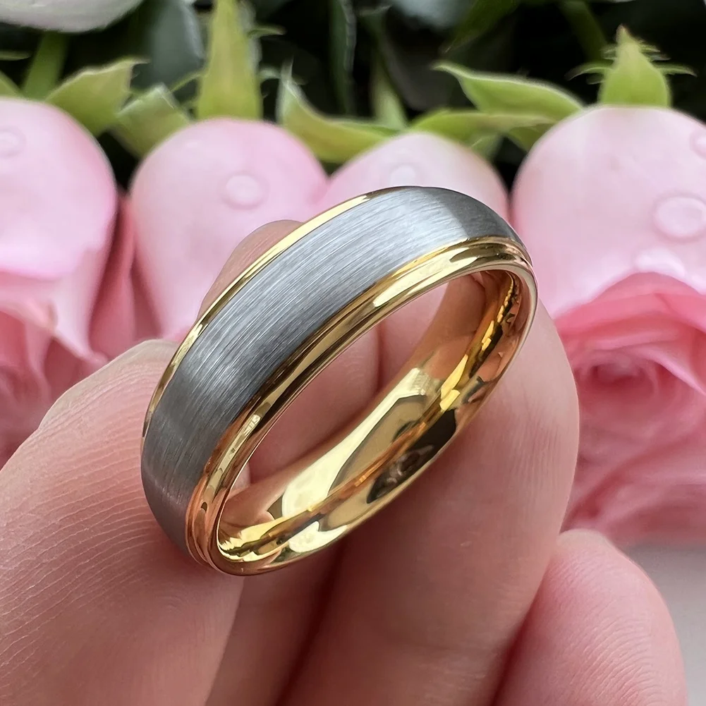 Coolstyle Jewelry 6mm Dropshipping Domed Stepped Edges Gold Tungsten Ring for Men Women Engagement Wedding Band Comfort Fit