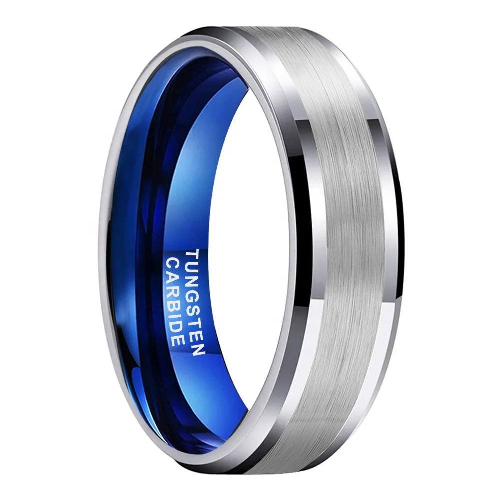 Coolstyle Jewelry 6mm Wholesale Beveled Edges Blue Plated Tungsten Ring for Men Women Fashion Engagement Wedding Band