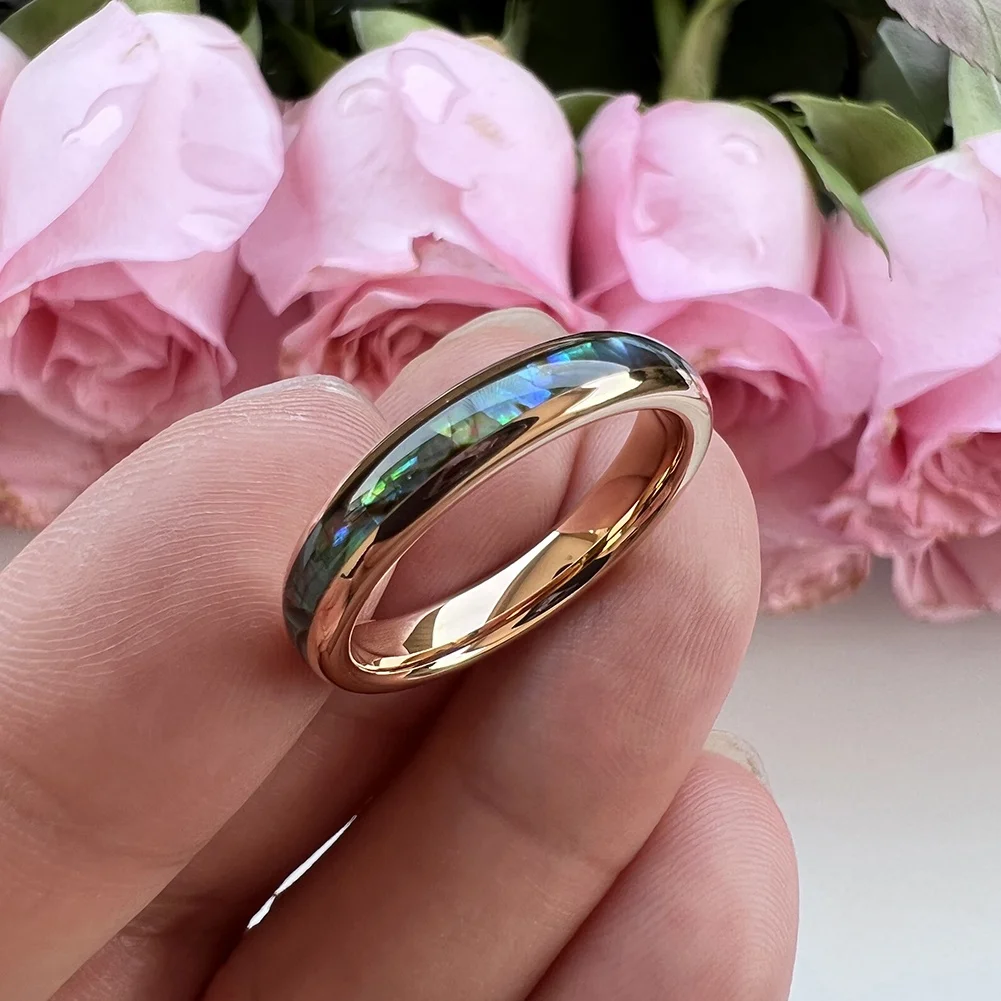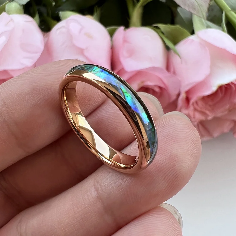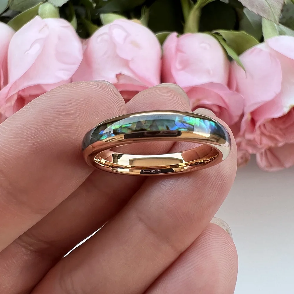 Coolstyle Jewelry 4mm Rose Gold Tungsten Ring for Men Women Wedding Band Abalone Shell Inlay Polished Shiny Domed Comfort Fit