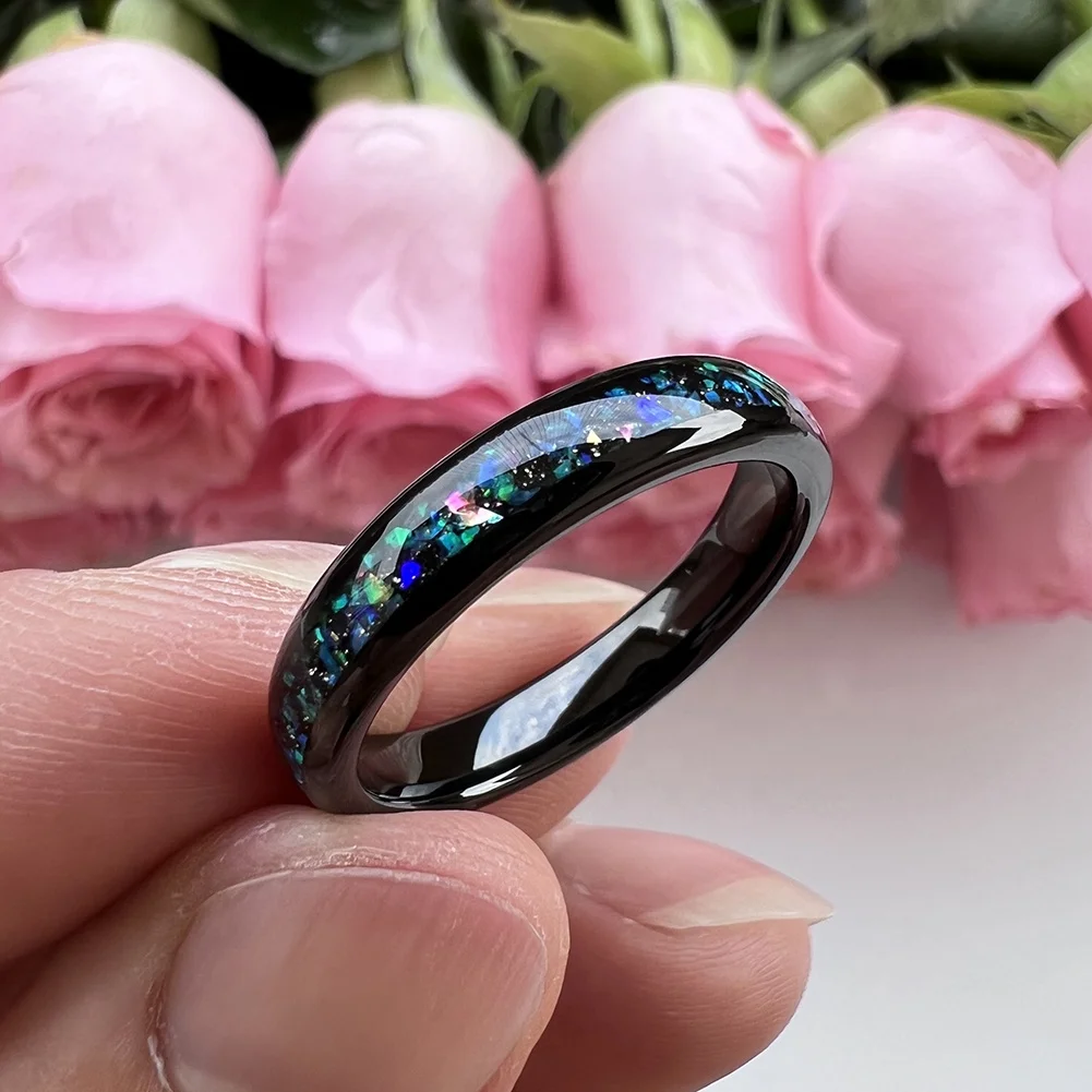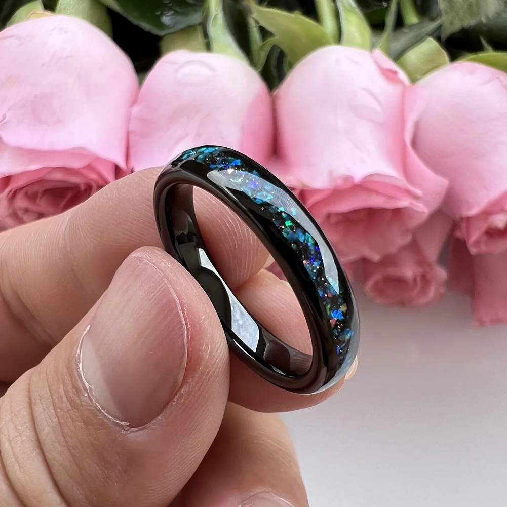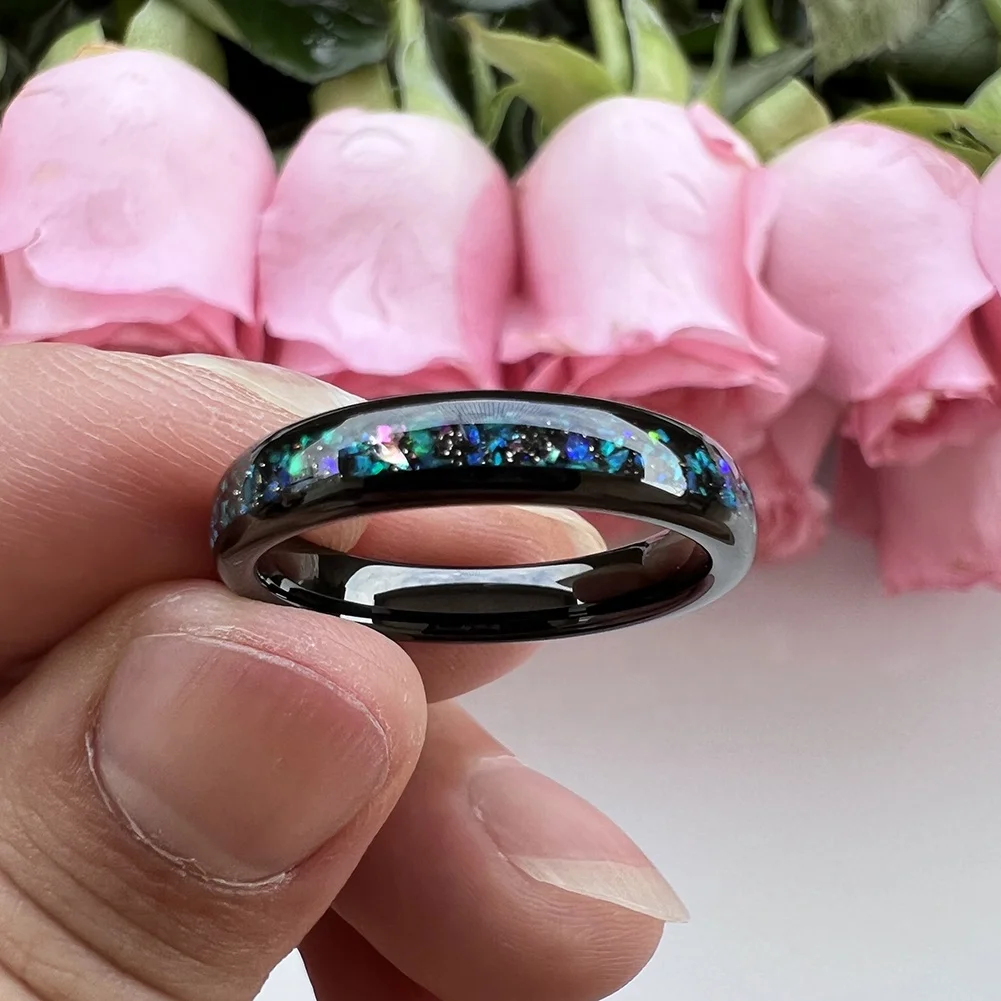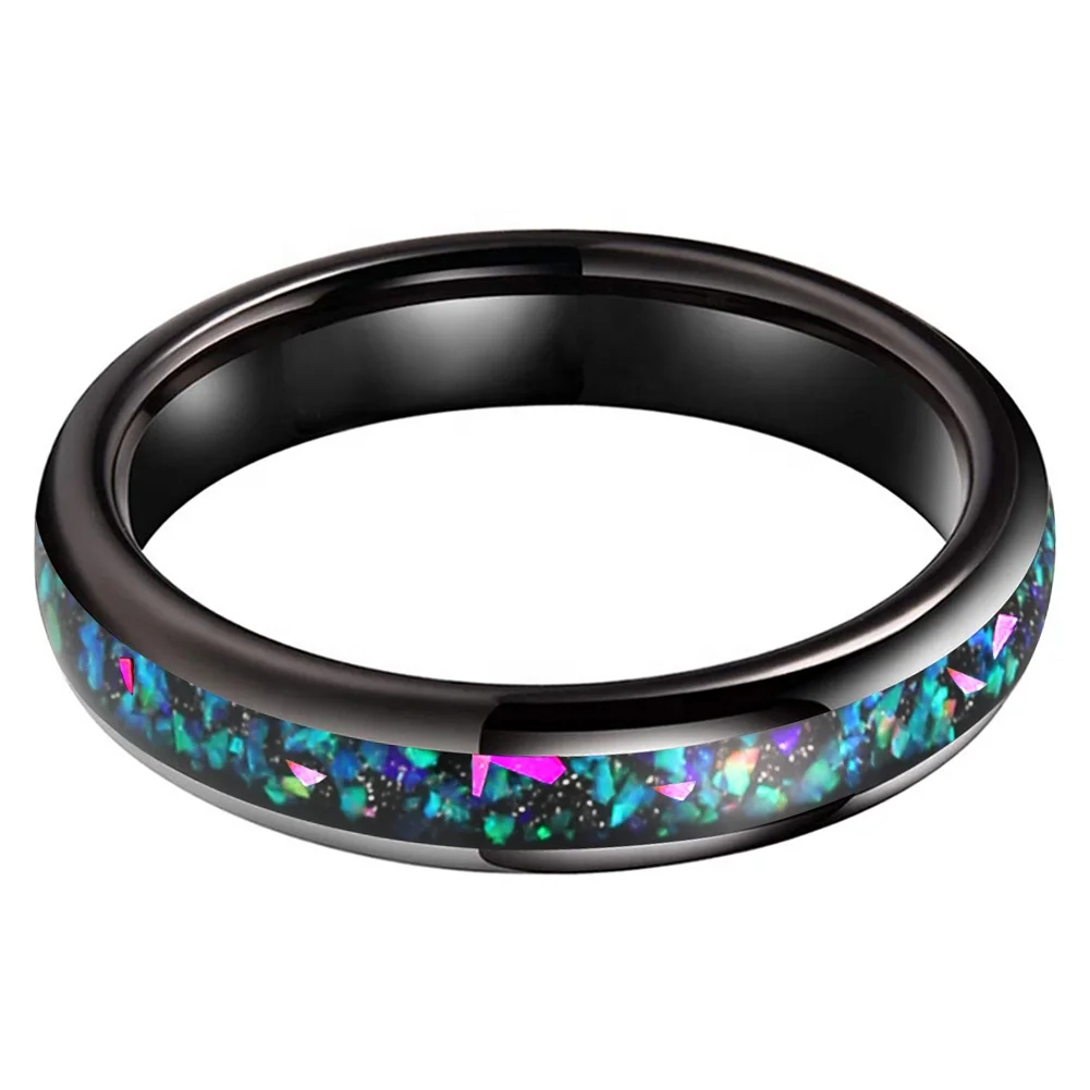 Coolstyle Jewelry Wholesale Dropshipping 4mm Black Tungsten Ring for Women Men Fashion Galaxy Opal Inlay Engagement Wedding Band