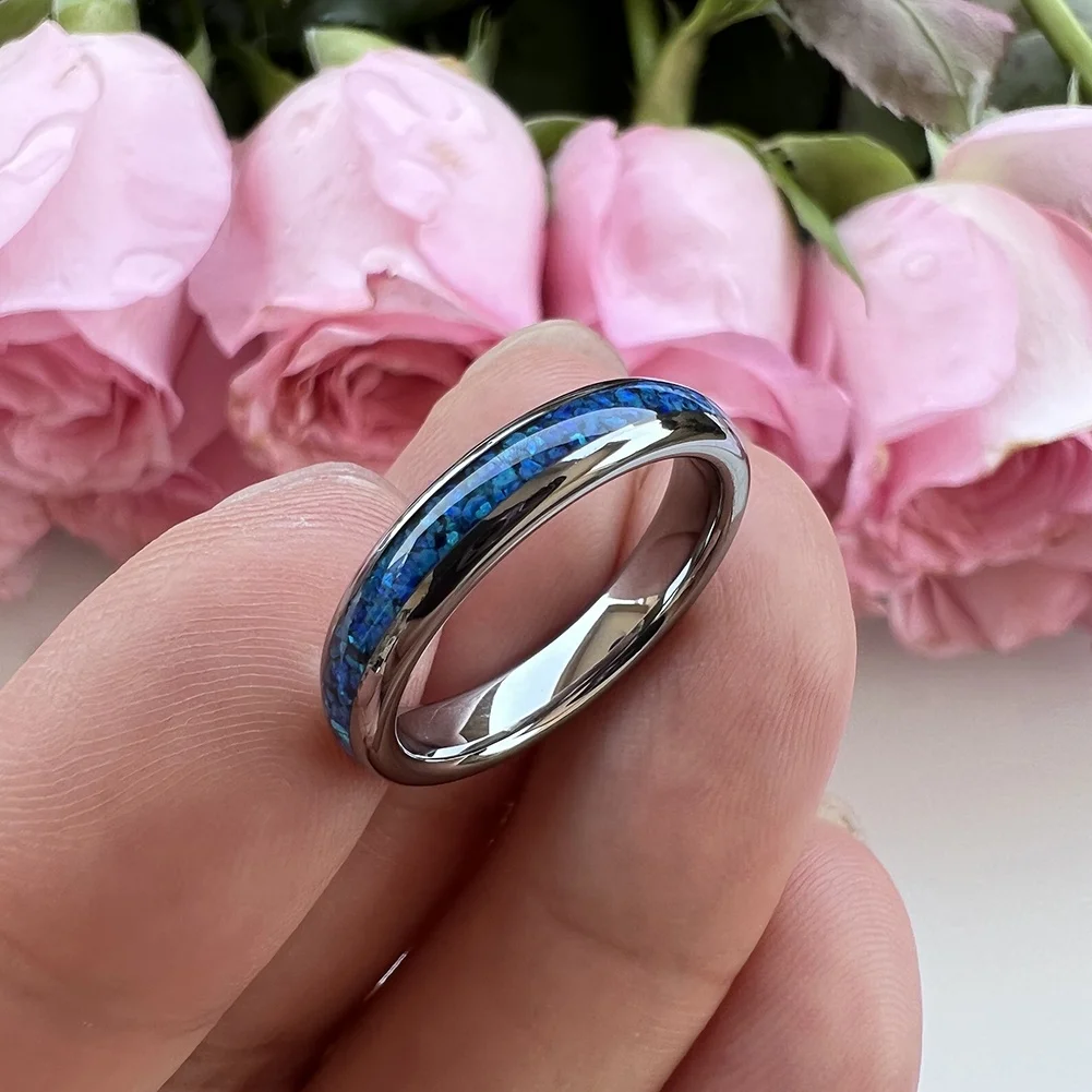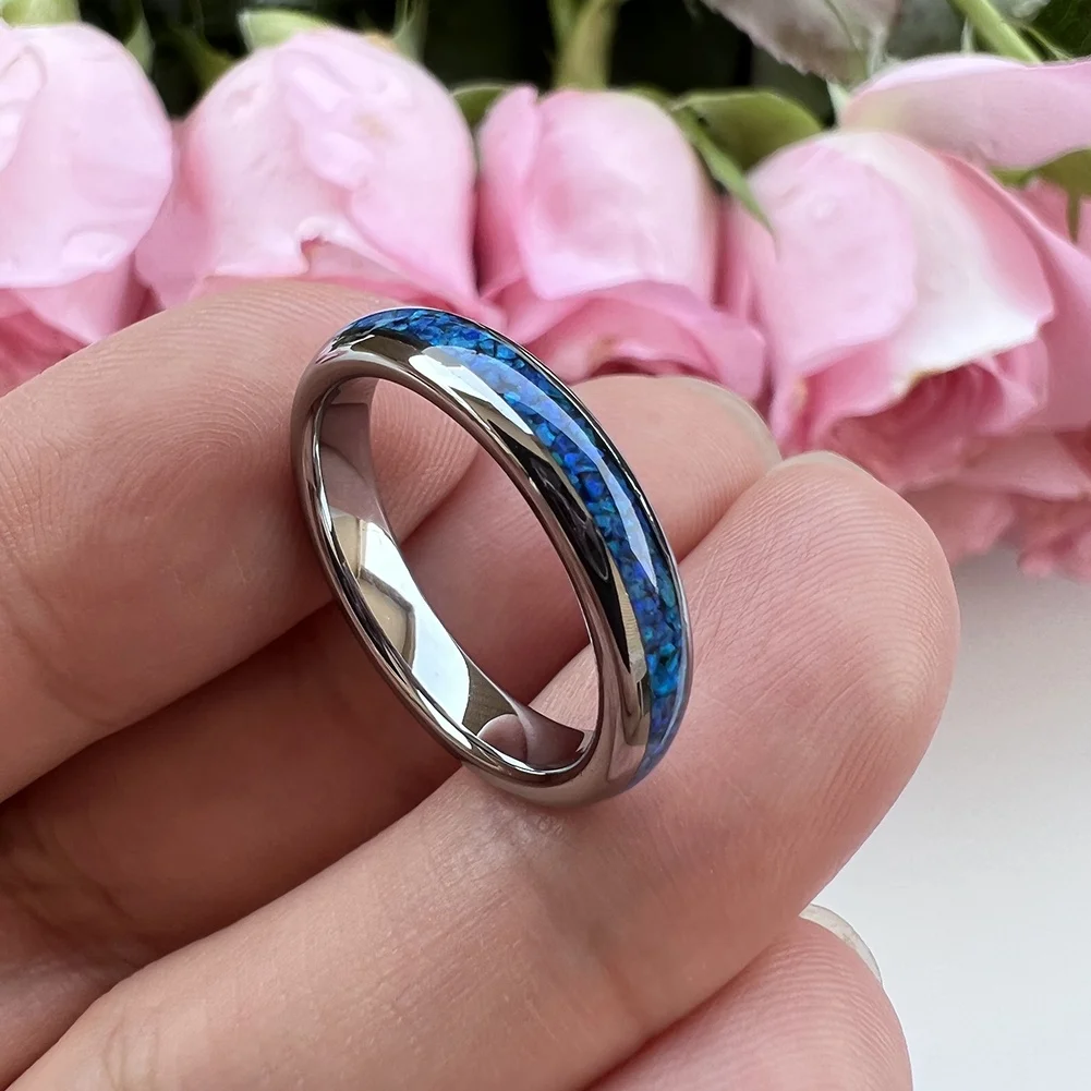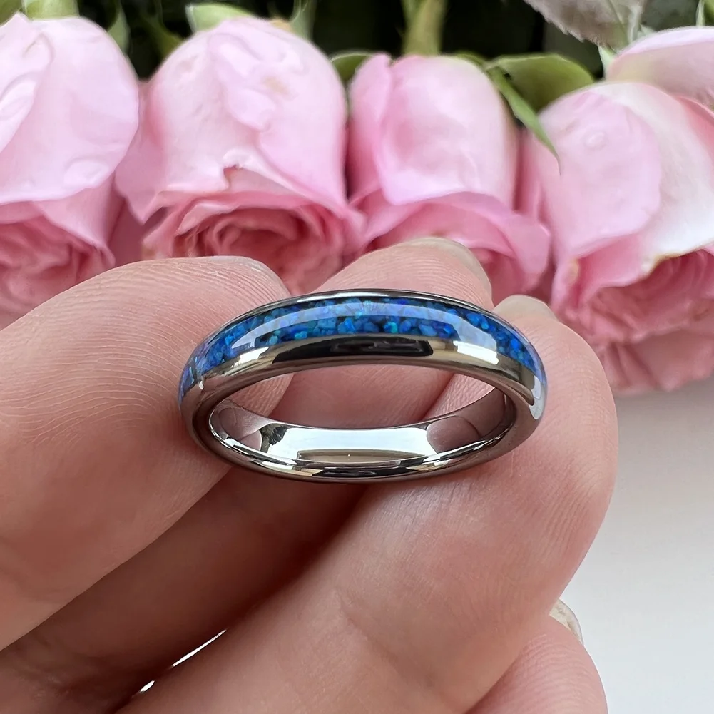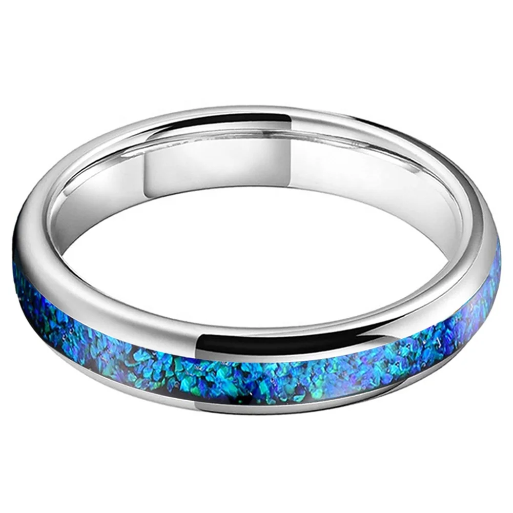 Coolstyle Jewelry Wholesale 4mm Tungsten Rings for Women Men Genuine Blue Opal Inlay Fashion Jewelry Engagement Wedding Band