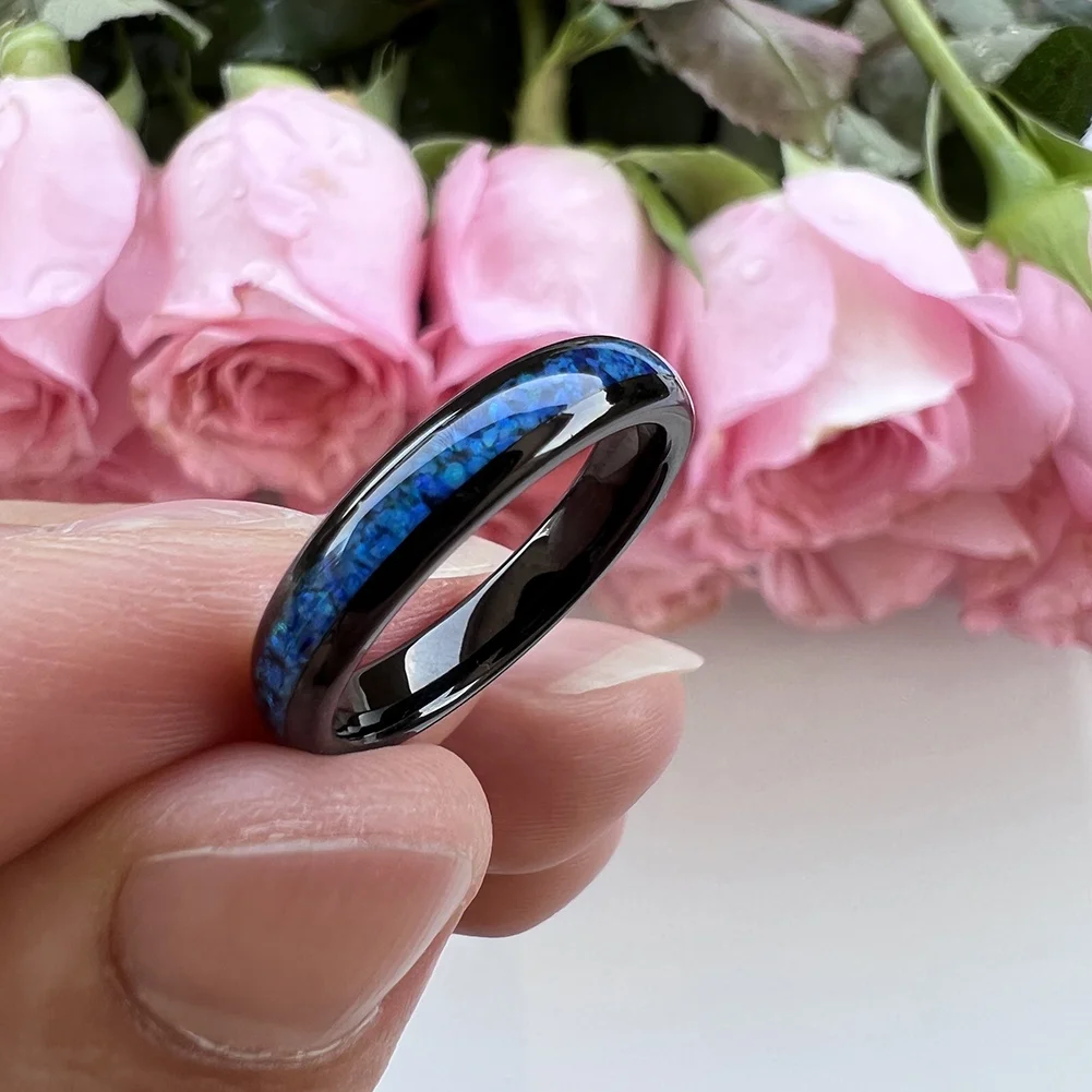 Coolstyle Jewelry 4mm Black Tungsten Carbide Ring for Women Men Genuine Blue Opal Inlay Fashion Jewelry Engagement Wedding Band
