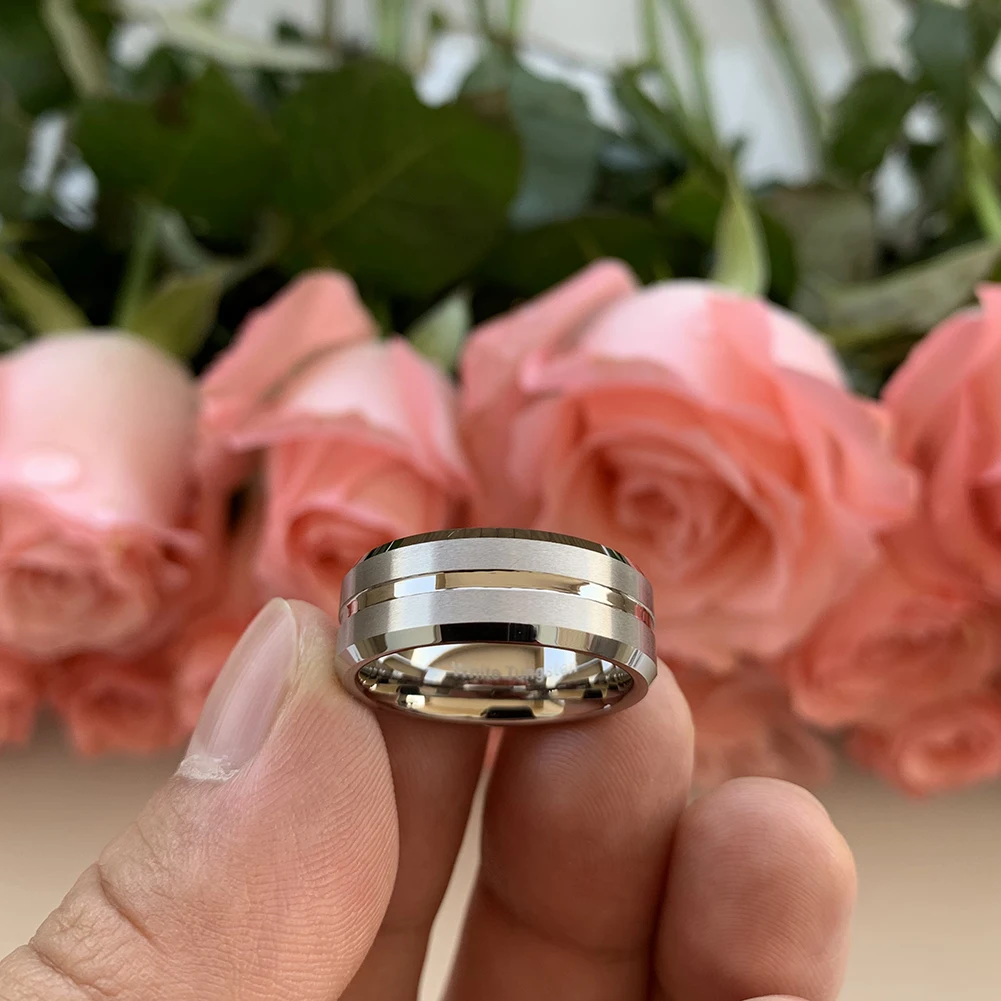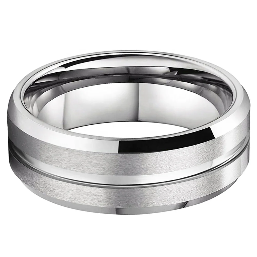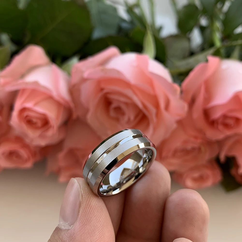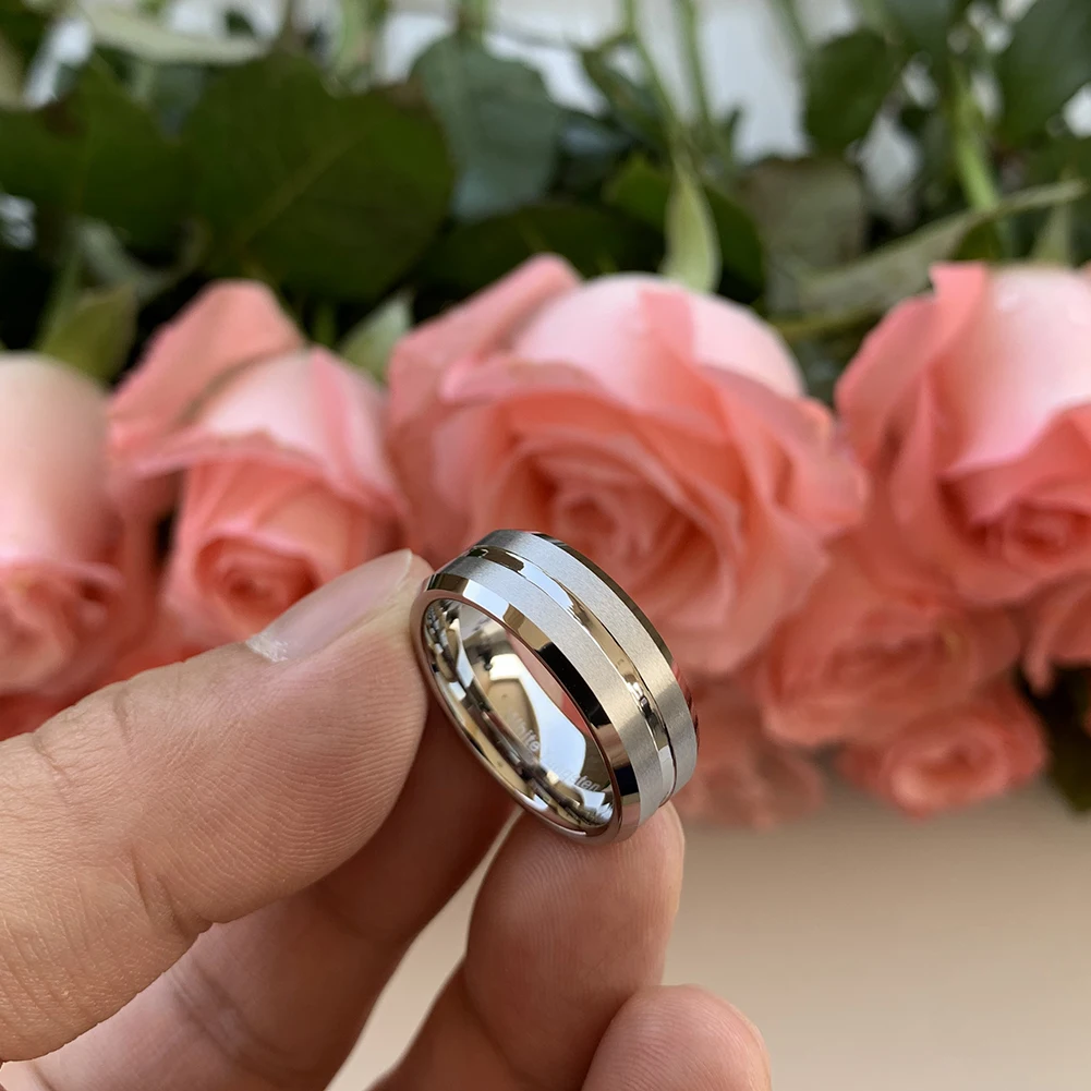 Coolstyle Jewelry Wholesale 8mm White Tungsten Ring Men Women Fashion Engagement Wedding Band Beveled Matte Finish Comfort Fit