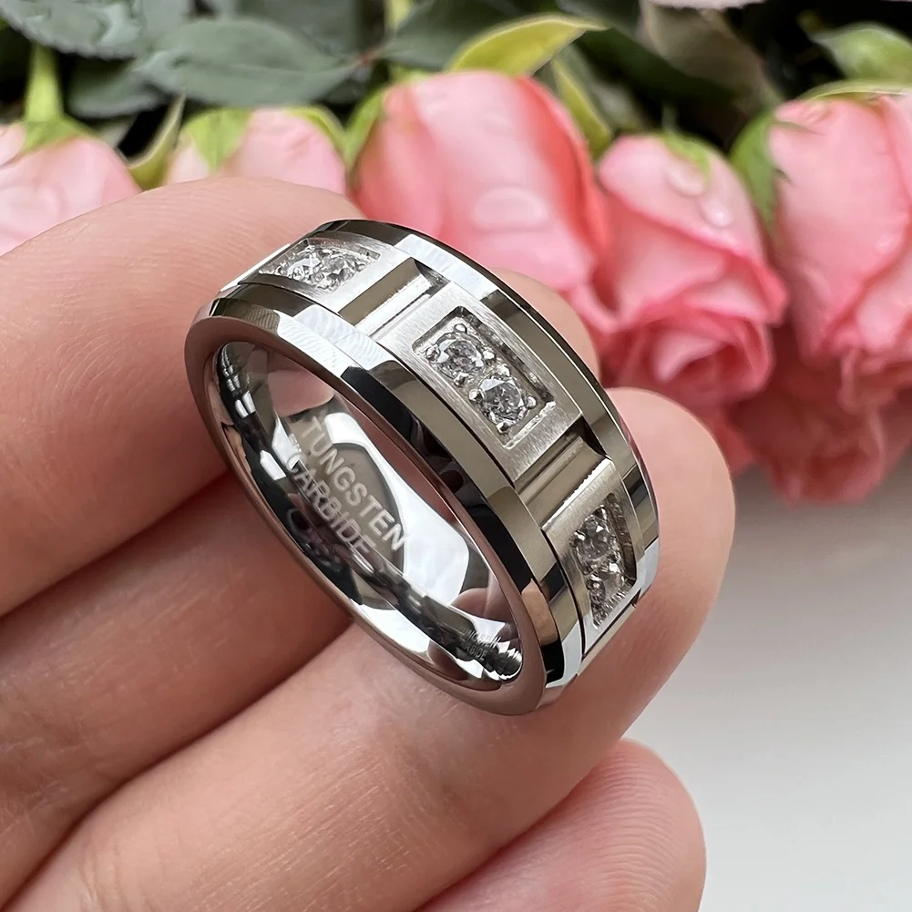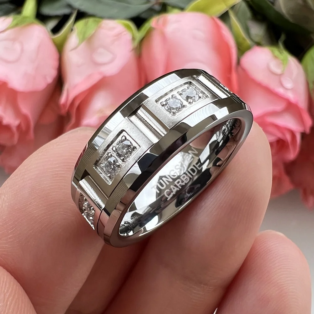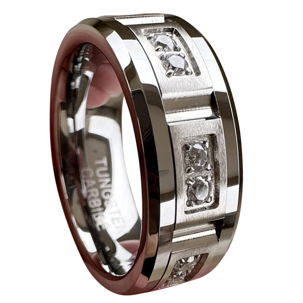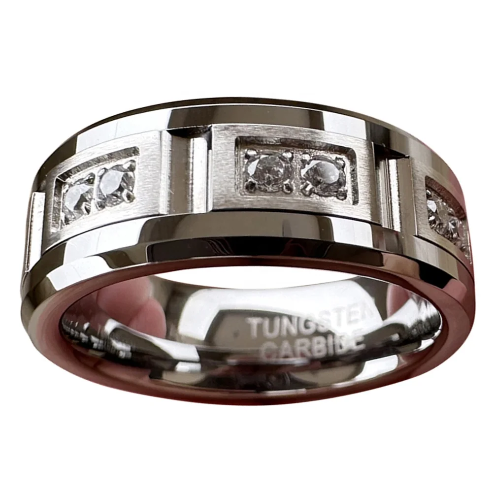 Coolstyle Jewelry 8mm Wholesale Men Women Engagement Eternity Wedding Band CZ Stone Inlay All Around Tungsten Carbide Ring