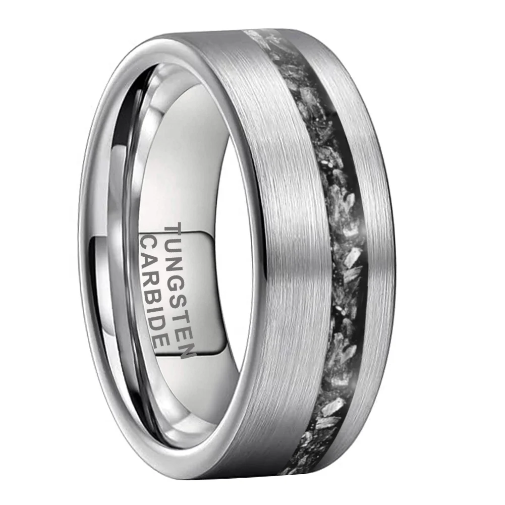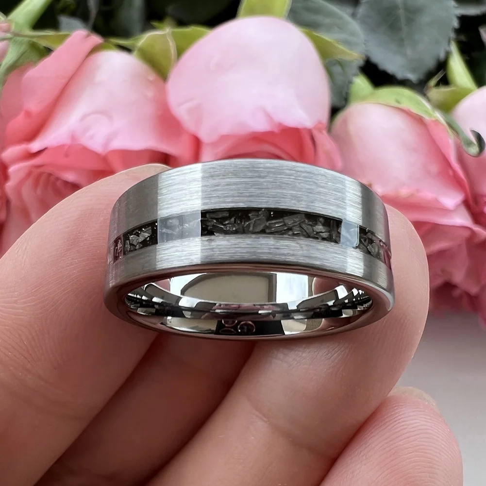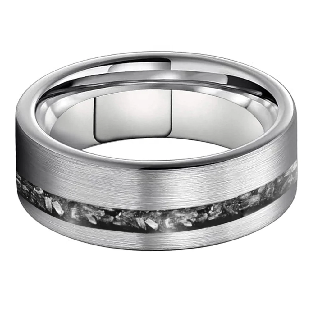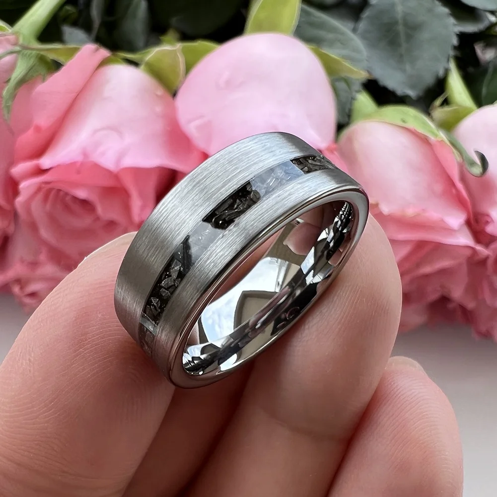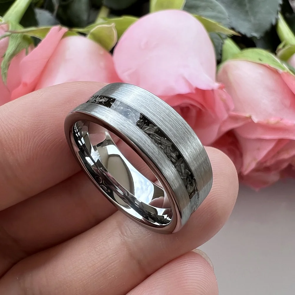 Coolstyle Jewelry 8mm Wholesale Tungsten Ring for Men Women Real Meteorite Chip Inlay Fashion Engagement Wedding Band