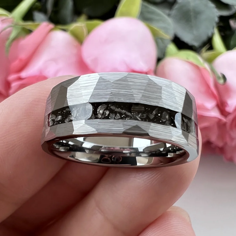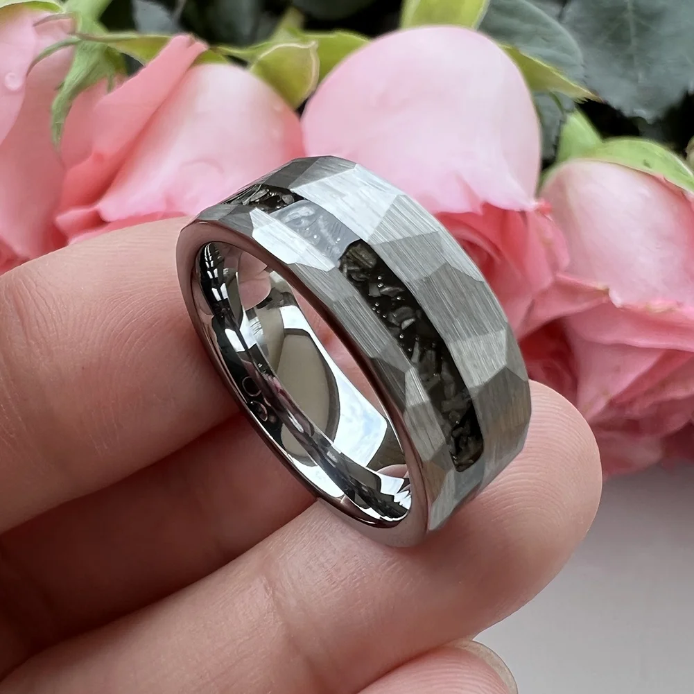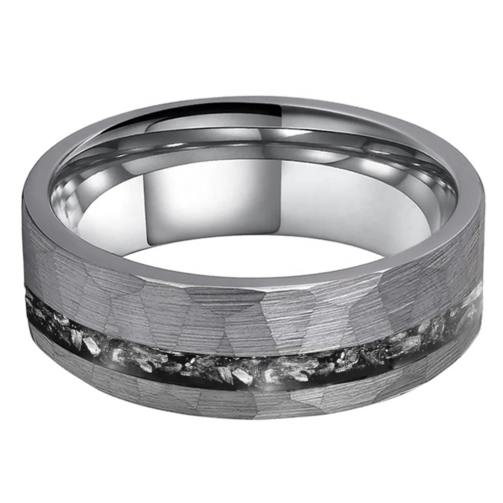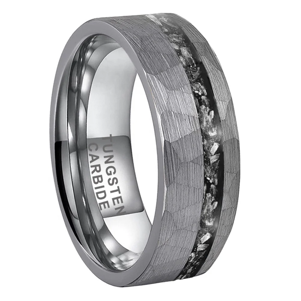 Coolstyle Jewelry 8mm Hammered Tungsten Carbide Rings for Men Women Genuine Meteorite Inlay Fashion Engagement Wedding Band