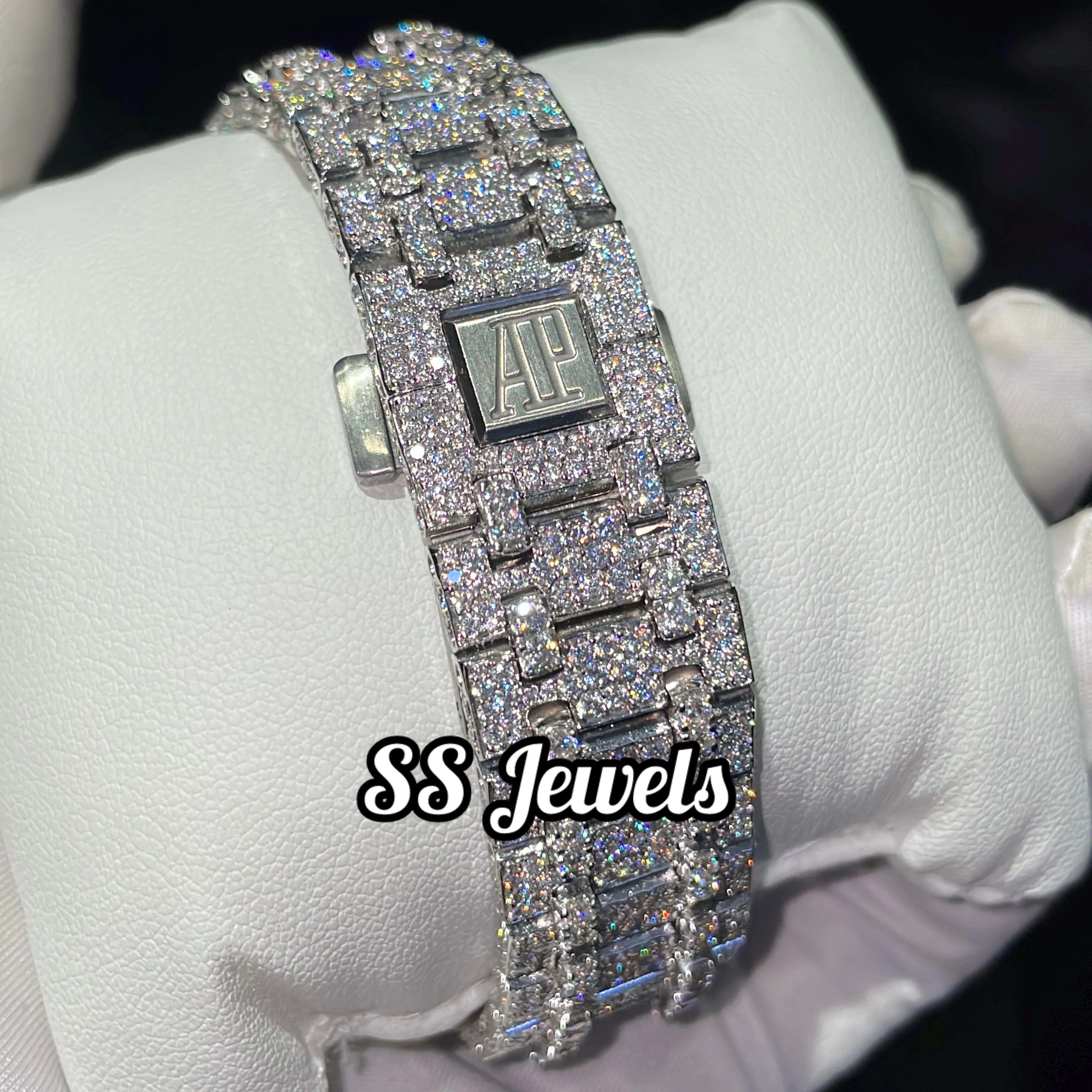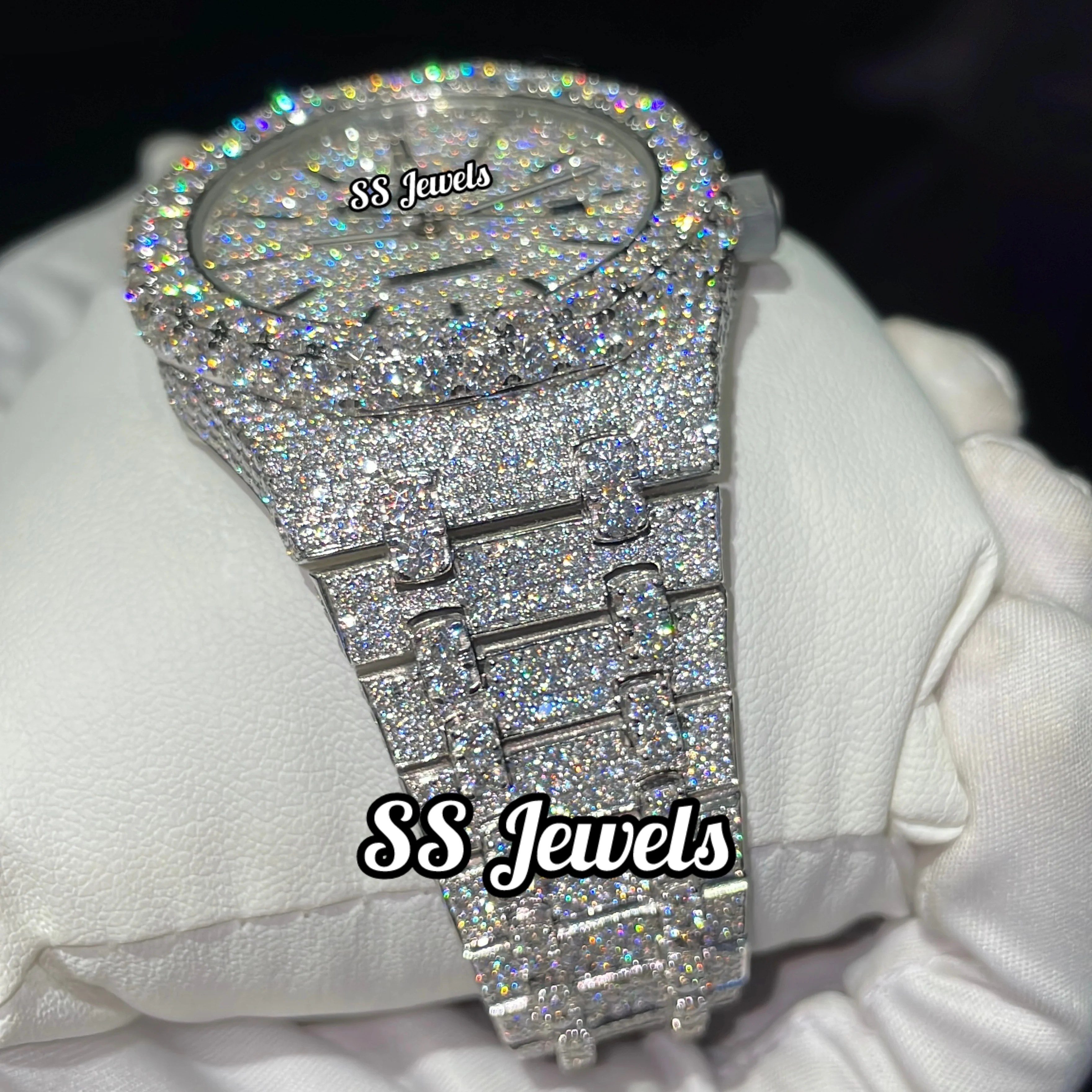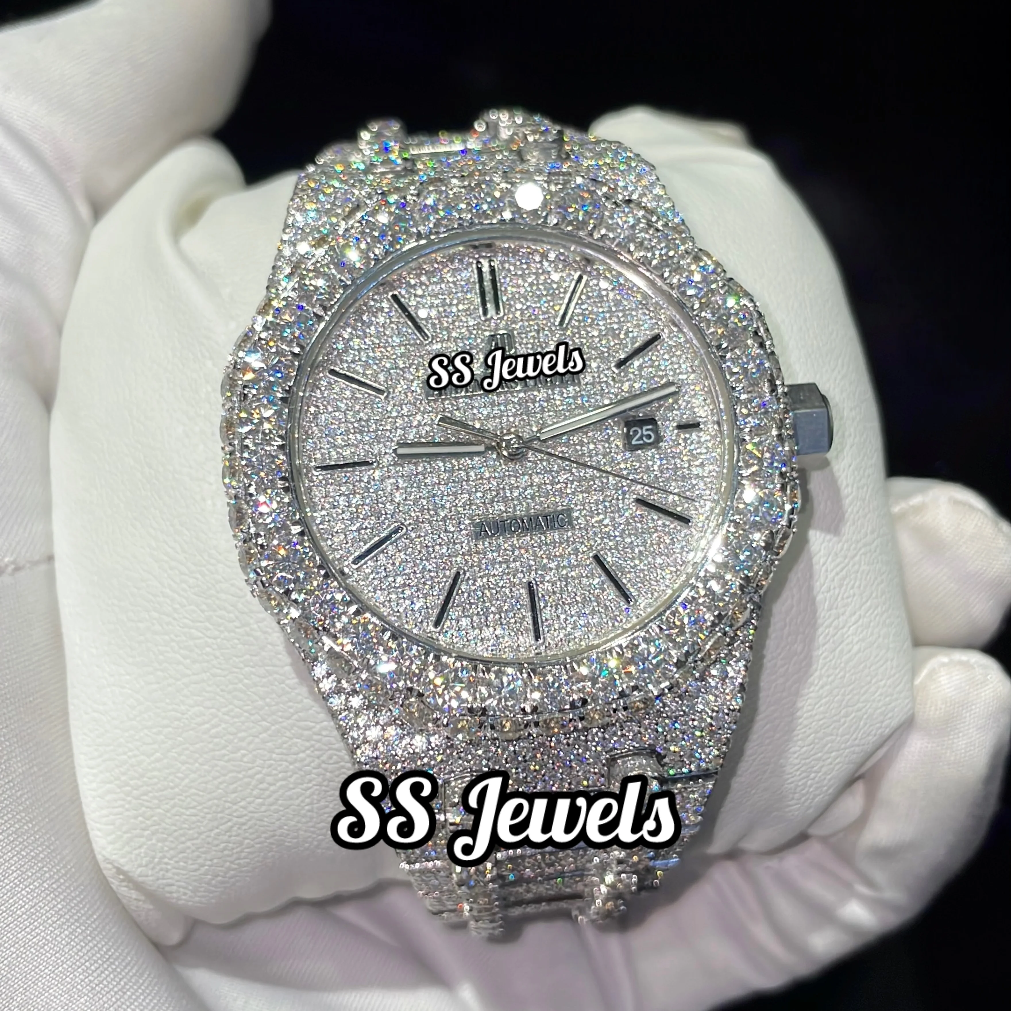 Moissanite Diamond Iced VVS Glass Analog Watch Stainless Steel Mechanical Movement 41mm Luxury Gift for Men Women Customized
